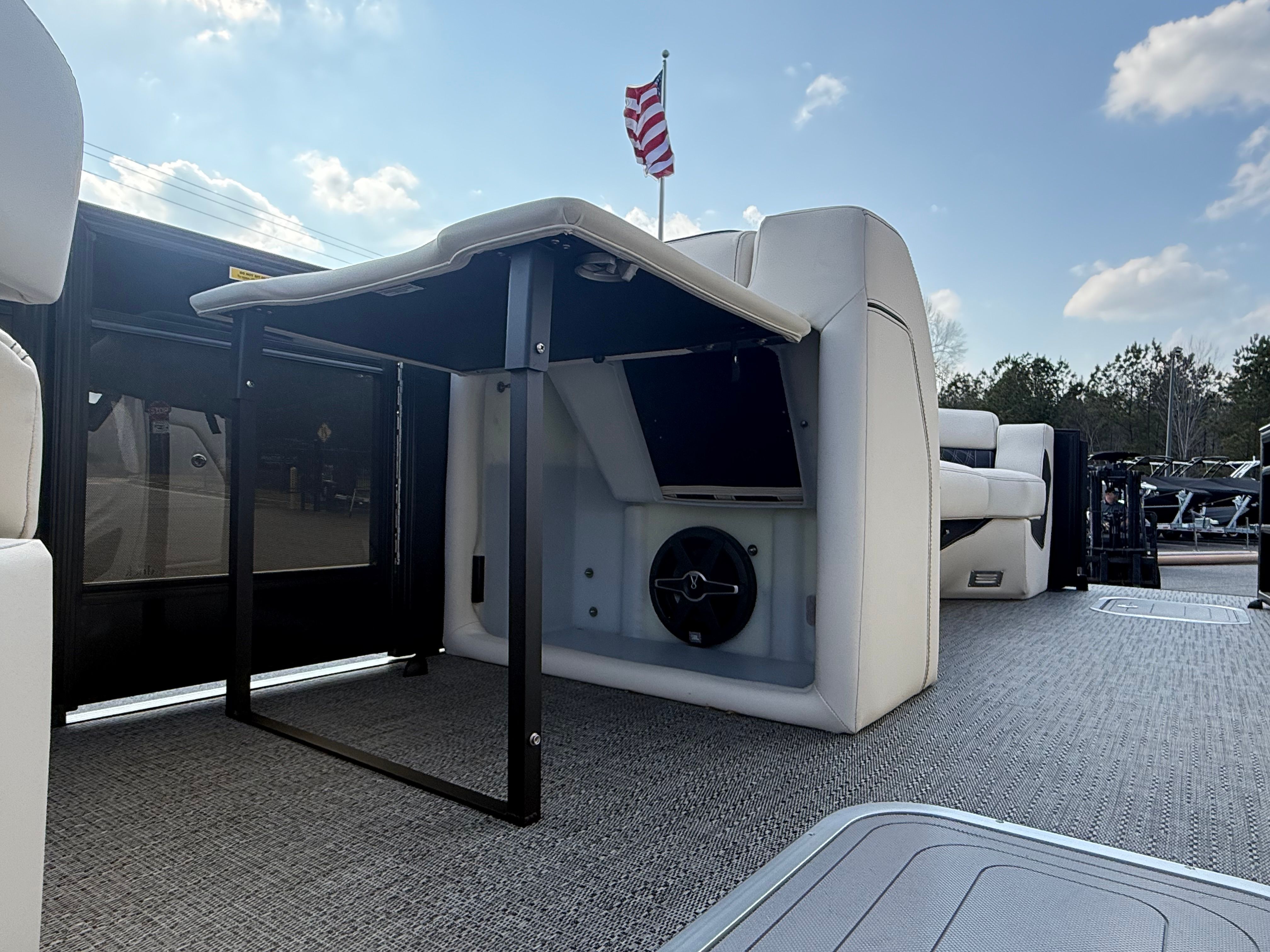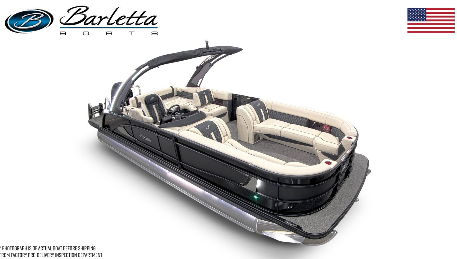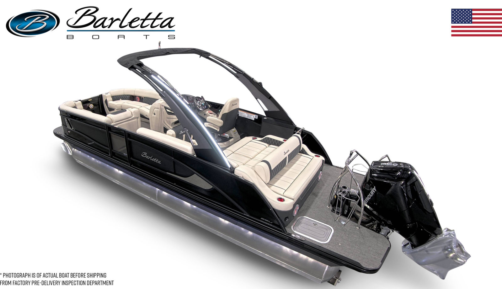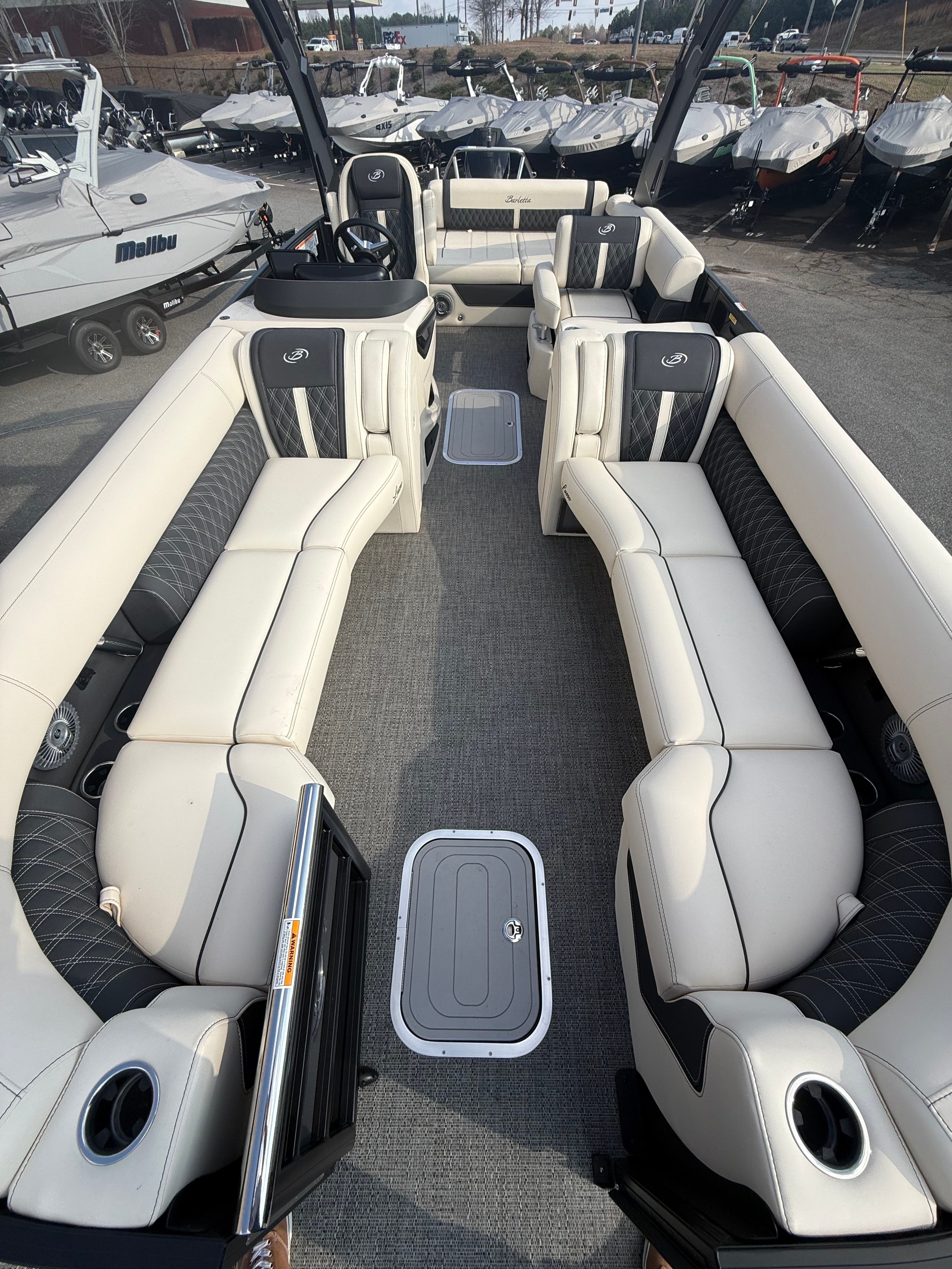 In summary, the 2026 Barletta Lusso L25UA is a standout pontoon boat for sale that combines luxury, performance, and versatility in one stunning package. With its powerful Mercury 350L V10 Verado engine, elegant design elements like the Black Diamond sweep color and Matte Black accents, and premium features such as white underdeck and underwater lighting, Amore Gray flooring, and plush Linen with Onyx furniture, this Barletta boat for sale is truly in a class of its own. Whether you are seeking adventure, relaxation, or unforgettable moments with loved ones, the Lusso L25UA delivers an unparalleled boating experience. Don’t miss your chance to own this exceptional pontoon – contact your local dealer today to learn more and schedule a personal tour.