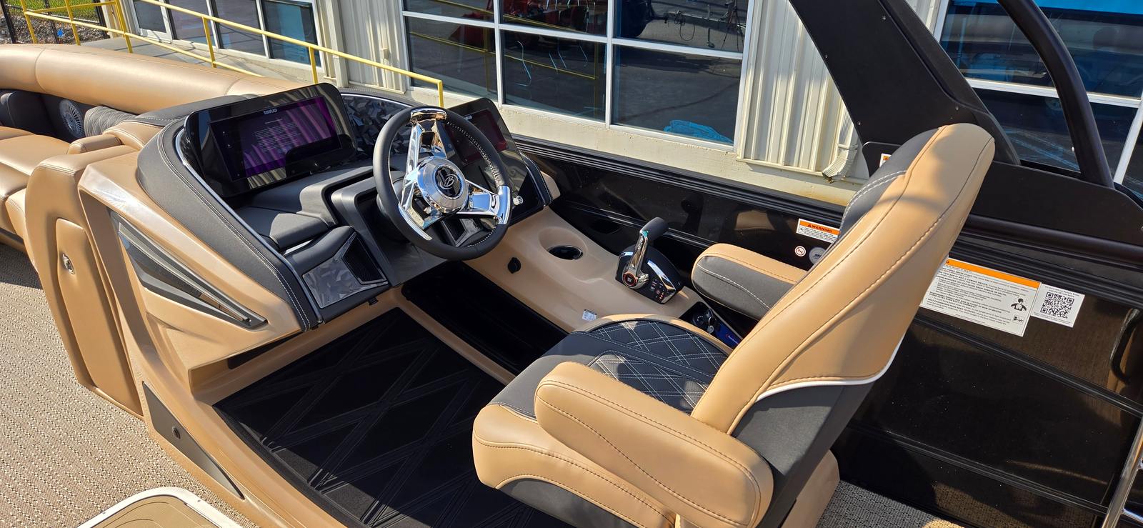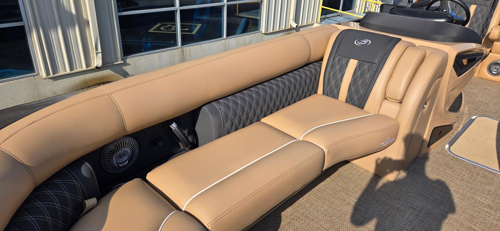 The 2026 Barletta Lusso L25UC is a showcase of premium features and sophisticated design. The exterior boasts a striking Black Diamond sweep color and accent color, complemented by the Blackout Package Lusso railskin, giving this pontoon a bold, modern look that turns heads at every marina. Step aboard and you’ll be greeted by Carmella Tan with Onyx furniture, offering plush comfort and a refined aesthetic. The Amore Tan flooring adds a touch of warmth and elegance, making every moment on deck feel like a luxury retreat.For those who love to entertain or relax in style, the Sport Bimini (installed in place of the standard bimini) provides ample shade and protection from the sun, allowing you to enjoy long days on the water in comfort. The white underdeck and underwater exterior lighting create a captivating ambiance for evening cruises, making every sunset and starlit night even more magical.