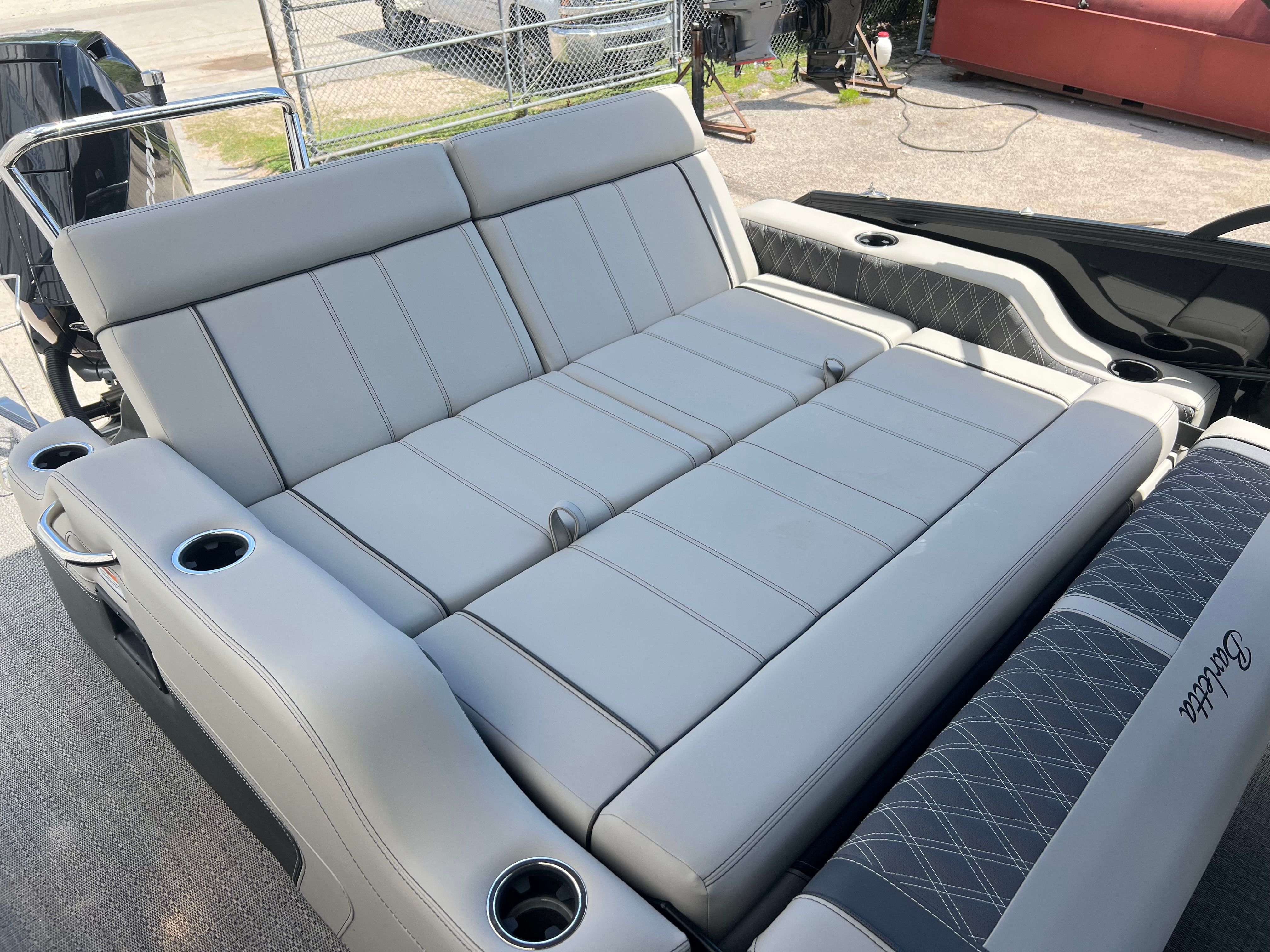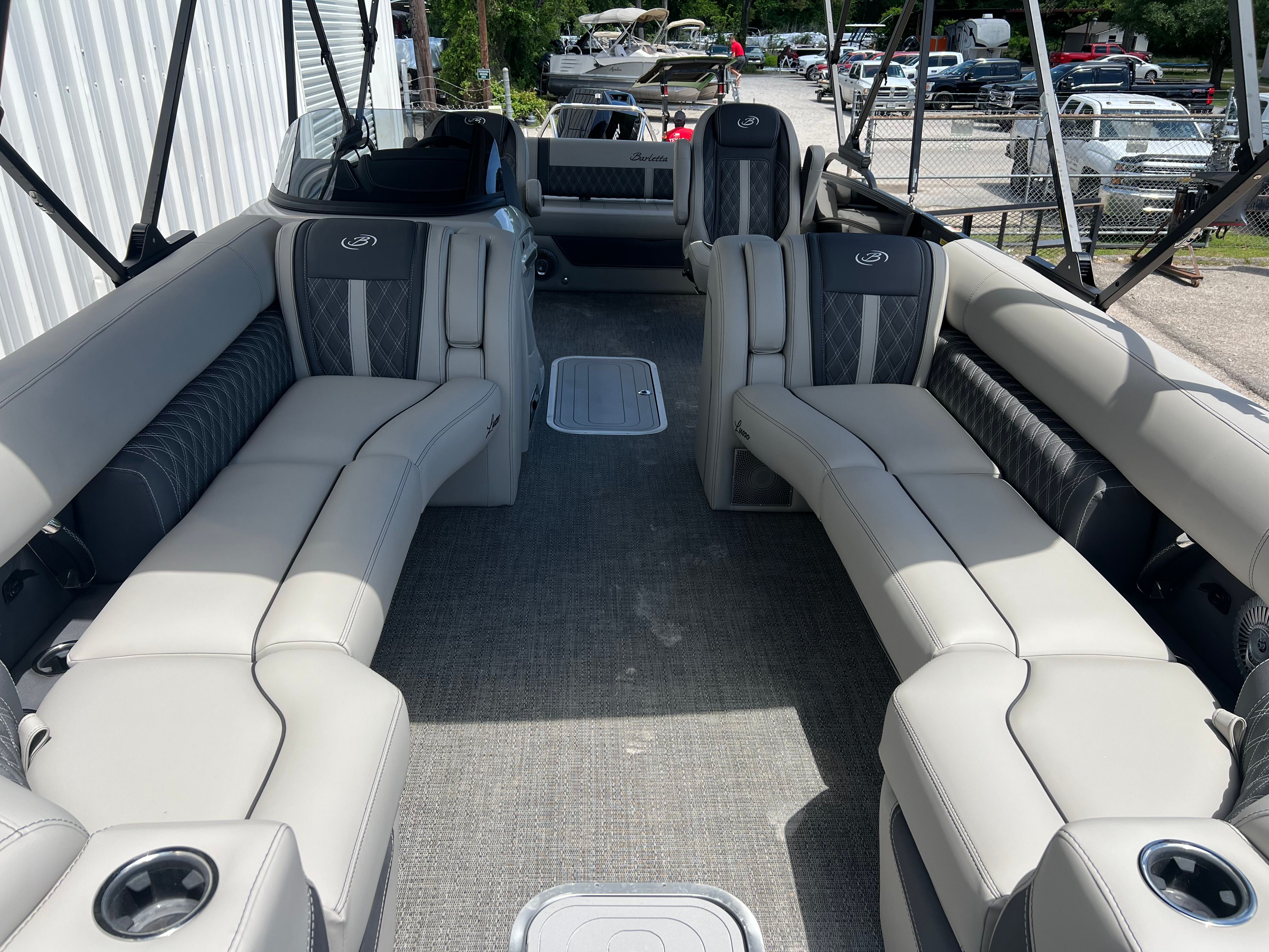 Owning the Barletta Lusso L25UC means embracing a lifestyle of fun, relaxation, and connection. The spacious layout provides plenty of room for family and friends to stretch out, socialize, and enjoy the water together. The plush seating and thoughtful design elements create an inviting space for lounging, dining, or celebrating special occasions. The double bimini system ensures that everyone can find a comfortable spot in the shade, while the ample deck space makes it easy to move around and enjoy the view.The Lusso L25UC is perfect for hosting gatherings, whether you are planning a sunset cruise, a weekend picnic on the water, or a lively party with friends. The table and Yeti-ready cupholders make it easy to serve refreshments, while the stylish interior and exterior finishes create an atmosphere of luxury and sophistication. With its powerful engine and smooth ride, you can explore new destinations, try out water sports, or simply relax and soak up the sun.
