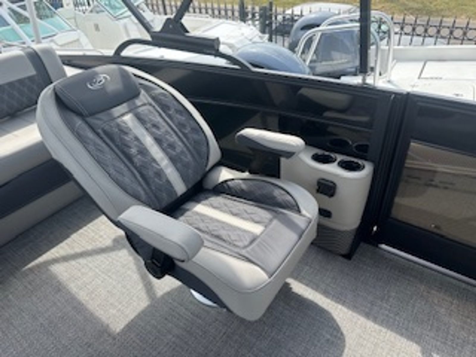 This Barletta boat for sale is loaded with premium features designed to maximize comfort, convenience, and enjoyment. The Black Diamond Sweep Color and Blackout Package Lusso give the boat a sophisticated, modern look that’s sure to impress. The furniture is finished in Marquesan Gray with Charcoal Accent, providing plush seating and a stylish atmosphere for you and your guests. The Amore Gray flooring adds a touch of elegance while offering durability and easy maintenance.The Coastal Edition Lusso ensures that this pontoon is equipped to handle a variety of water conditions, making it versatile for both inland lakes and coastal waterways. The CG Kit and Systems Check features provide peace of mind, ensuring that your boat is ready for safe and reliable operation. The detail service guard helps keep your Lusso L25UC in pristine condition, so you can focus on enjoying your time on the water.