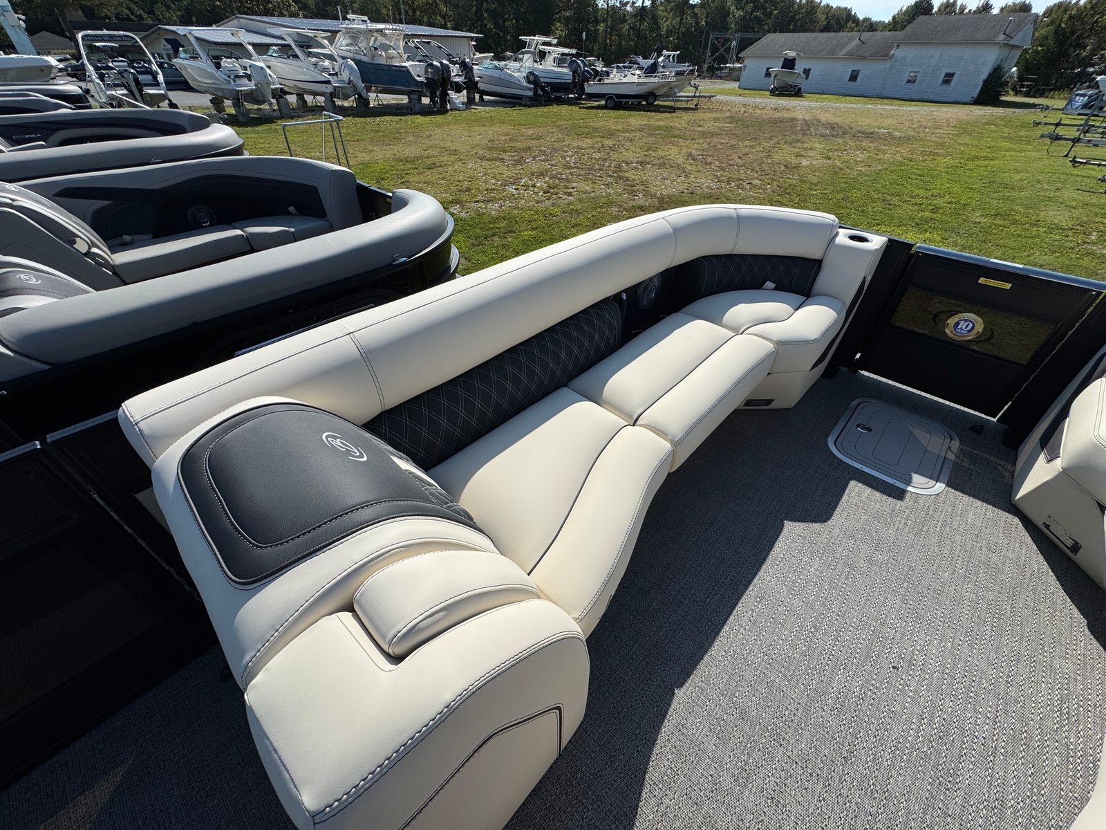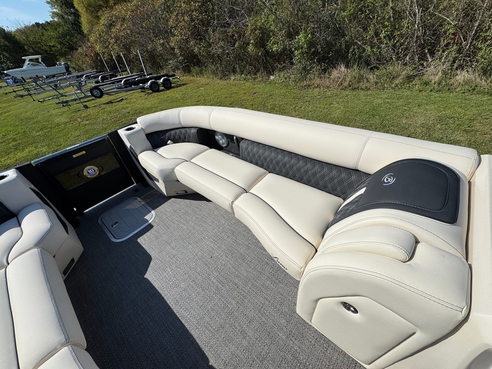 The Barletta Lusso L25UCA is designed with practicality in mind, making ownership both convenient and enjoyable. The ample storage options allow you to stow away gear, water toys, and personal items with ease, keeping the deck clutter-free and organized. The sturdy stainless steel safety stanchions with chains offer peace of mind, especially when children or pets are onboard. Docking is simplified thanks to the boat’s responsive handling and manageable length, making it easy to maneuver in tight spaces or busy marinas. The efficient Mercury V10 engine helps maximize fuel economy, so you can spend more time enjoying the water and less time refueling.