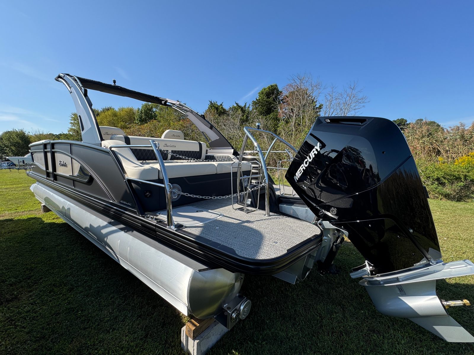 The 2026 Barletta Lusso L25UCA is a standout pontoon boat for sale, combining cutting-edge performance, luxurious features, and practical benefits in one stunning package. With its powerful Mercury (D) 400L V10 Verado engine, elegant Champagne and Matte Black accents, and thoughtful amenities like seat covers with standard playpen and stainless steel safety stanchions, this Barletta boat for sale is designed to deliver unforgettable moments on the water. If you’re ready to elevate your boating lifestyle and enjoy the ultimate in comfort, style, and fun, the Barletta Lusso L25UCA is the perfect choice. Contact your local dealer today to learn more about this exceptional pontoon boat and start planning your next adventure.