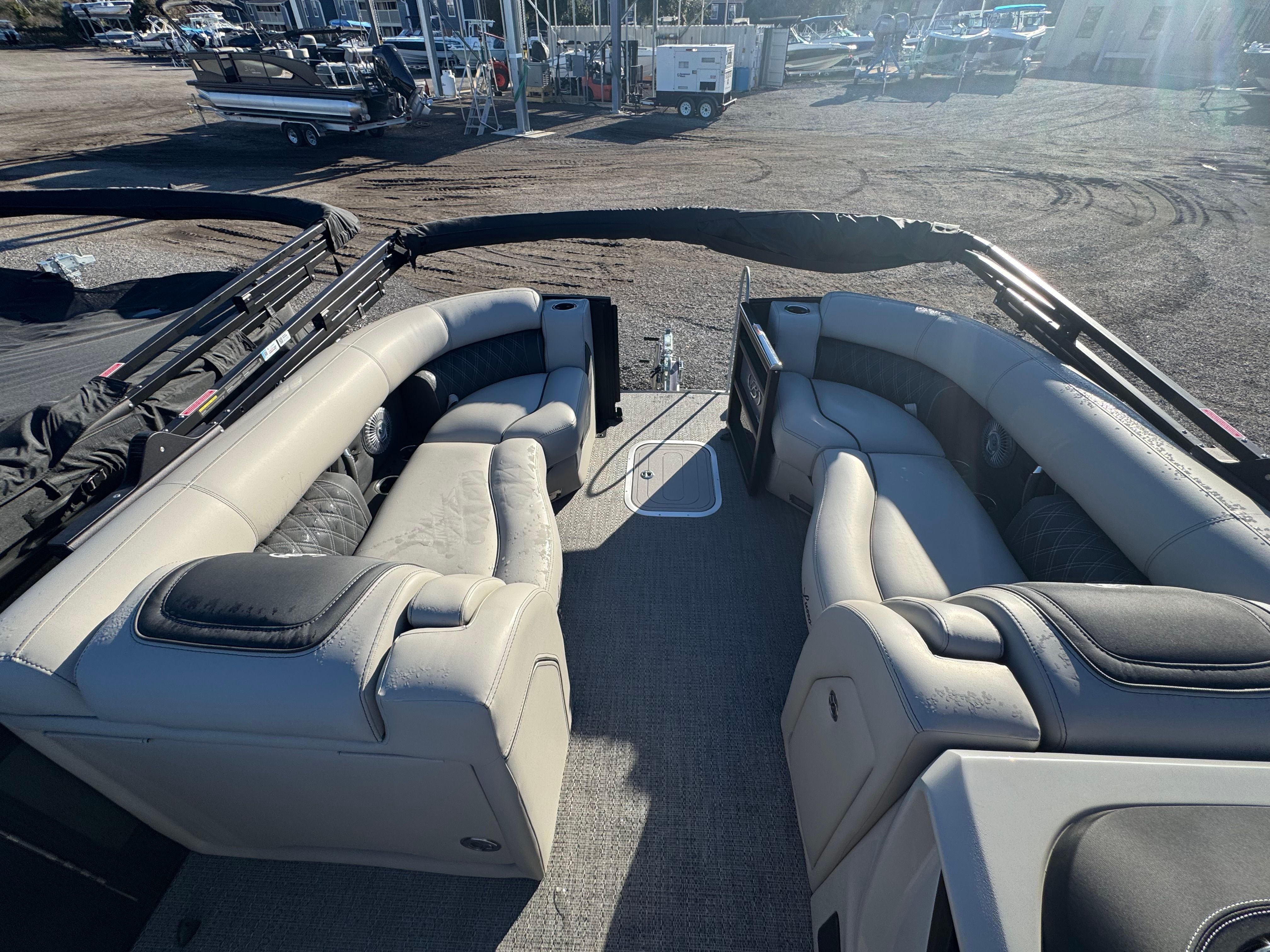 Owning the Barletta Lusso L25UE means embracing a lifestyle of fun, relaxation, and social connection. The spacious deck layout encourages gatherings with family and friends, whether you are hosting a sunset cruise, enjoying a picnic on the water, or celebrating special occasions. The plush Marquesan Gray with Onyx furniture offers exceptional comfort, inviting you to lounge in style as you take in the scenery. The double bimini setup ensures that everyone stays cool and protected from the sun, making long days on the water even more enjoyable. With its striking design and advanced features, this pontoon boat is sure to become the centerpiece of your recreational activities.