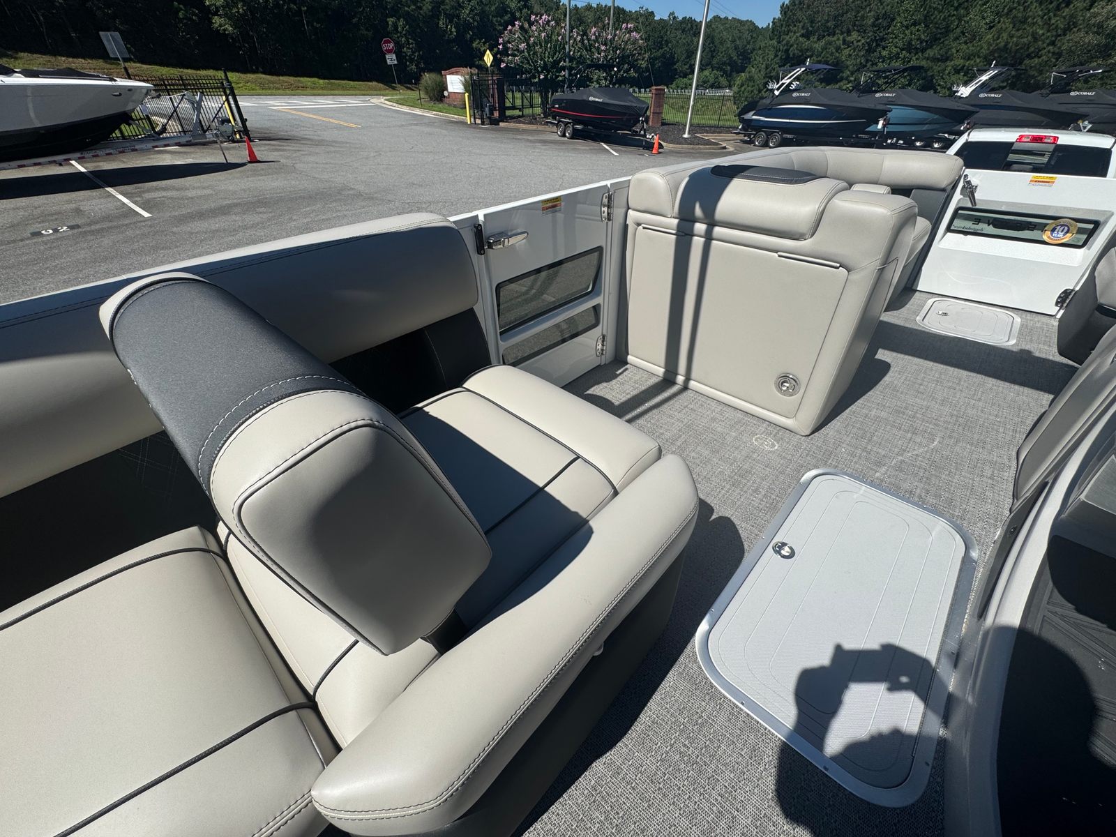 The Barletta Reserve Leggera R23MA is designed with real-world boating needs in mind. Its spacious layout provides plenty of room for storing gear, coolers, and water toys, making it easy to prepare for a day of adventure. The AccuThruster System simplifies docking, allowing even novice boaters to maneuver with confidence in tight spaces.Fuel efficiency is enhanced by the Mercury V10 Verado engine, so you can spend more time on the water and less time at the pump. The durable Amore Gray flooring is easy to clean, ensuring that spills and messes don’t detract from your enjoyment. With its robust construction and thoughtful design, this pontoon boat is built to handle the demands of active boating while maintaining its luxurious appeal.
