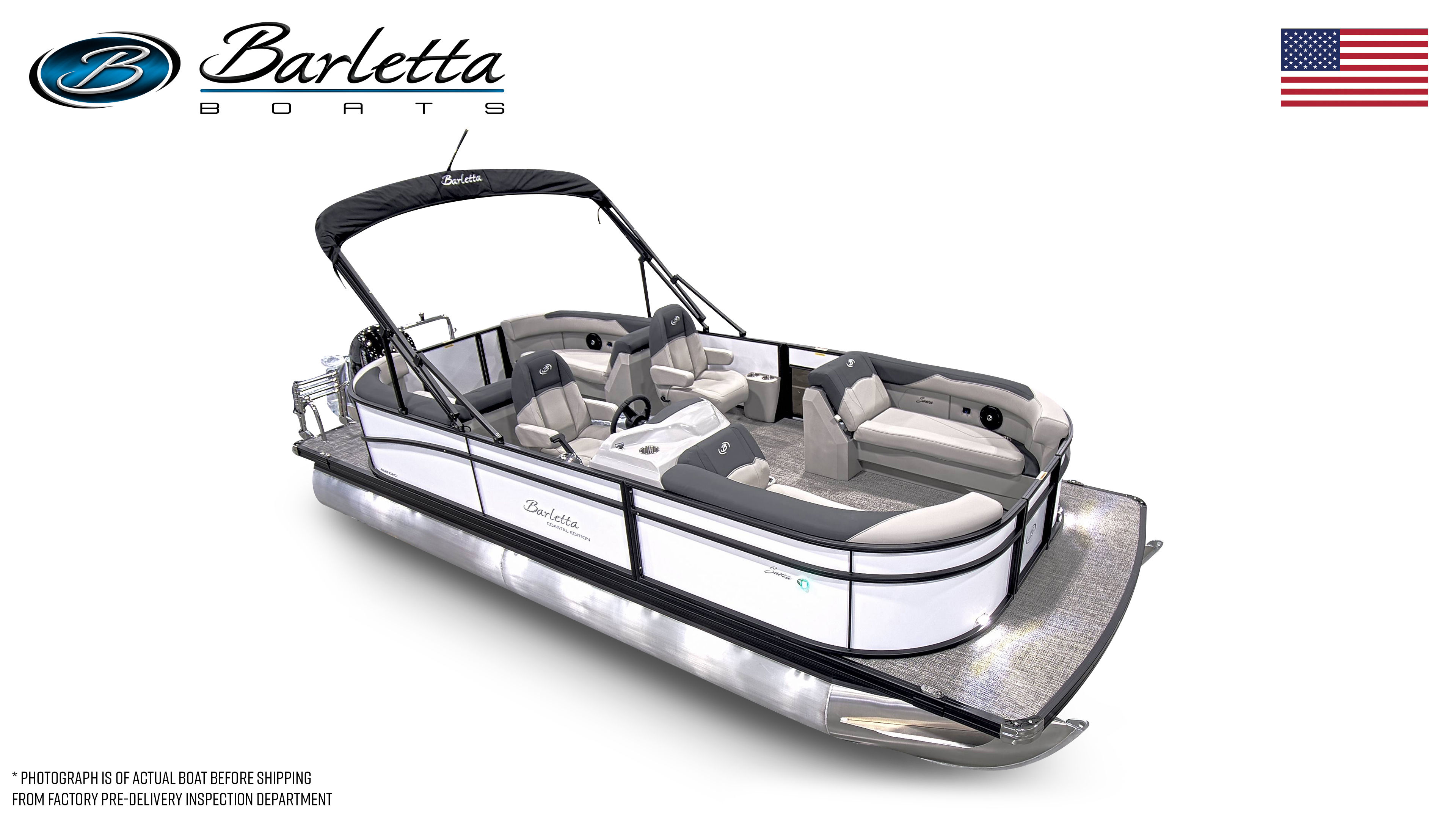 The 2026 Barletta Sanza S22QC comes loaded with features designed to maximize comfort, style, and enjoyment. The Coastal Edition Sanza ensures durability and performance in a variety of water conditions, while the Triple Toon Package Sanza adds an extra layer of stability and buoyancy. The striking Railskin Color in Winter White, paired with the Blackout Package Sanza, gives this pontoon a sophisticated and contemporary appearance.Step aboard and you will be greeted by luxurious Marquesan Gray with Onyx furniture, offering plush seating and ample space for relaxation. The Amore Gray flooring is both stylish and practical, providing a comfortable surface that is easy to clean and maintain. The stainless steel flag pole with an American flag adds a patriotic touch, making this pontoon boat a true standout on the water.