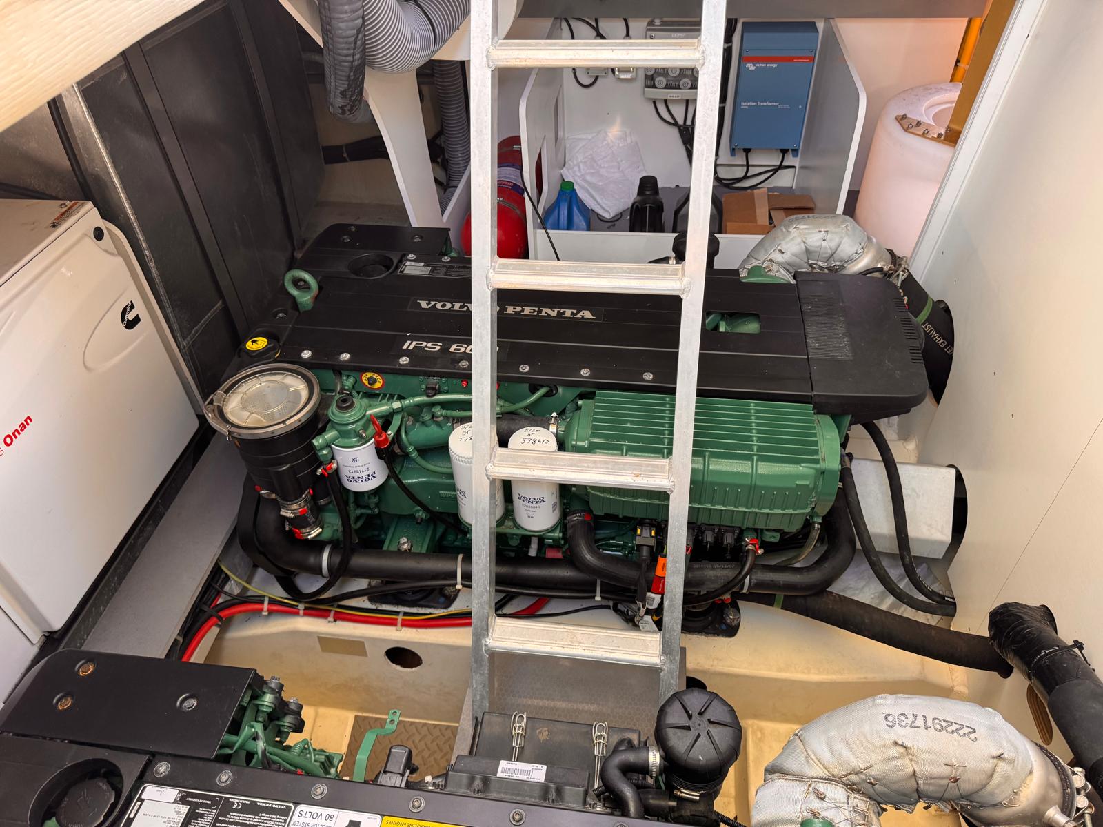 Powered by twin Volvo Penta IPS 600s with only 392 meticulously maintained hours and a Cummins Onan generator with 430 hours, this yacht is fully up to date on service with all systems operating exactly as they should. The engine room is so clean, you could eat off the bilge floor (seriously).