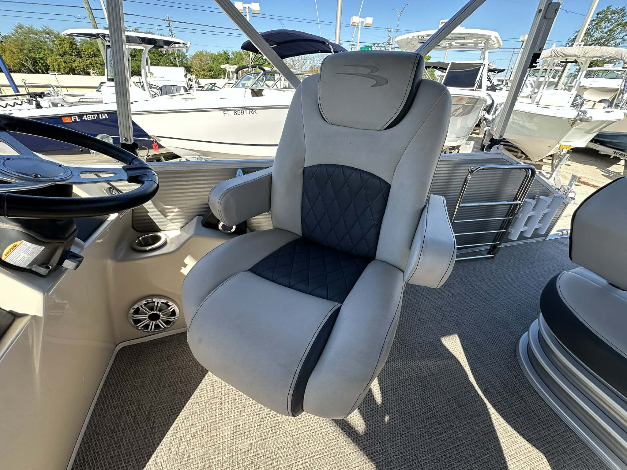 Powered by a single engine with an impressive 150 horsepower, the Bennington 21 SSR delivers a smooth and responsive ride. Whether you’re cruising across the lake, towing water toys, or simply drifting along the shoreline, this pontoon boat offers reliable performance and efficient power. The 150 HP engine ensures you have the speed and agility needed for a variety of activities, from leisurely cruises to more spirited adventures. With Bennington’s reputation for engineering excellence, you can trust that this pontoon boat for sale will provide a dependable and enjoyable boating experience every time you hit the water.