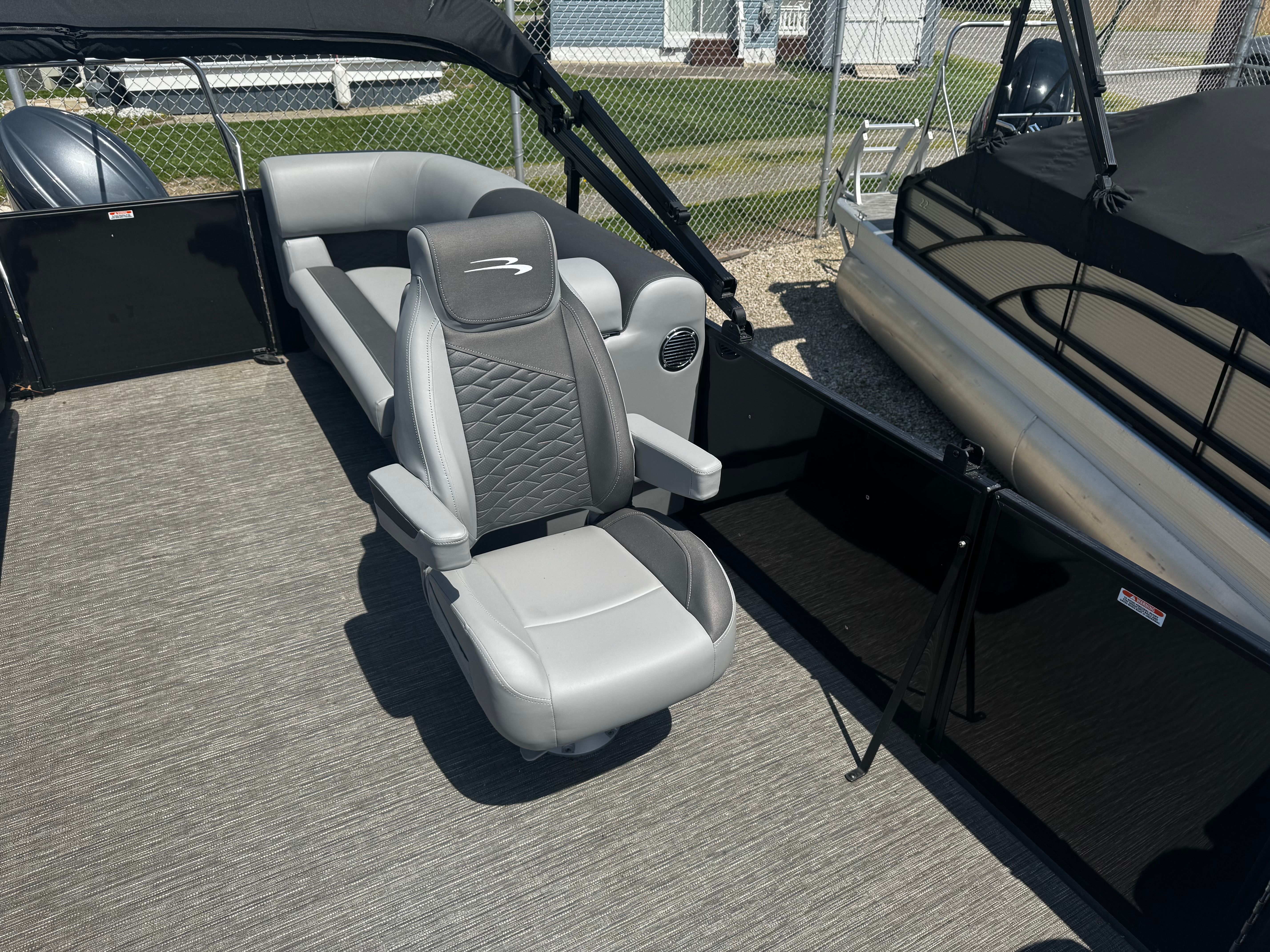 The Bennington 22 SSR is thoughtfully equipped with features that enhance comfort, convenience, and enjoyment on the water. The 22-foot length offers generous seating and open space, allowing you to bring along family and friends without feeling crowded. The pontoon’s layout is designed for easy movement, with plush seating and well-placed amenities that cater to both relaxation and recreation.Special features of the Bennington 22 SSR include a spacious deck that is perfect for sunbathing, socializing, or setting up a picnic. The pontoon’s design makes it easy to access the water for swimming or water sports, while the sturdy construction ensures stability and safety for all passengers. The quality materials and attention to detail are evident throughout, from the comfortable seating to the stylish accents that give this pontoon boat a premium feel.