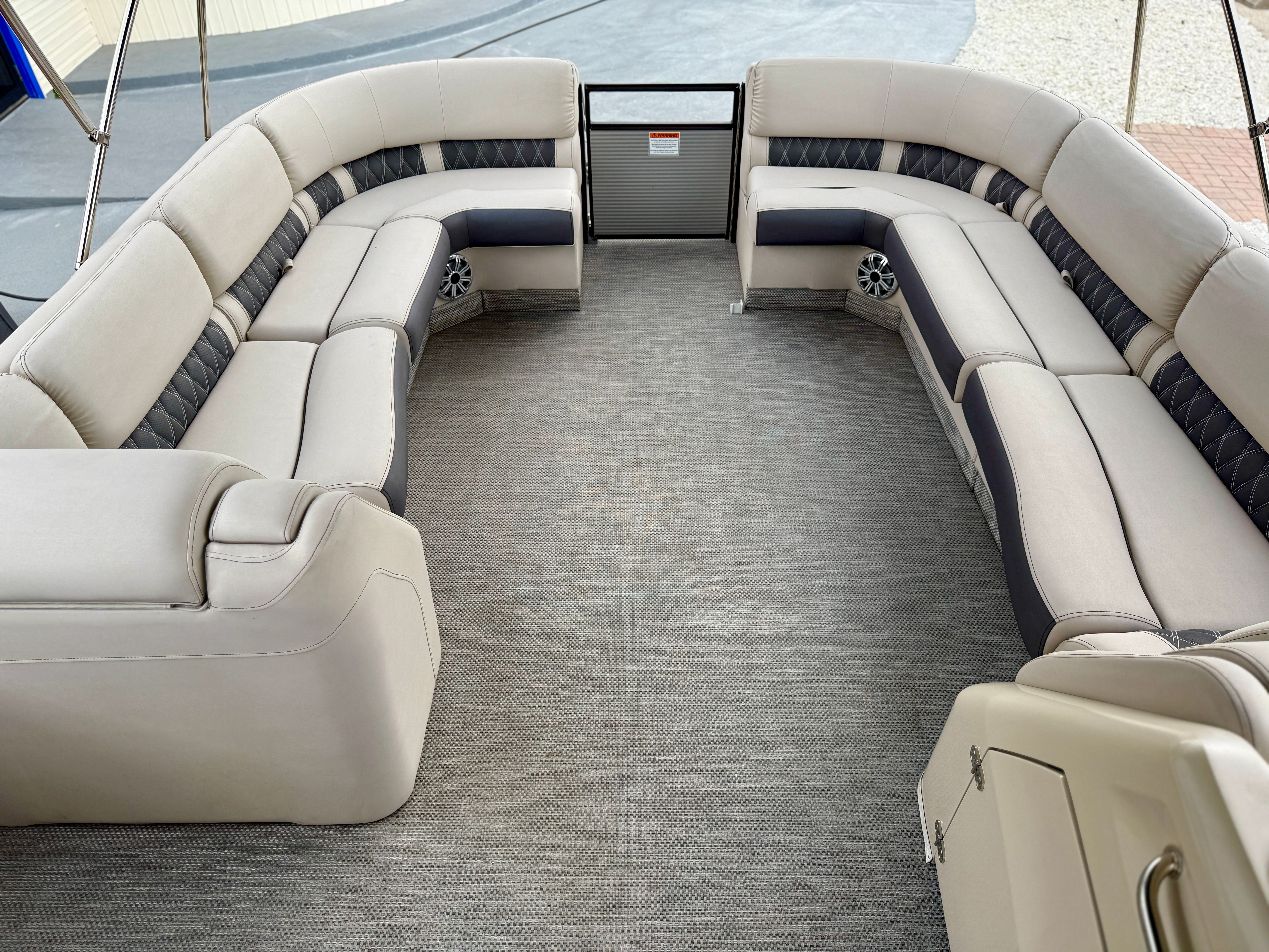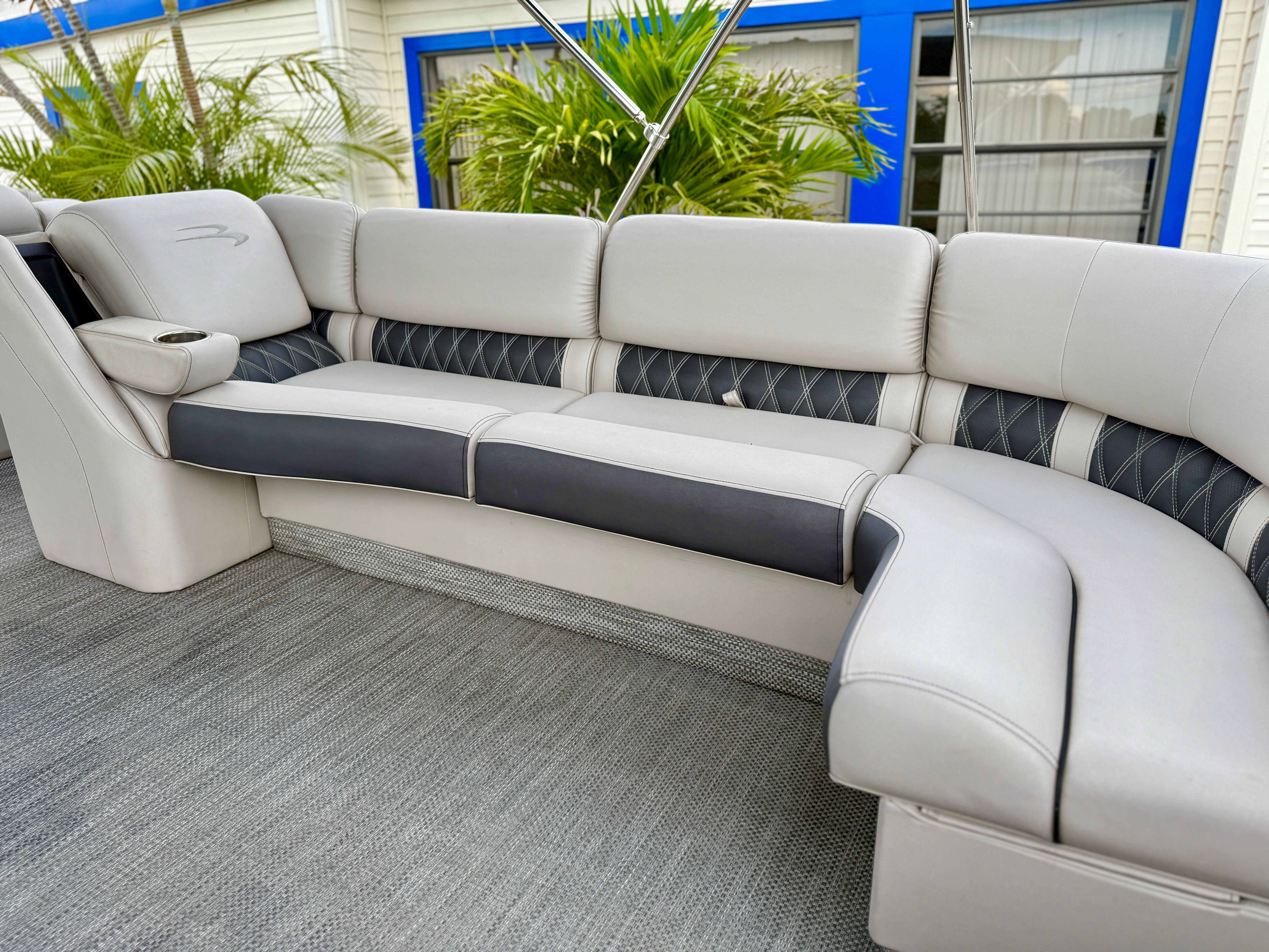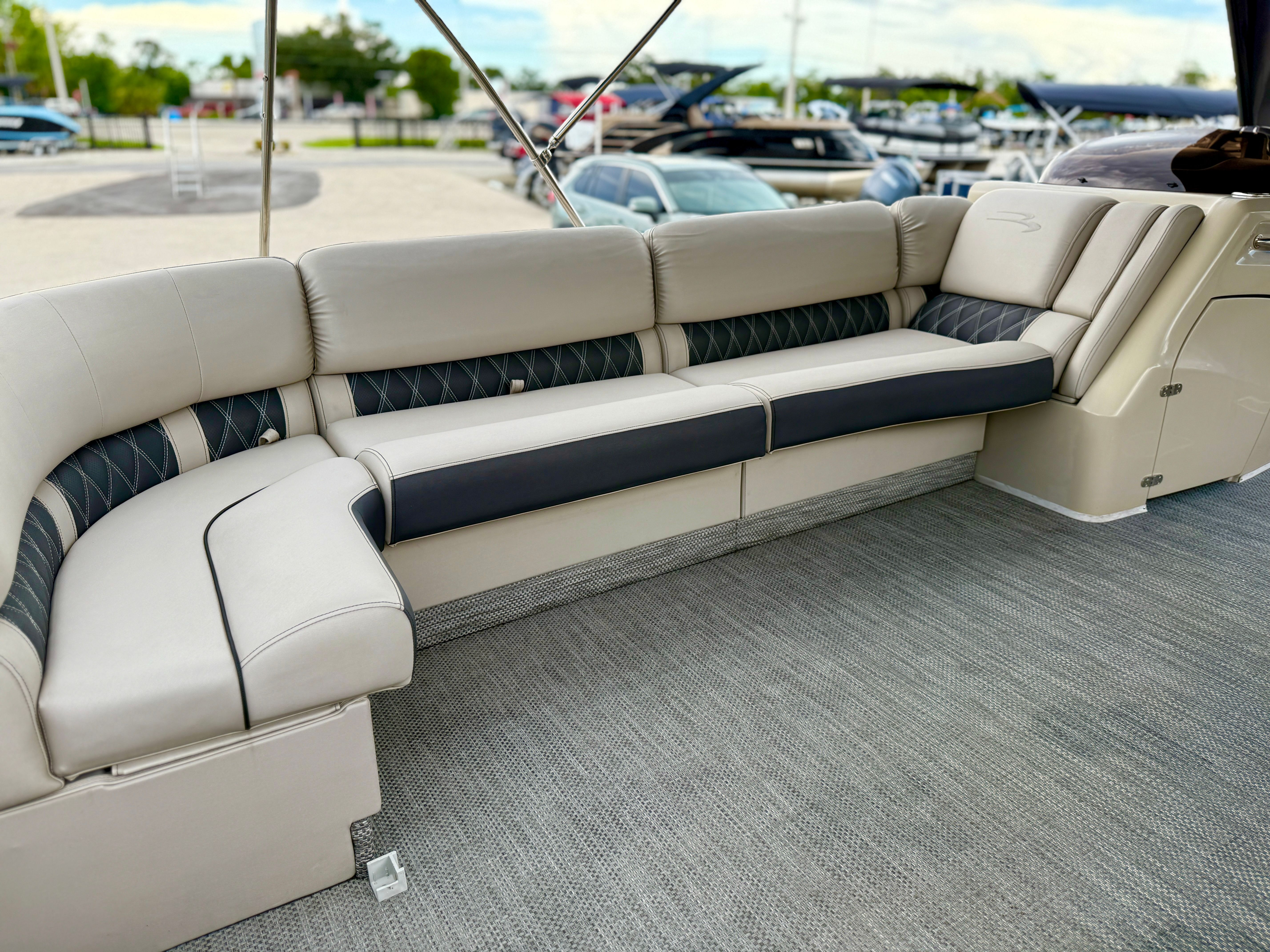 Powering this Bennington pontoon is a robust single engine with an impressive 425 horsepower, delivering smooth and reliable performance on the water. With only 298 engine hours, this boat has plenty of life left for countless adventures. The powerful engine ensures quick acceleration, effortless cruising, and the ability to handle a variety of water conditions with confidence. Whether you are towing water toys, exploring new coves, or simply enjoying a leisurely cruise, the performance of this Bennington boat for sale will exceed your expectations.