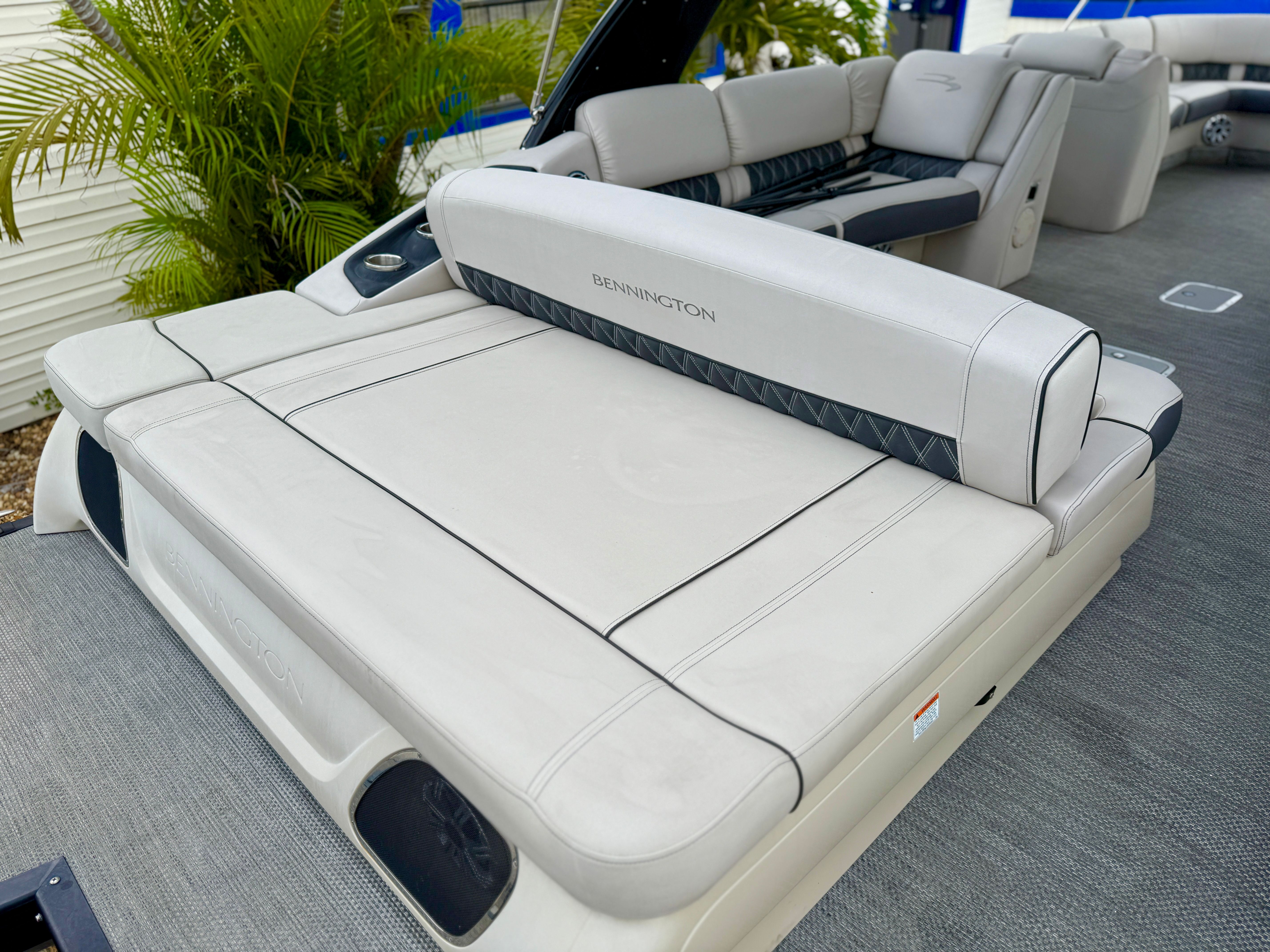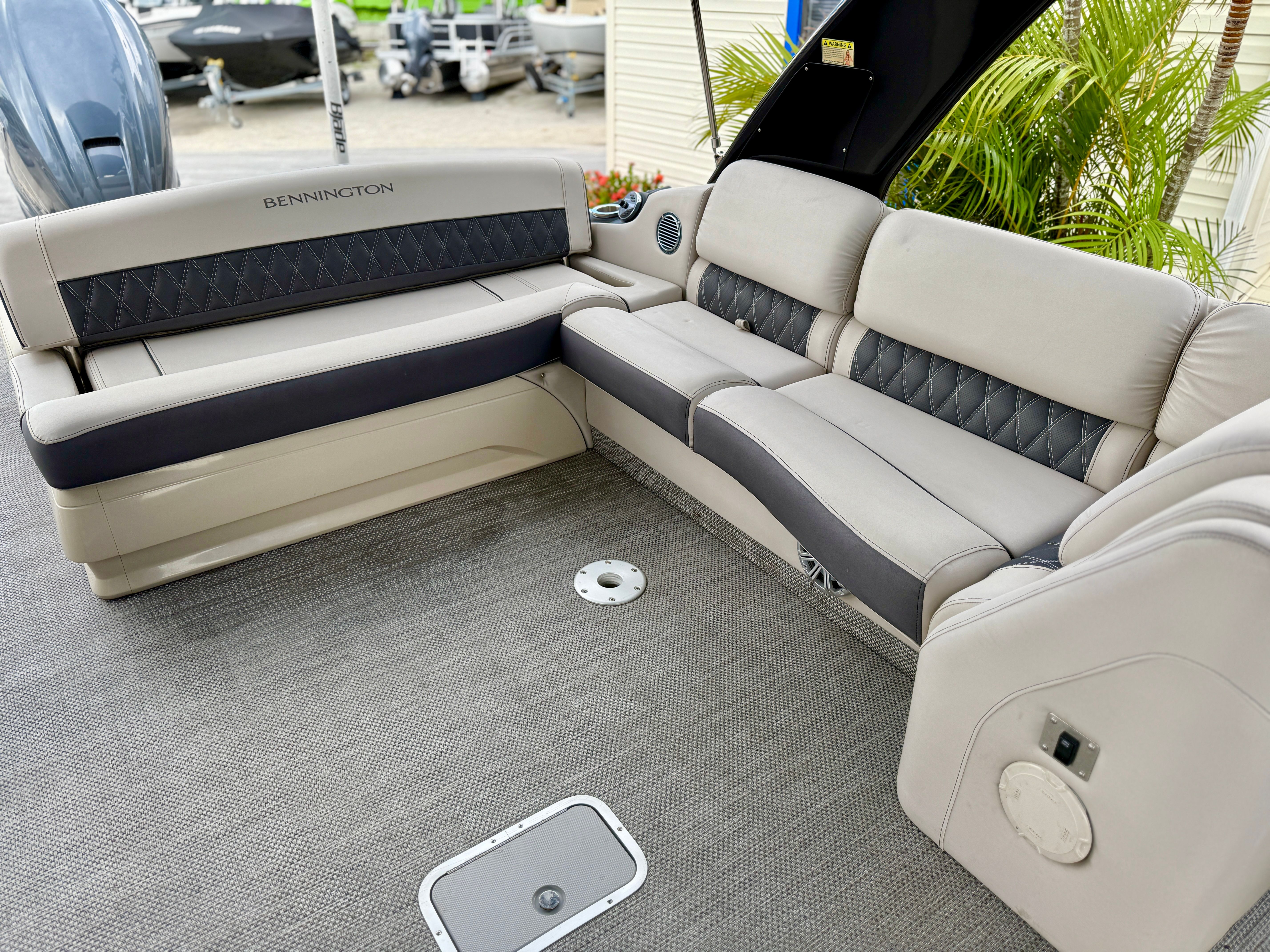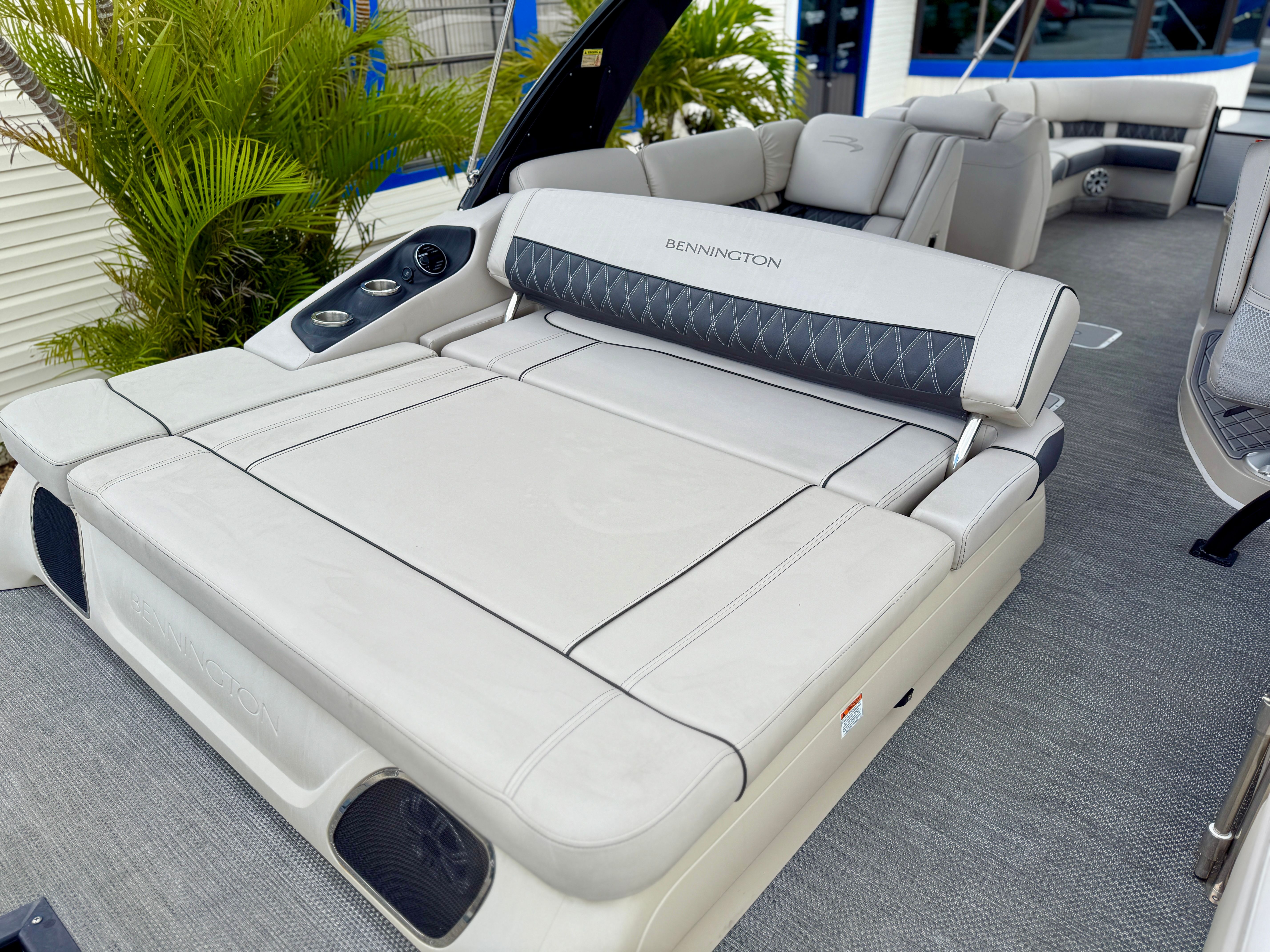 Powering this Bennington pontoon is a robust single engine with an impressive 425 horsepower, delivering smooth and reliable performance on the water. With only 298 engine hours, this boat has plenty of life left for countless adventures. The powerful engine ensures quick acceleration, effortless cruising, and the ability to handle a variety of water conditions with confidence. Whether you are towing water toys, exploring new coves, or simply enjoying a leisurely cruise, the performance of this Bennington boat for sale will exceed your expectations.