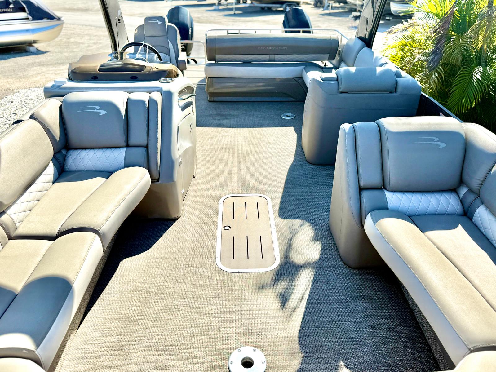 Beyond its recreational appeal, the Bennington 28 RSB pontoon boat for sale offers a range of practical benefits. The spacious deck provides ample storage for gear, water toys, and personal items, keeping the area clutter-free and organized. The pontoon’s design makes docking and maneuvering straightforward, even for those new to boating. Fuel efficiency is enhanced by the modern engine setup, allowing you to spend more time on the water and less time at the pump.The durable construction and quality materials ensure this Bennington boat for sale is built to last, providing peace of mind for years to come. Maintenance is simplified thanks to the thoughtful engineering, making ownership as enjoyable as the time you spend on the water. Whether you’re planning day trips, weekend getaways, or extended cruises, the Bennington 28 RSB is equipped to handle it all with ease.