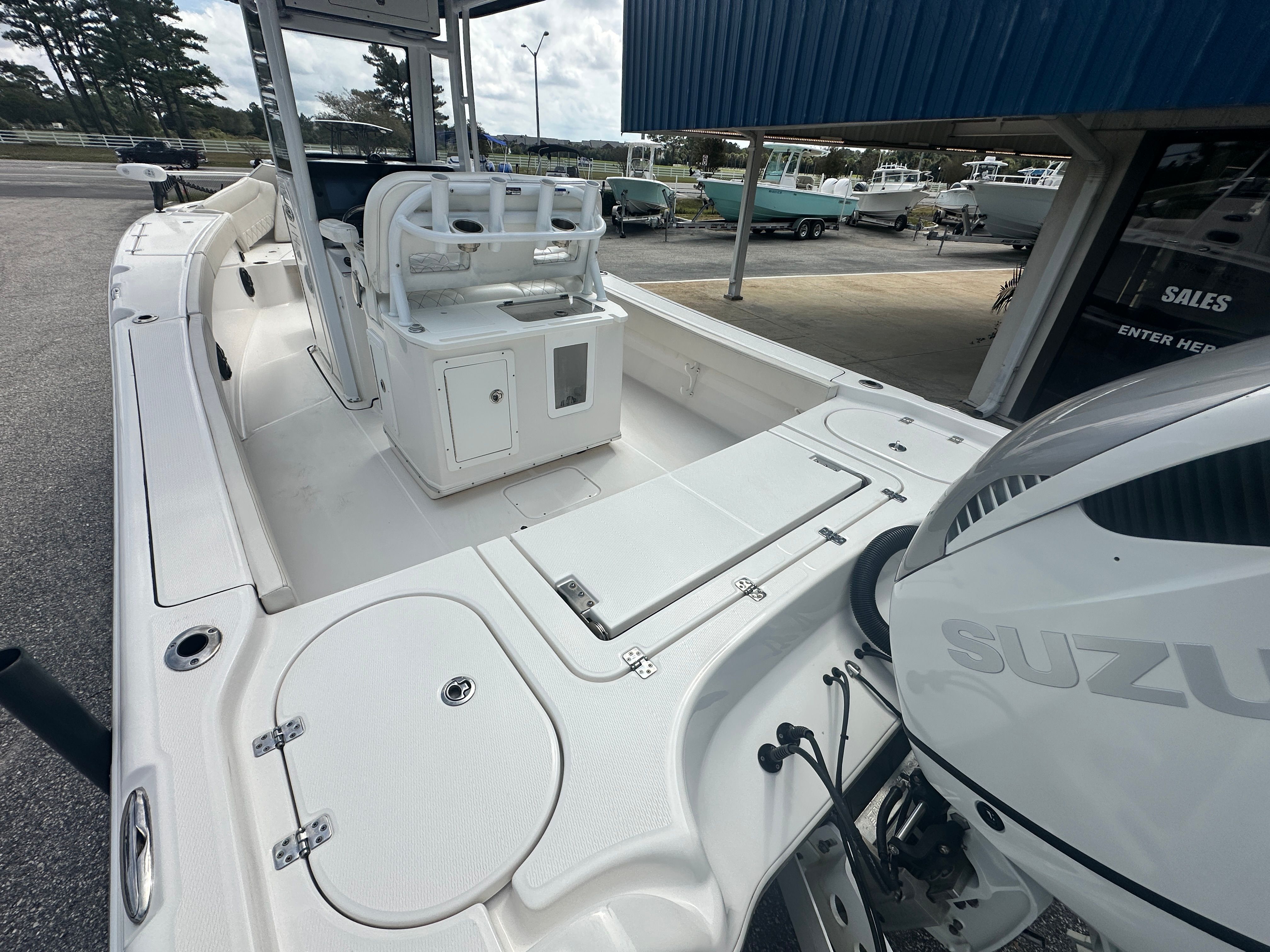 Step into serious offshore performance and comfort with this 2023 Blue Wave 2600 Makaira, powered by a Suzuki 350 HP engine and paired with a McClain tandem axle trailer for easy transport. This model is a tournament-ready fishing machine that also delivers family-friendly versatility for cruising and relaxing on the water.