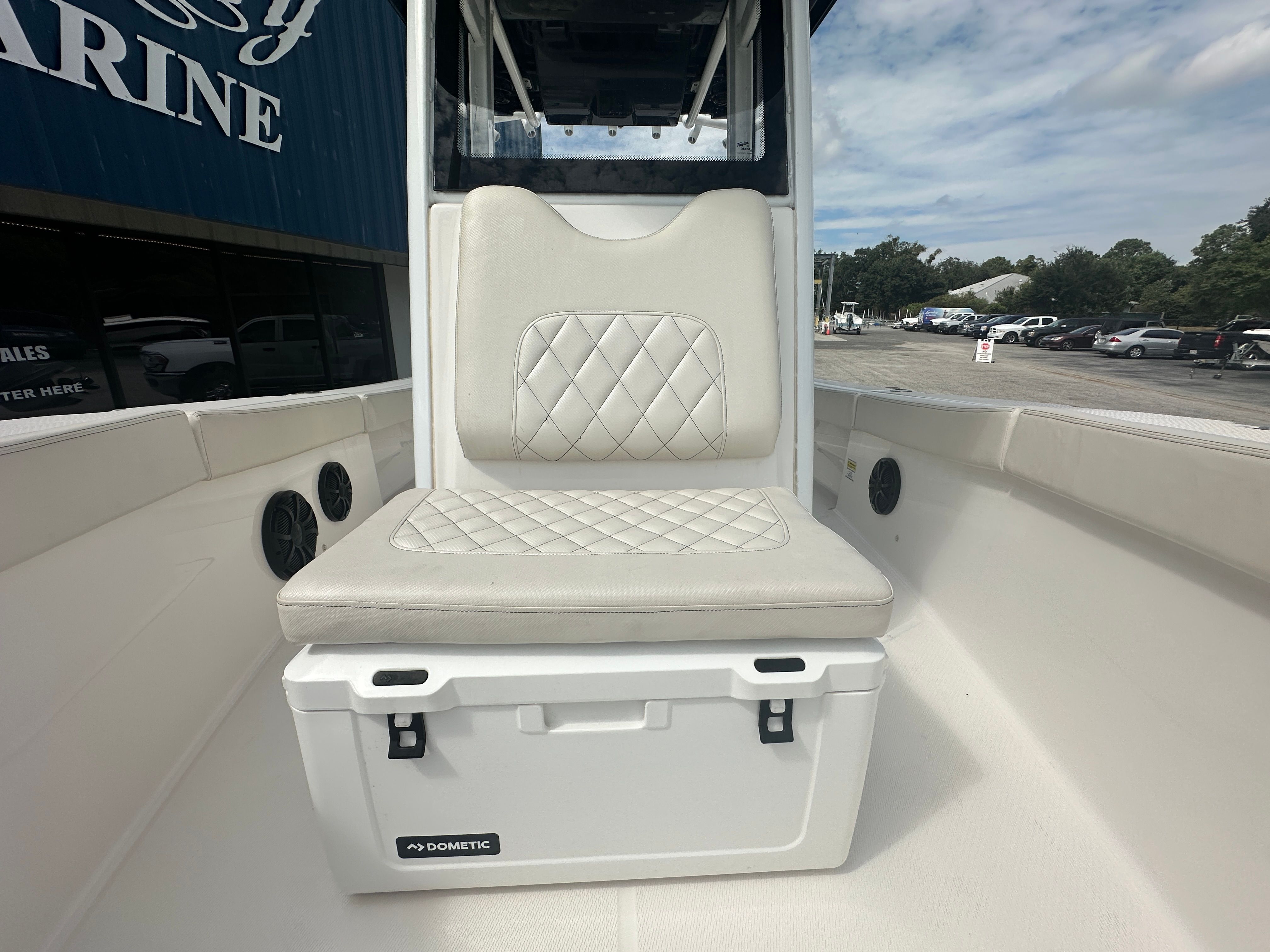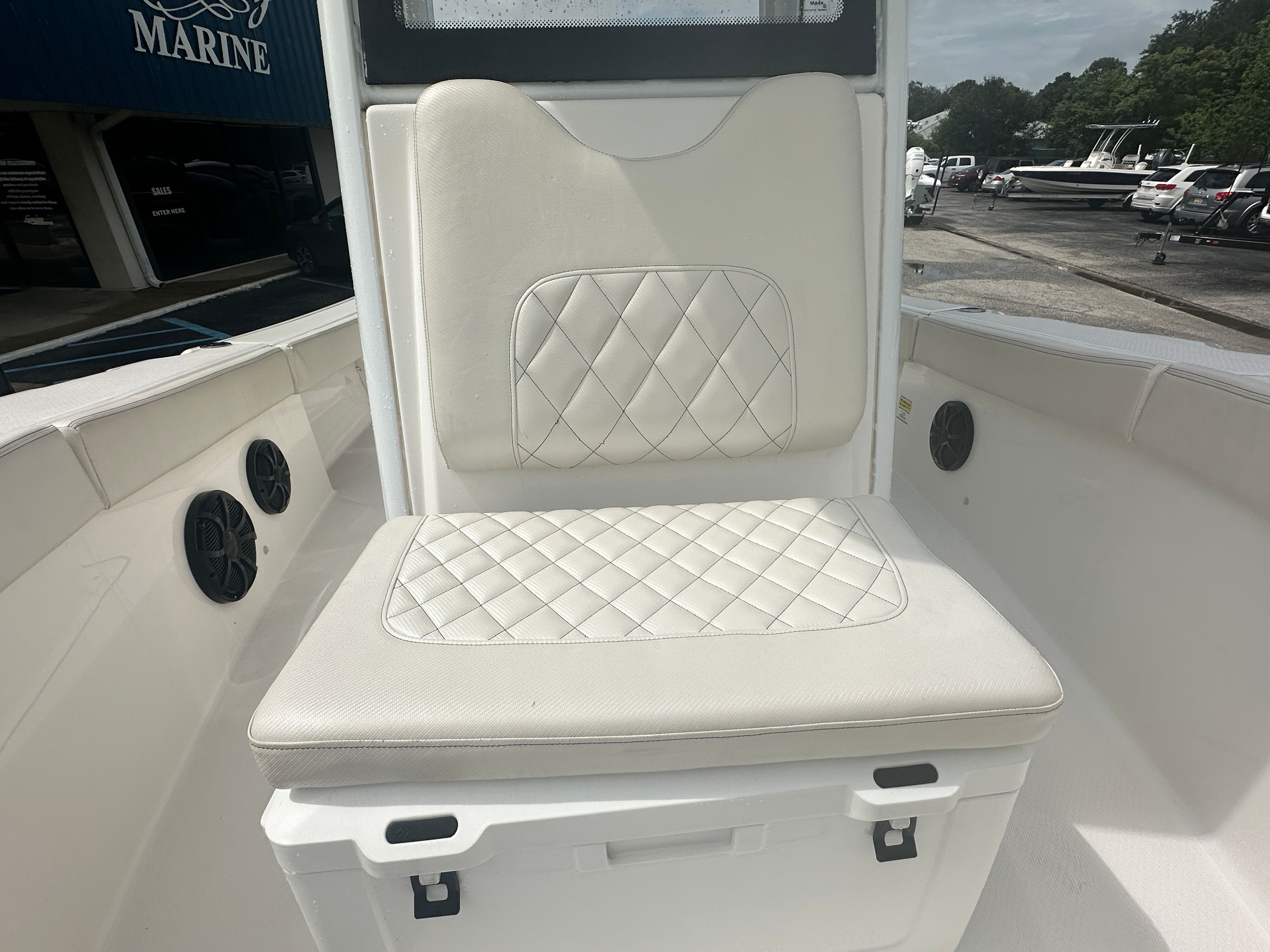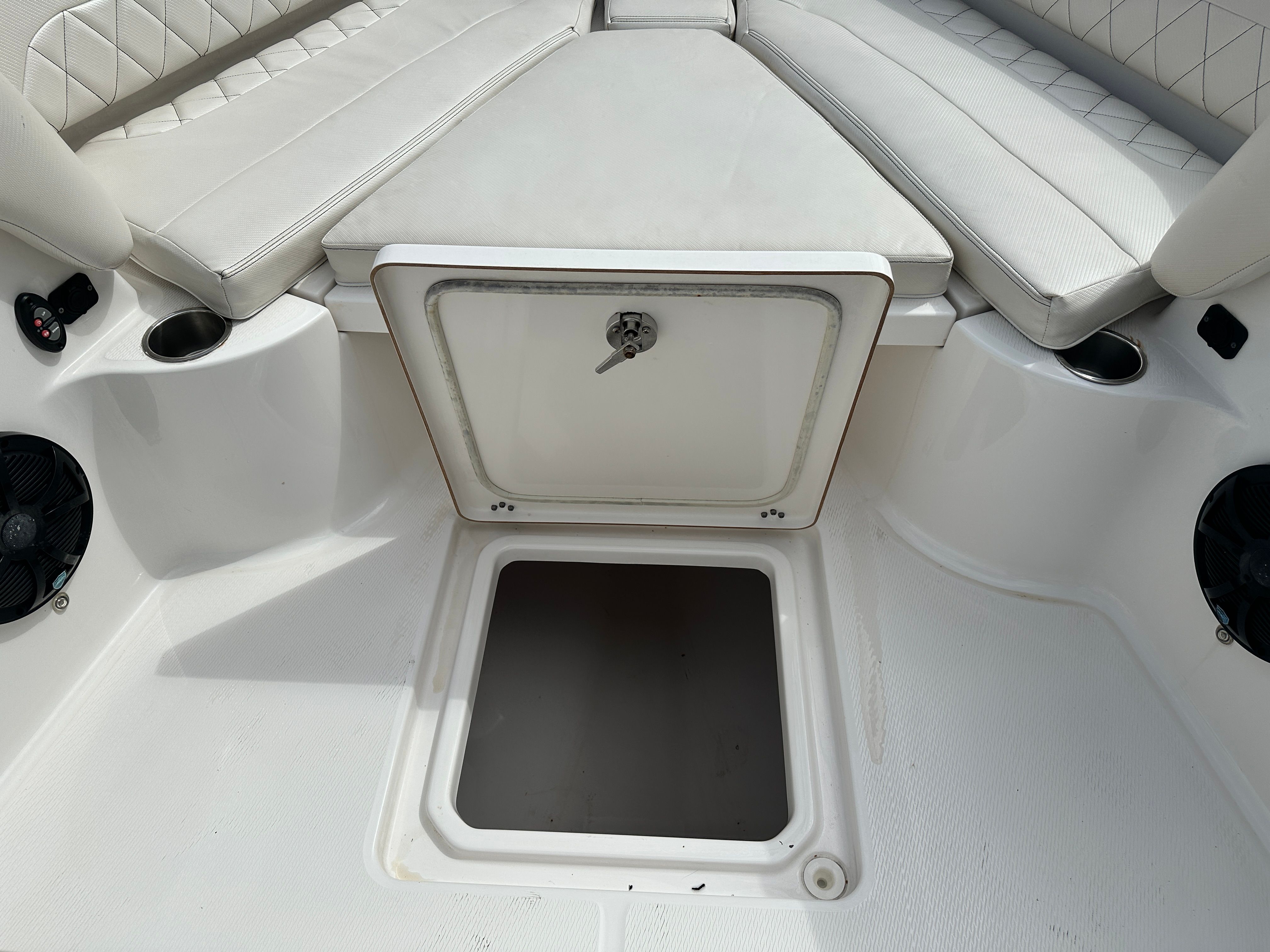 Built-in 85 qt cooler for drinks and catch storage