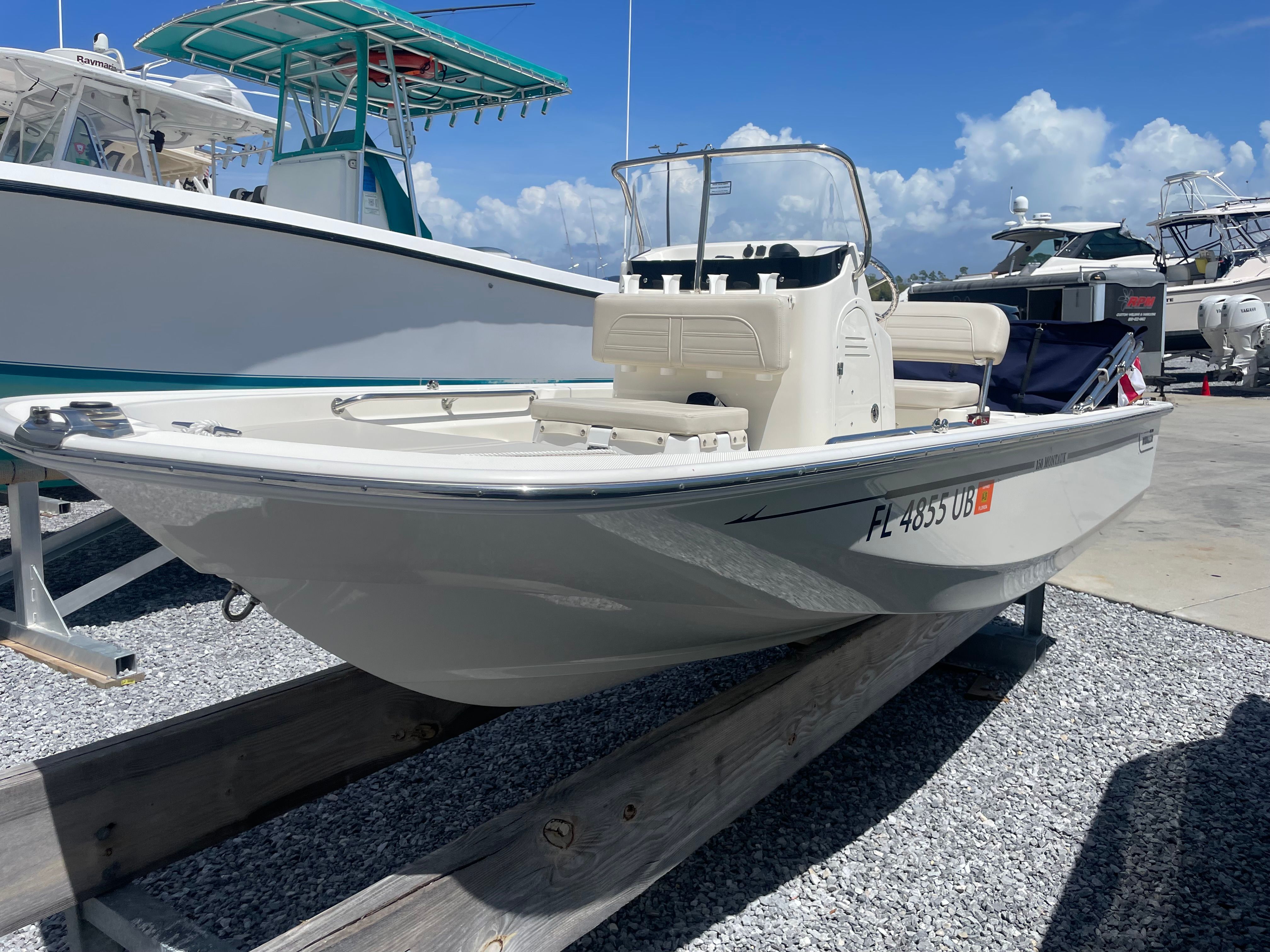 This 2025 Boston Whaler 150 Montauk is a used Center Console boat that measures approximately 15.4 feet in length, making it an ideal size for a variety of water activities. With only 8 engine hours, this boat is in excellent condition, offering the benefits of a nearly new vessel at a competitive price. The compact yet spacious design of the 150 Montauk ensures easy handling and maneuverability, making it a top choice for those seeking a Center Console boat for sale that is both practical and enjoyable.