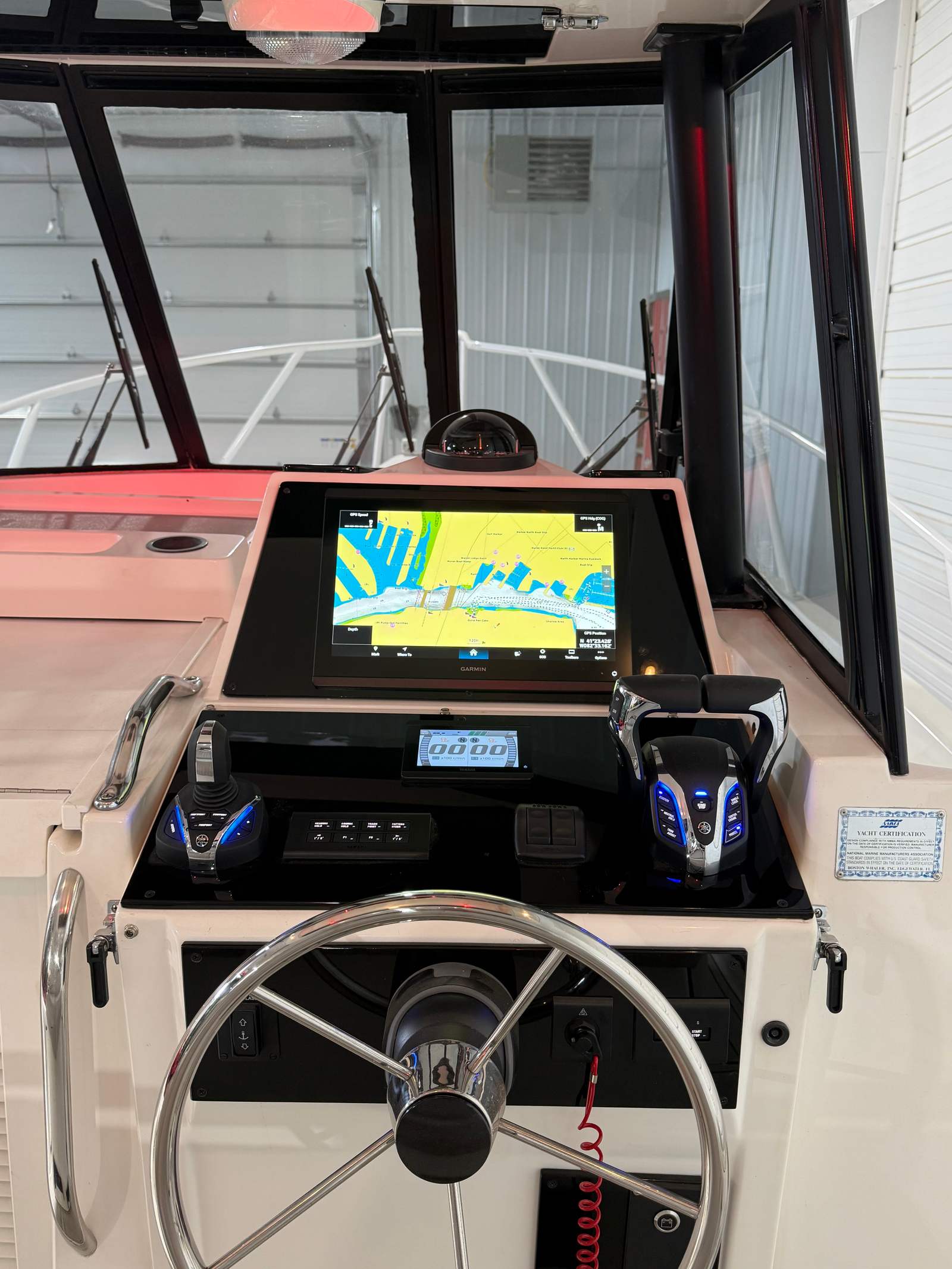 This Boston Whaler boat for sale is loaded with features designed to enhance your time on the water. The four-battery system ensures you have plenty of power for all your electronics and accessories, while the battery charger keeps everything ready for your next trip. The aft bench seat provides comfortable seating for guests, and the bow seating area is perfect for relaxing and enjoying the view. Anglers will appreciate the dedicated bait station, making it easy to prepare and store live bait for a successful day of fishing.The cockpit is equipped with coaming bolsters for added comfort during long days on the water, and the cockpit storage offers plenty of space to keep your gear organized and secure. The cockpit wet bar is a fantastic addition for entertaining, allowing you to serve refreshments and snacks with ease. Navigational aids such as the compass and depth sounder help you stay on course and monitor water conditions, adding an extra layer of safety and convenience to your boating experience.