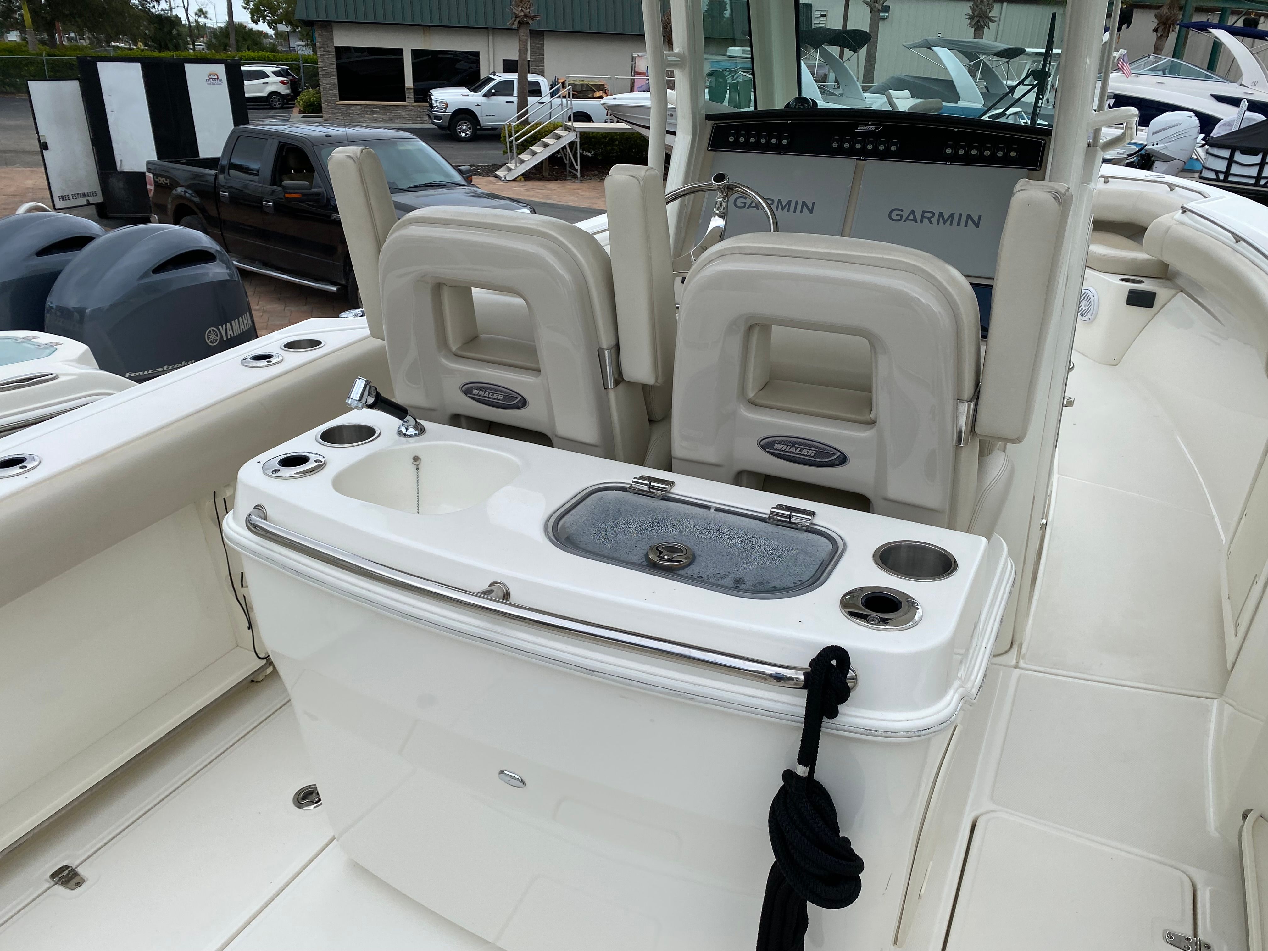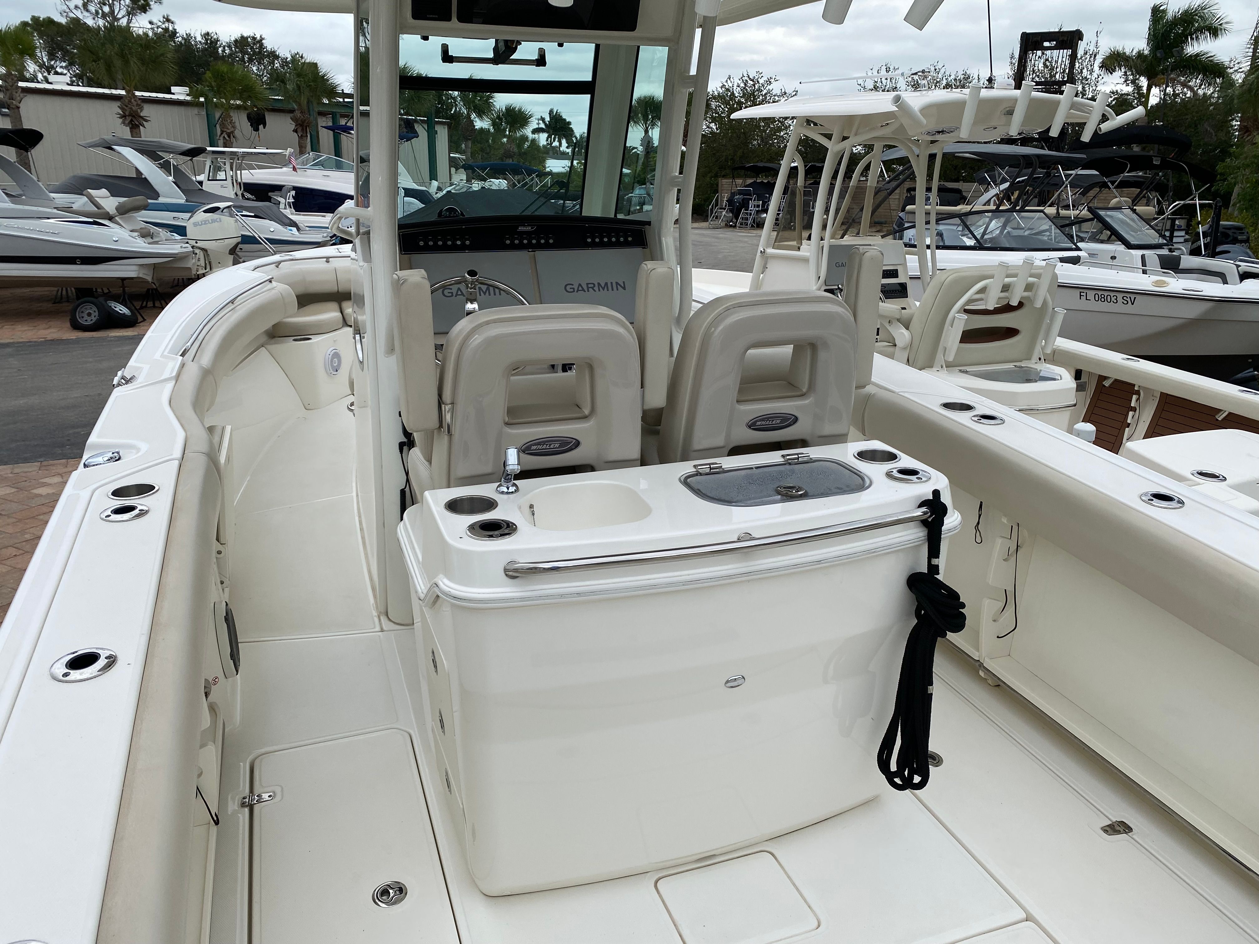 Practicality is at the heart of the Boston Whaler 280 Outrage. The Center Console configuration allows for efficient storage solutions, keeping your gear organized and accessible. Docking is a breeze thanks to the responsive twin engines, which provide excellent maneuverability in tight spaces. The boat’s fuel-efficient design means you can spend more time on the water and less time at the pump, making it a smart choice for both frequent outings and longer excursions.Maintenance is straightforward, thanks to Boston Whaler’s reputation for quality craftsmanship and durable materials. The 280 Outrage is built to withstand the rigors of saltwater environments, ensuring your investment remains in top condition for years to come. Whether you’re an experienced boater or new to the world of Center Console boats, this model offers user-friendly features that make ownership enjoyable and hassle-free.