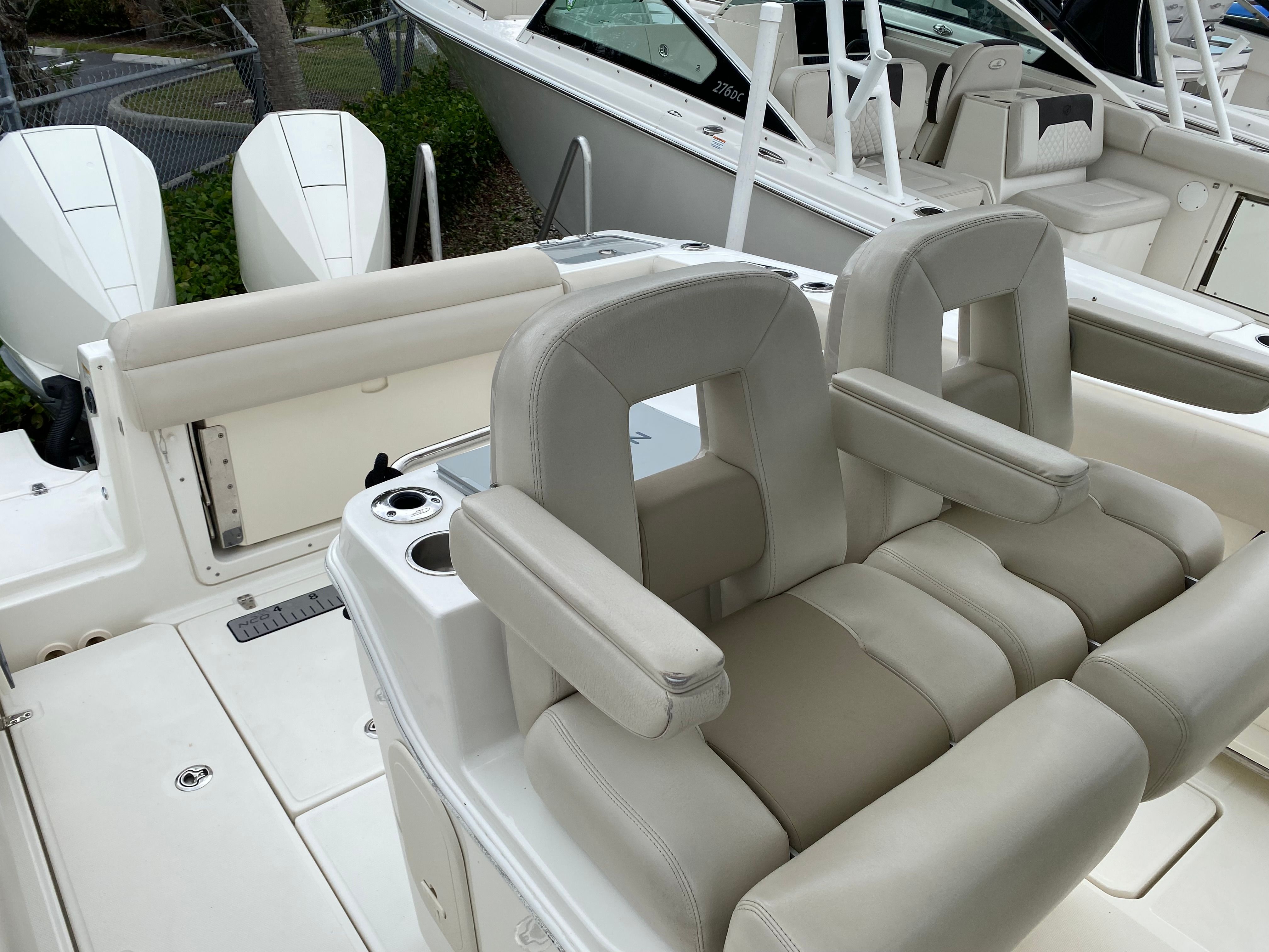 The Boston Whaler 280 Outrage is designed with the needs of avid boaters in mind. Its Center Console layout maximizes deck space, allowing for easy movement and unobstructed access to all areas of the boat. The spacious cockpit is ideal for fishing, entertaining, or simply relaxing in the sun. The helm station is ergonomically designed, providing clear sightlines and intuitive controls for a comfortable and confident driving experience.Special features of this model include its twin-engine configuration, which not only enhances performance but also offers added safety and maneuverability. The 28-foot length provides generous seating and storage options, making it easy to stow gear, tackle, and personal items securely. The boat’s durable construction and high-quality materials ensure longevity and low maintenance, so you can spend more time enjoying the water and less time worrying about upkeep.