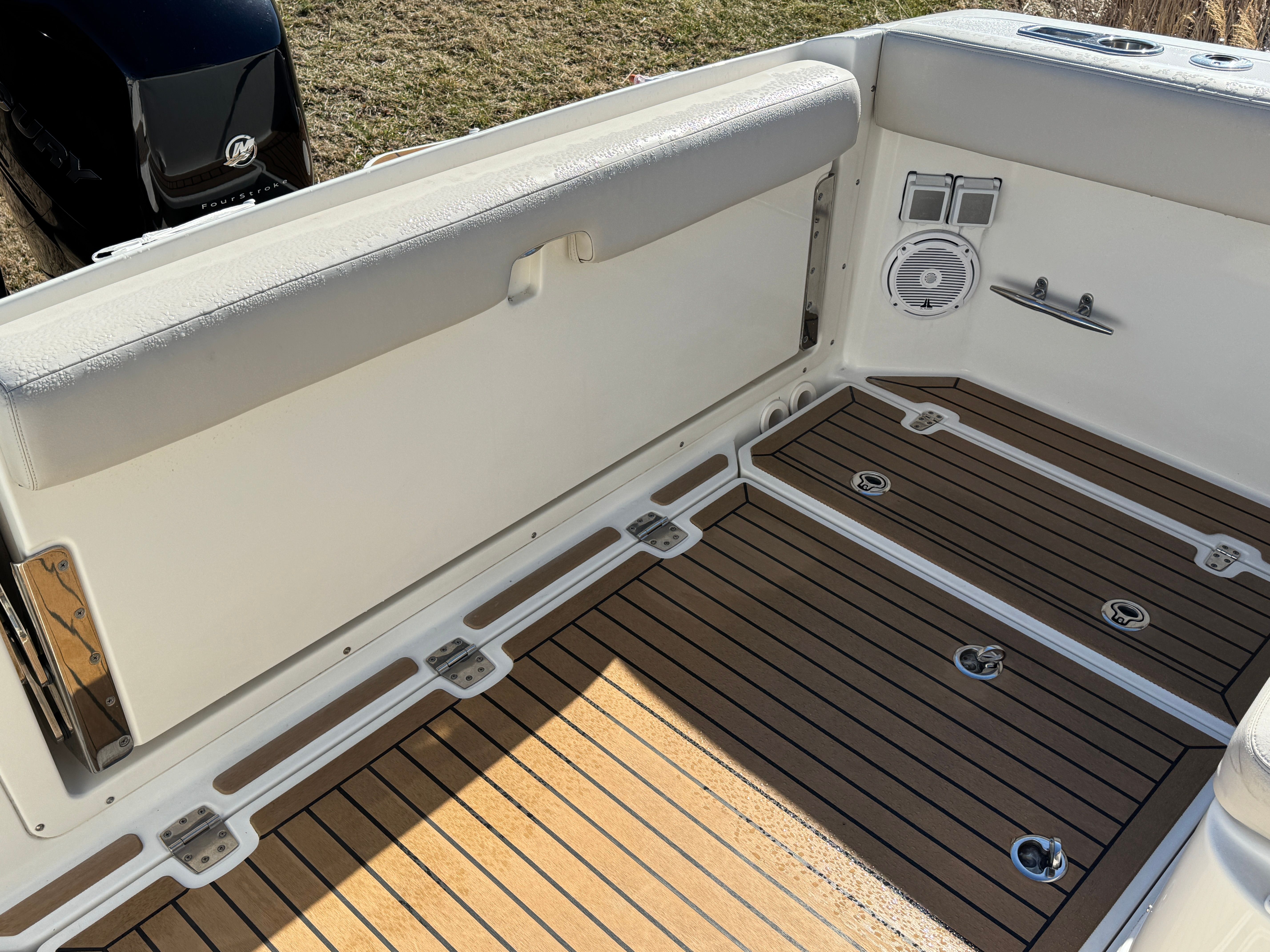 Upgrades include a 12V cockpit refrigerator, Mercury JPO Joystick control, aft cockpit sunshade and custom canvas covers for everything. All cushions look like new and the boat shows well. Come check it out at our main showroom in Grasonville or give us a call today for more details.