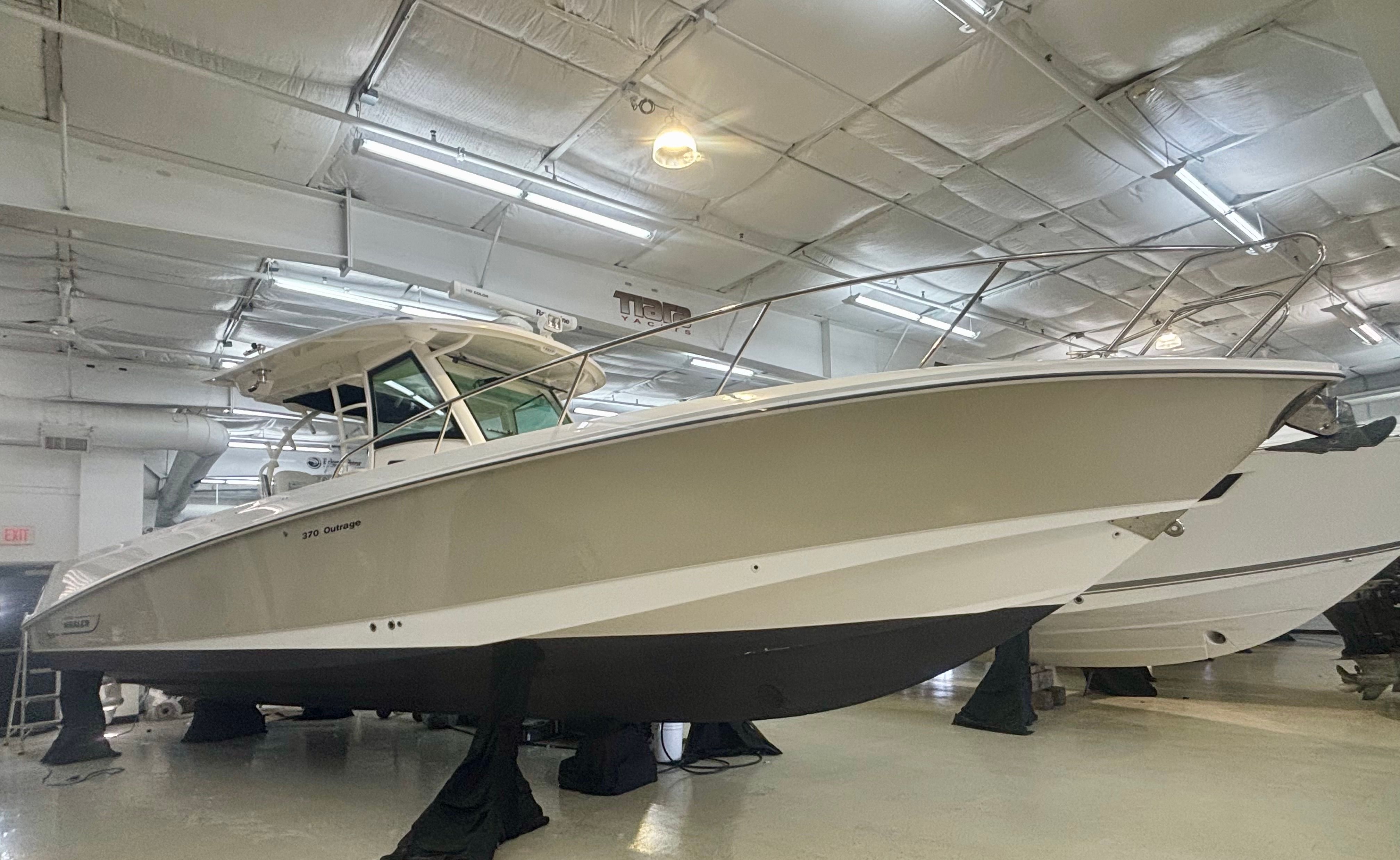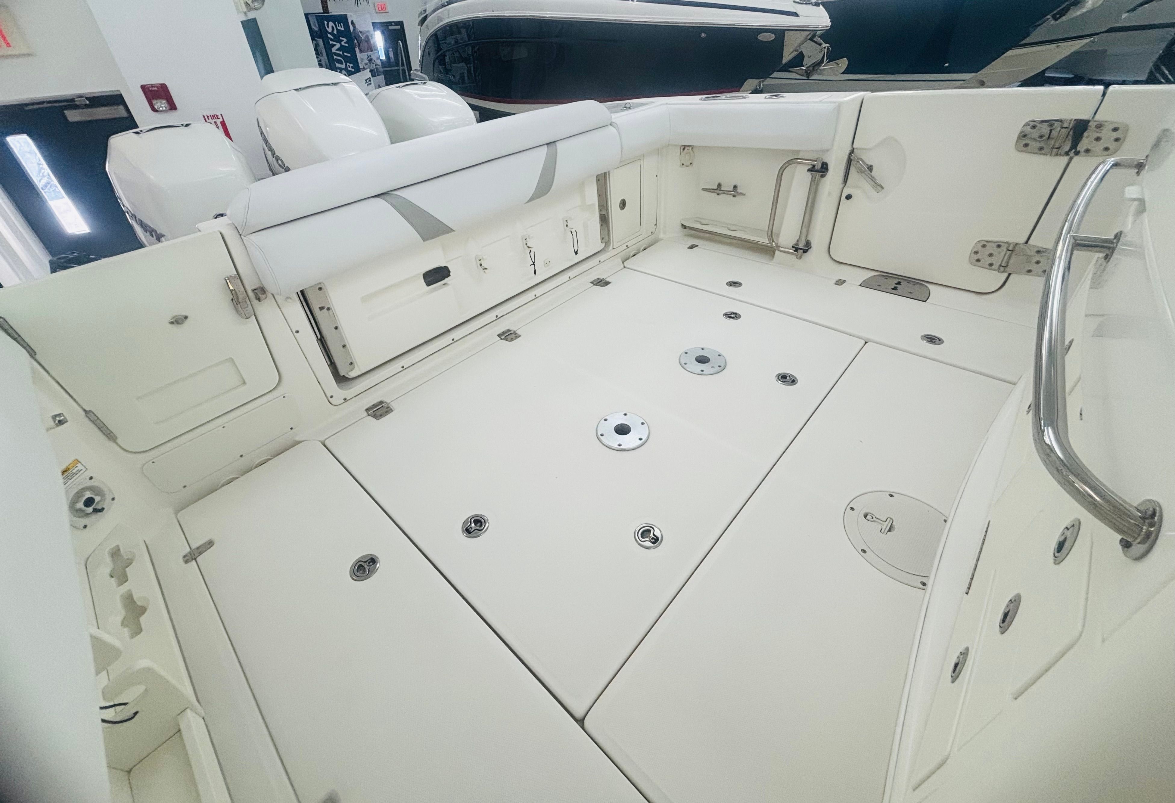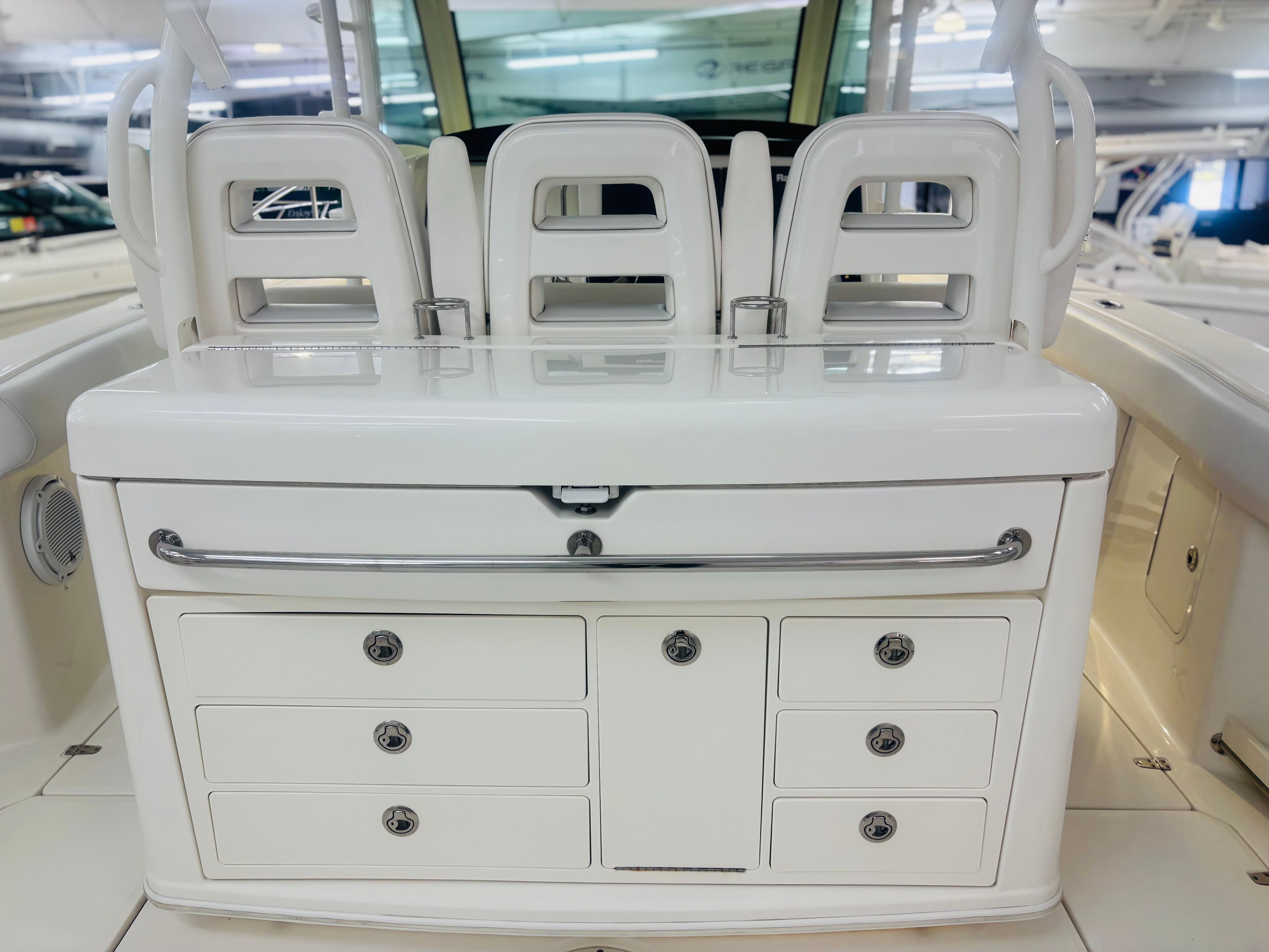 Powered By Triple White Mercury Verado 300’s w/Joystick * 1000 HOURS * Custom Gray Hull Color (Boat Was Used As Tender) * Dual Raymarine 15” GPS/Chart/Fish/Depth * Raymarine Open Array Radar * Raymarine VHF Radio * FLIR Night Vision Camera * Remote Control Spotlight * Fusion Stereo w/ JL Speakers * Diesel Generator – Fischer Panda 8kW; 20 Gal Fuel Tank * Console Air Conditioning, 8,000BTU * Enclosed Head Compartment w/ Sink, Shower Wand * Hardtop w/Rod Holders (6), LED Spreader Lights (1 Fore & 2 Aft) * Windshield Electric Vent * Radial Outriggers * S.S. Gunwale Rod Holders (6), Under-Gunwale Storage * Transom Rod Holders (5) * Insulated Bow Fish Boxes (2), Tackle Center * Cockpit Fish Boxes * Transom Livewell – 24 Gallon * Port Side Entry Door w/SS Ladder * Cockpit Refrigerators (2) * All New Upholstery 2024 * Trim Tabs w/ Indicators * LED Underwater Lights * Anchor Windlass, All Chain Rode 300’ * S.S. Steering Wheel w/Power Knob * Bow Towing Eye * Fresh Water Cockpit Shower, Fresh Water Washdown * USCG Safety Package * 30-Day Limited Power Train Warranty * Wash, Local Delivery & Orientation * @CS