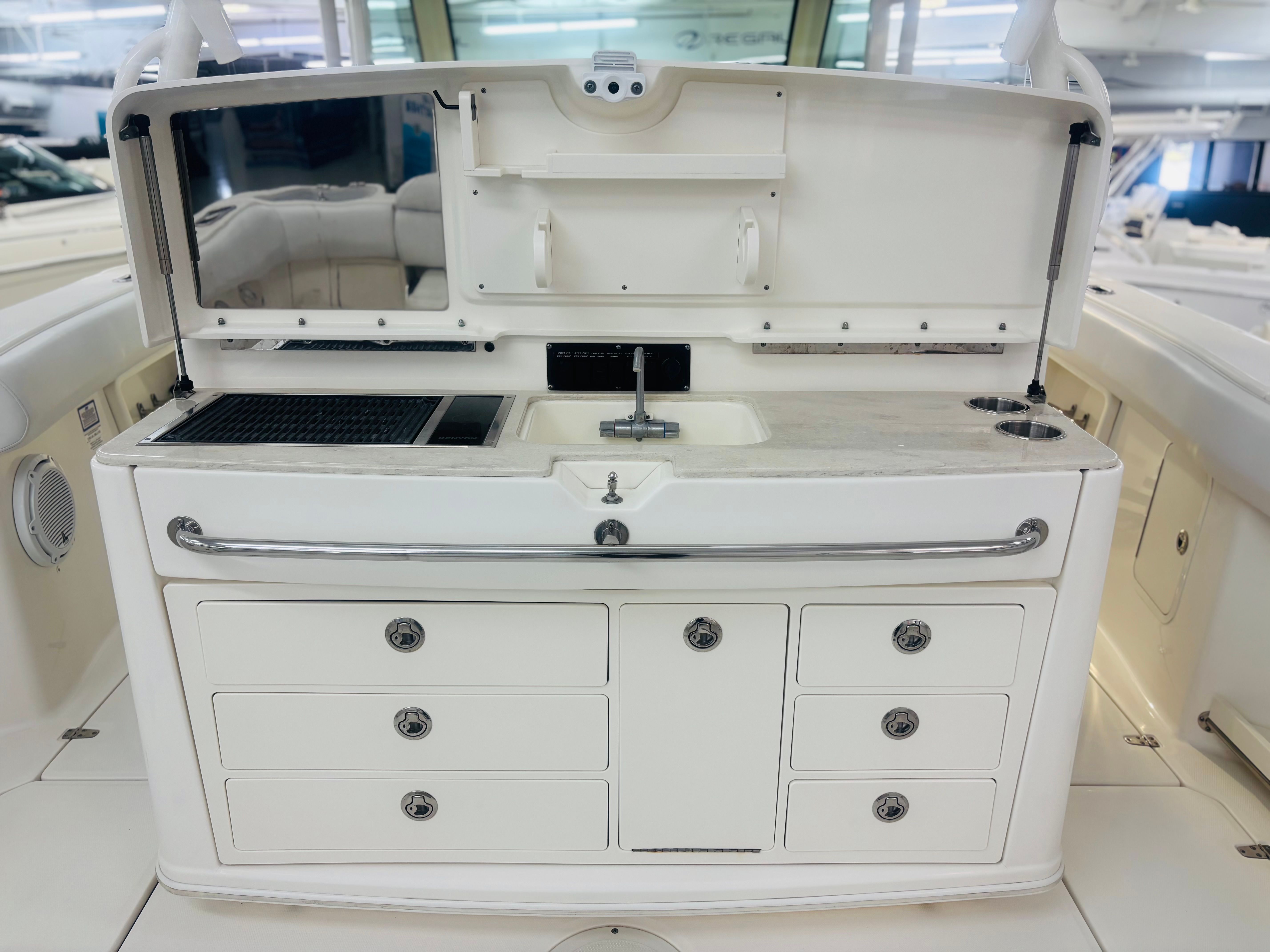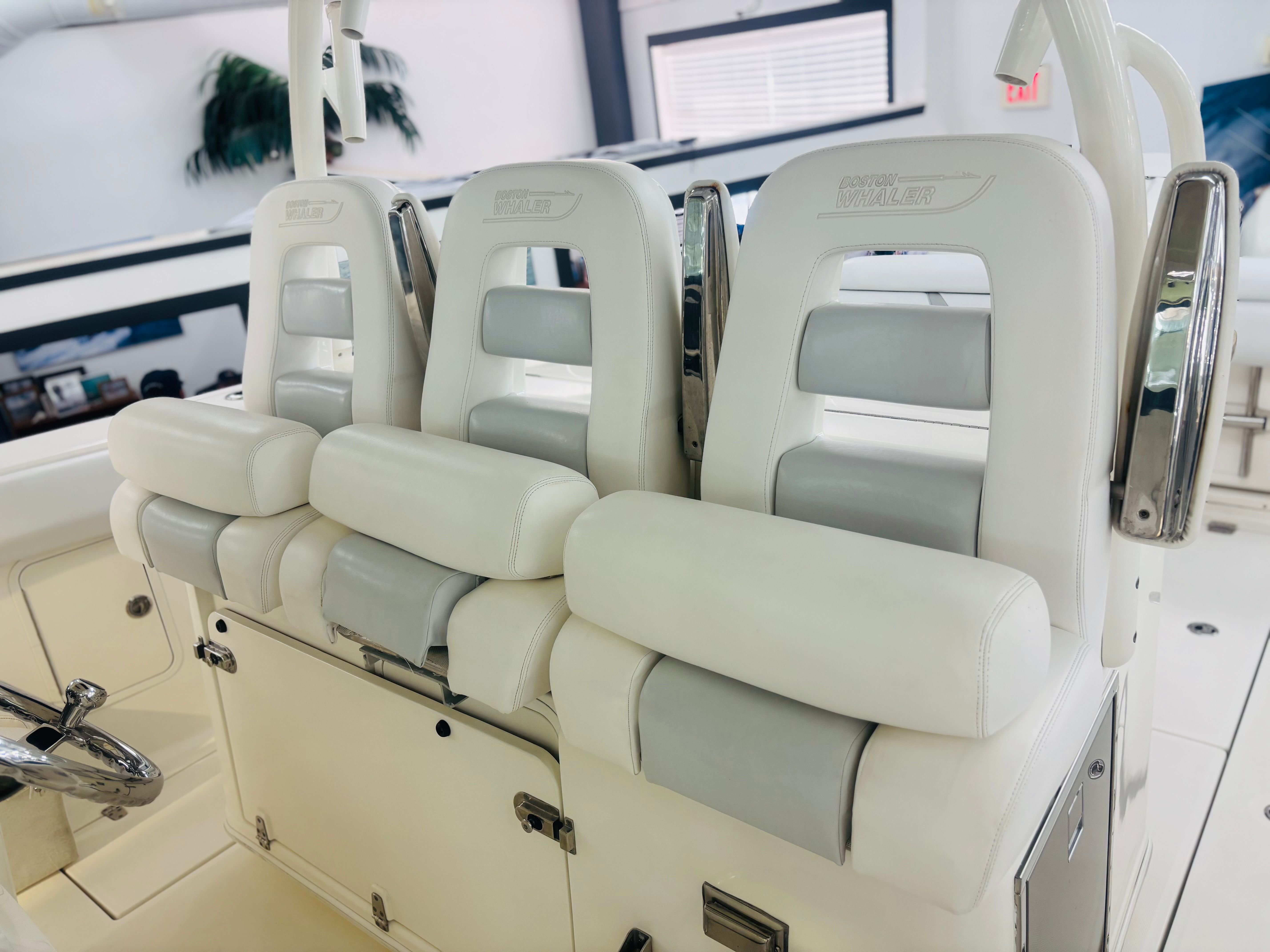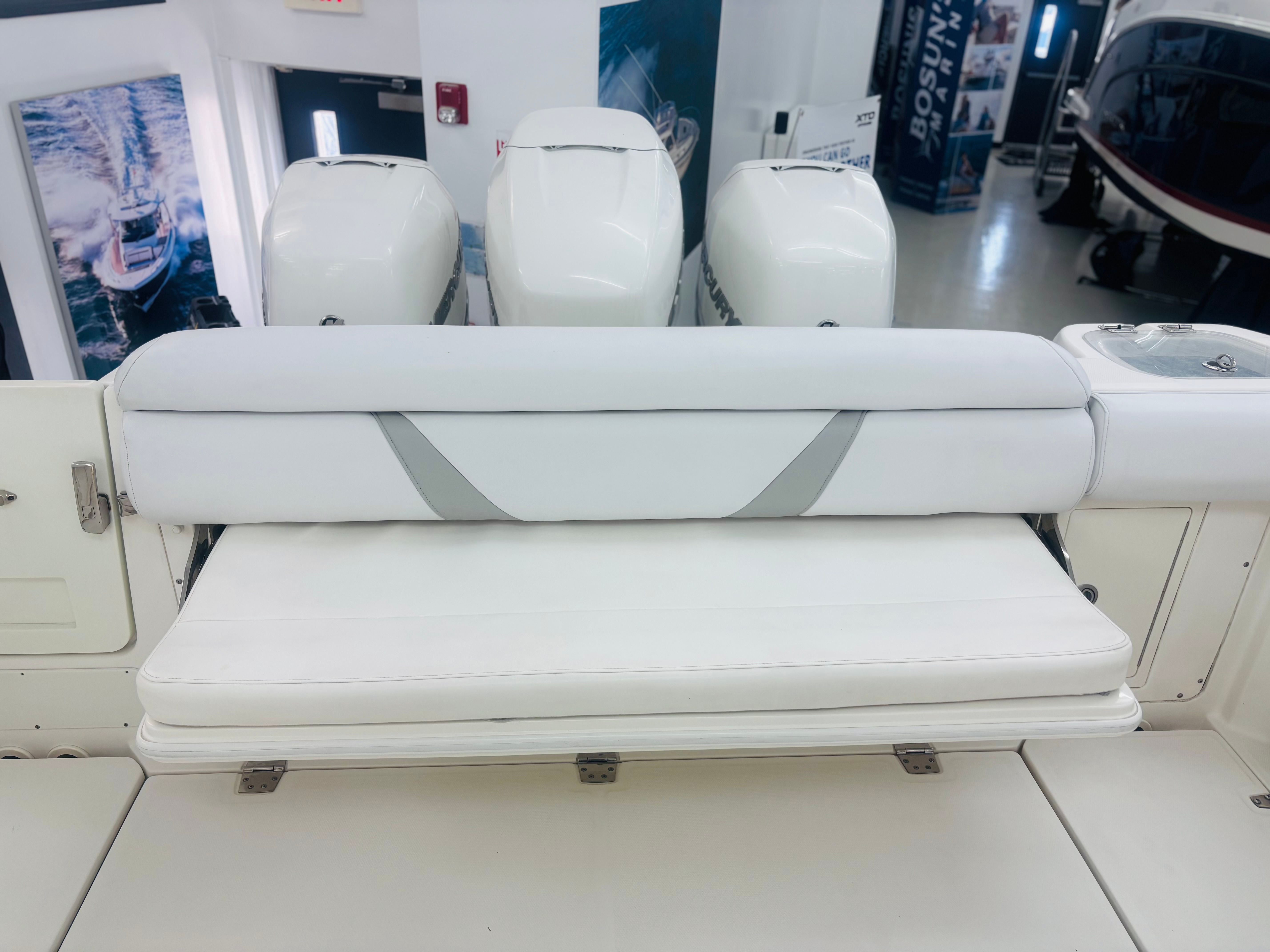 Powered By Triple White Mercury Verado 300’s w/Joystick * 1000 HOURS * Custom Gray Hull Color (Boat Was Used As Tender) * Dual Raymarine 15” GPS/Chart/Fish/Depth * Raymarine Open Array Radar * Raymarine VHF Radio * FLIR Night Vision Camera * Remote Control Spotlight * Fusion Stereo w/ JL Speakers * Diesel Generator – Fischer Panda 8kW; 20 Gal Fuel Tank * Console Air Conditioning, 8,000BTU * Enclosed Head Compartment w/ Sink, Shower Wand * Hardtop w/Rod Holders (6), LED Spreader Lights (1 Fore & 2 Aft) * Windshield Electric Vent * Radial Outriggers * S.S. Gunwale Rod Holders (6), Under-Gunwale Storage * Transom Rod Holders (5) * Insulated Bow Fish Boxes (2), Tackle Center * Cockpit Fish Boxes * Transom Livewell – 24 Gallon * Port Side Entry Door w/SS Ladder * Cockpit Refrigerators (2) * All New Upholstery 2024 * Trim Tabs w/ Indicators * LED Underwater Lights * Anchor Windlass, All Chain Rode 300’ * S.S. Steering Wheel w/Power Knob * Bow Towing Eye * Fresh Water Cockpit Shower, Fresh Water Washdown * USCG Safety Package * 30-Day Limited Power Train Warranty * Wash, Local Delivery & Orientation * @CS