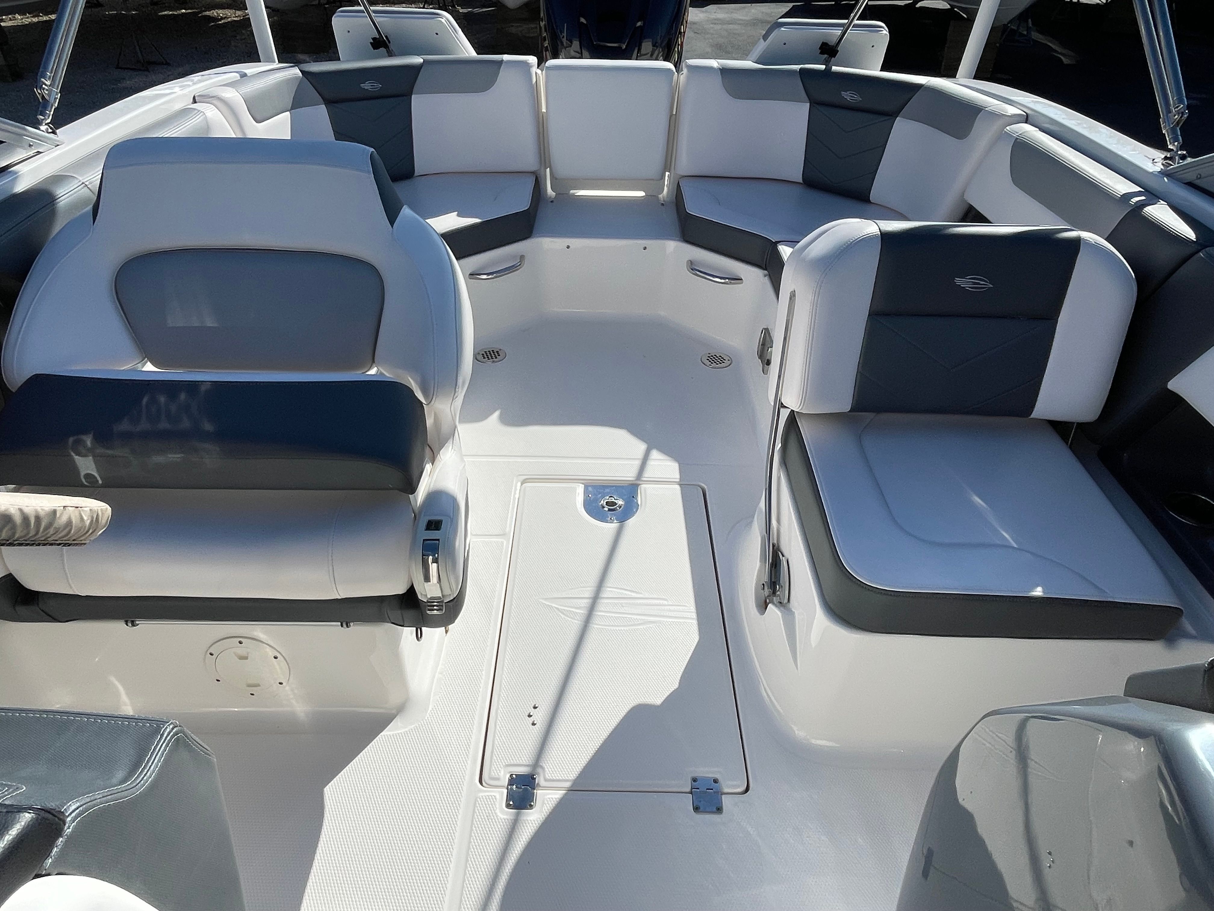 The 2021 Chaparral 250 SC Bowrider is a prime example of modern boating excellence. Measuring just over 24 feet in length, this boat offers ample space for passengers while maintaining a manageable size for easy handling and docking. Its contemporary styling and attention to detail make it a head-turner at any marina or waterfront. As a used Bowrider, it has been gently enjoyed, boasting only 74 engine hours—a testament to its well-maintained condition and readiness for many more adventures.