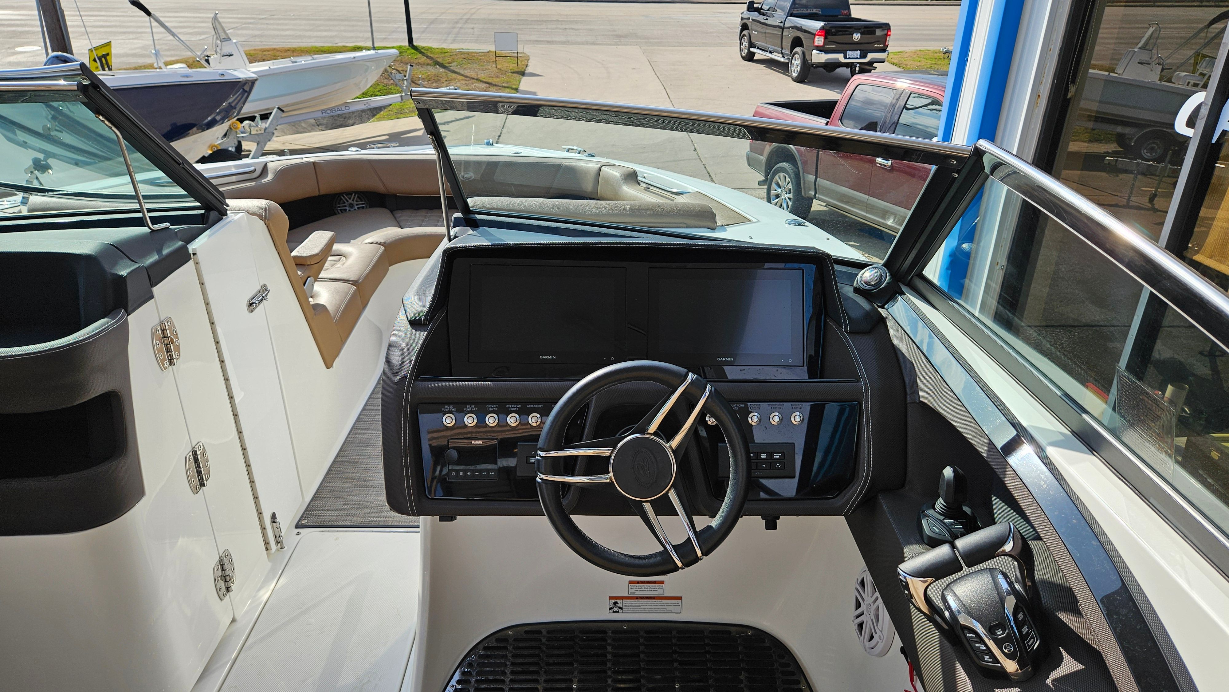 This Bowrider boat for sale is packed with premium features designed to enhance your boating experience. The hard top offers protection from the sun and elements, allowing you to enjoy your time on the water in comfort regardless of the weather. The windlass anchor system makes anchoring effortless, so you can quickly secure your boat and start enjoying your favorite spot. The aluminum triple axle trailer ensures easy transport and storage, giving you the flexibility to explore new waterways or conveniently store your boat when not in use. Snap-in carpet adds a touch of luxury and comfort underfoot, while JL Audio provides high-quality sound for your favorite tunes, creating the perfect atmosphere for any outing.