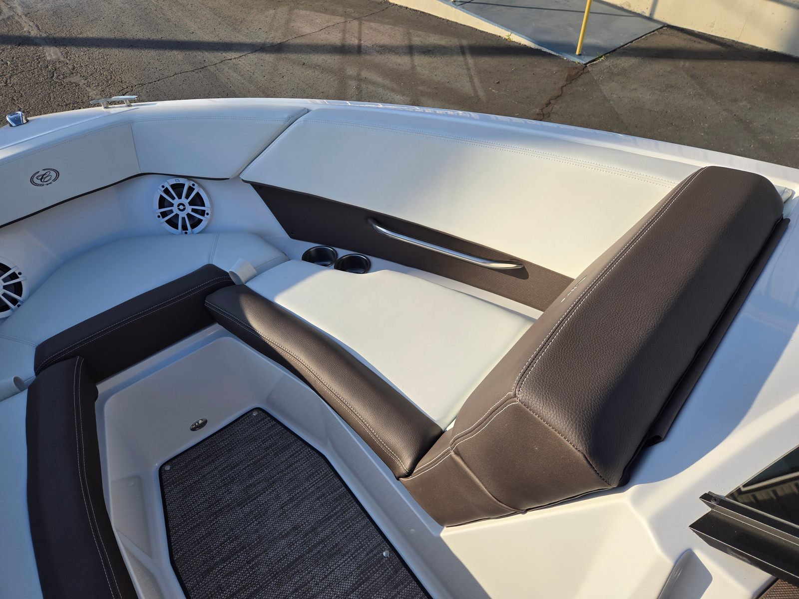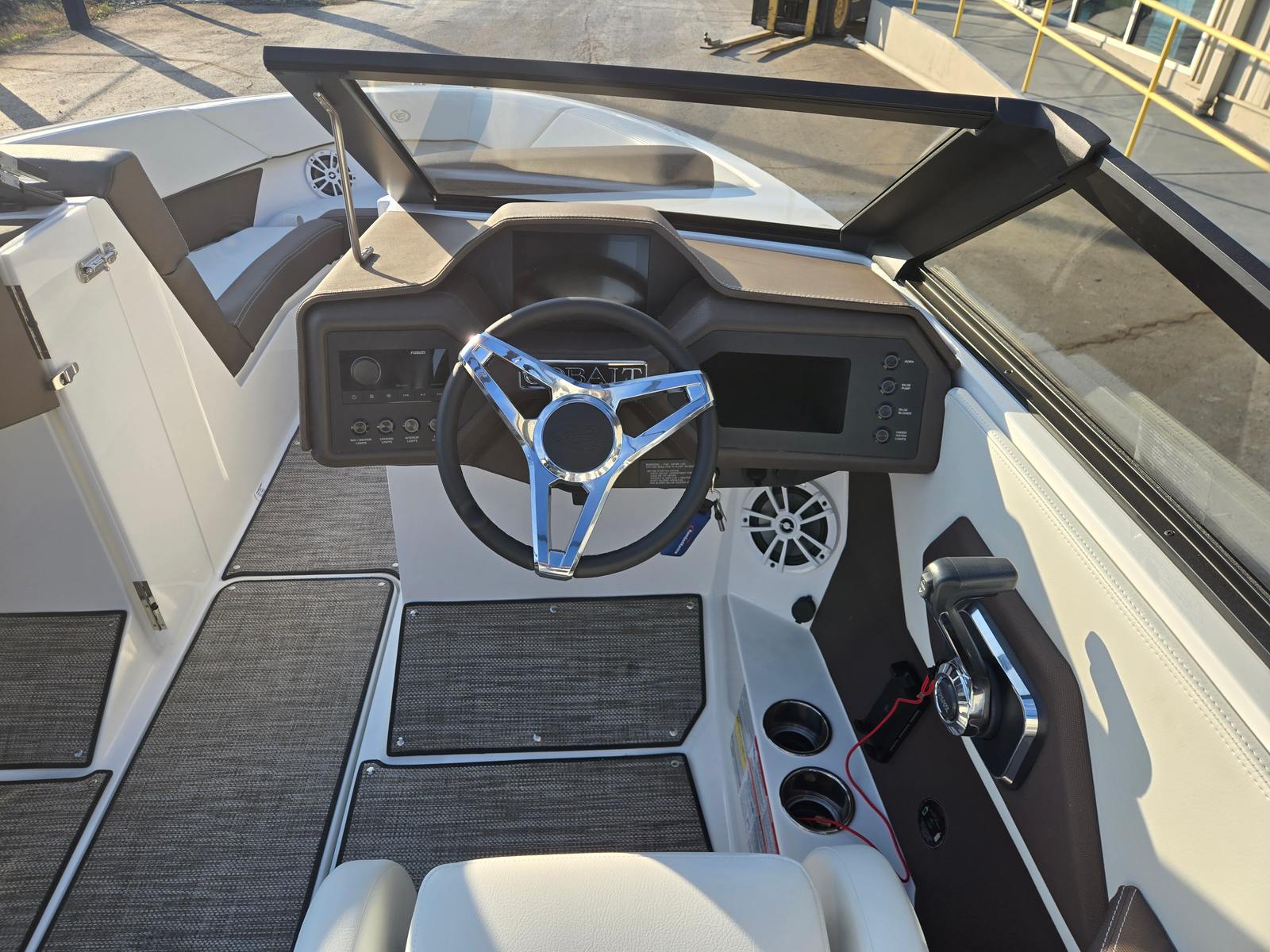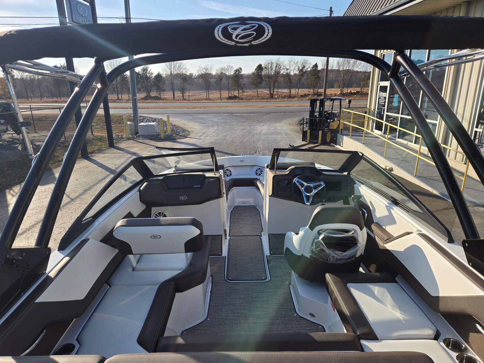 The Cobalt CS22 Bowrider is packed with premium features that elevate your boating experience. The AFT Facing Rumble Seat offers a comfortable spot to relax and soak up the sun, while the Cobalt Letters in Black Satin add a touch of elegance to the boat’s exterior. Fender Clips with Line make securing your boat at the dock quick and easy, and the Floor Covering in Seagrass Raw Umber provides a plush, stylish surface underfoot. The Mooring Cover with Arch protects your investment from the elements, and the Swim Platform with Flip-Down Step makes it simple to access the water for swimming or boarding. The Tower—Zenith Black with Bimini in Ebony—adds both functionality and flair, providing shade and a sleek silhouette that complements the boat’s modern design.