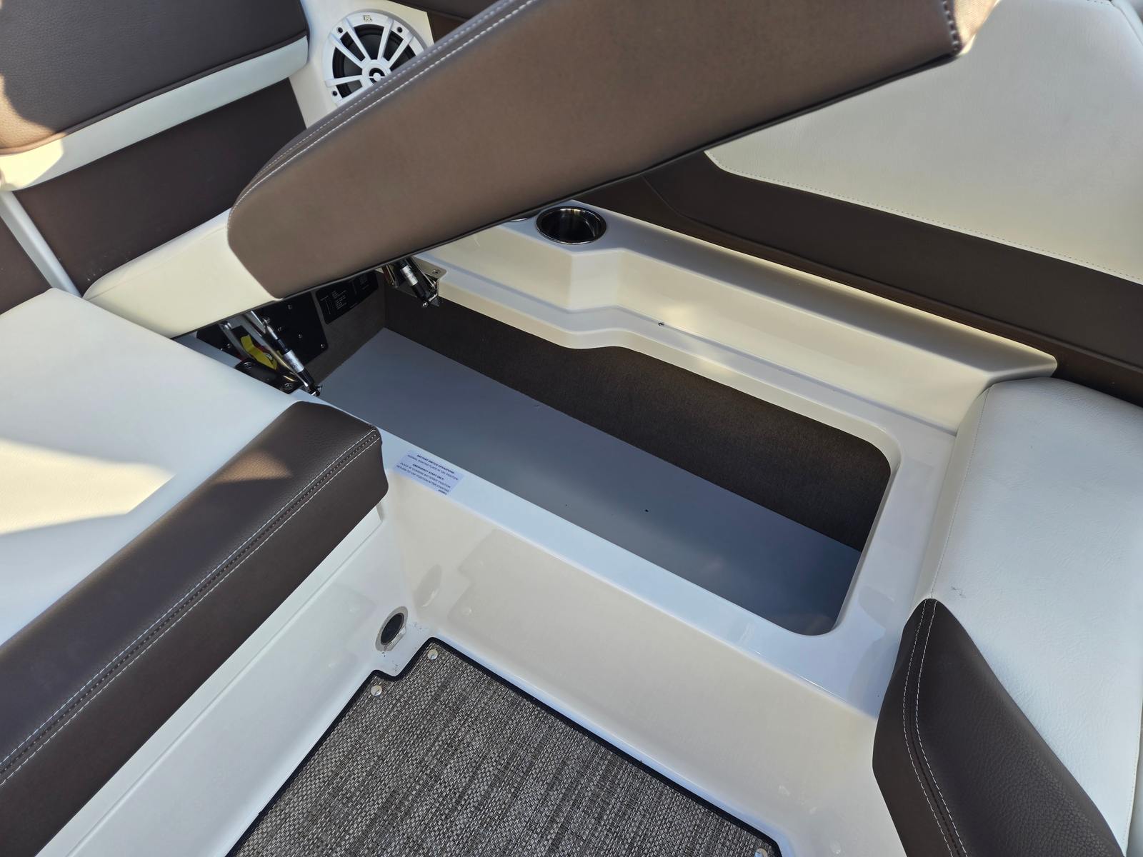 The Cobalt CS22 Bowrider is designed with practicality in mind, making ownership easy and stress-free. The fender clips with line simplify docking, allowing you to secure your boat quickly and confidently. The mooring cover with arch protects your boat from sun, rain, and debris, preserving its pristine condition year after year. The seagrass raw umber floor covering is both durable and attractive, standing up to heavy use while maintaining its luxurious feel. The swim platform with flip-down step enhances safety and convenience, making it easy for guests of all ages to enjoy the water. With its manageable 22.42-foot length, the CS22 is easy to trailer, store, and maneuver, whether you’re navigating busy marinas or exploring secluded coves.