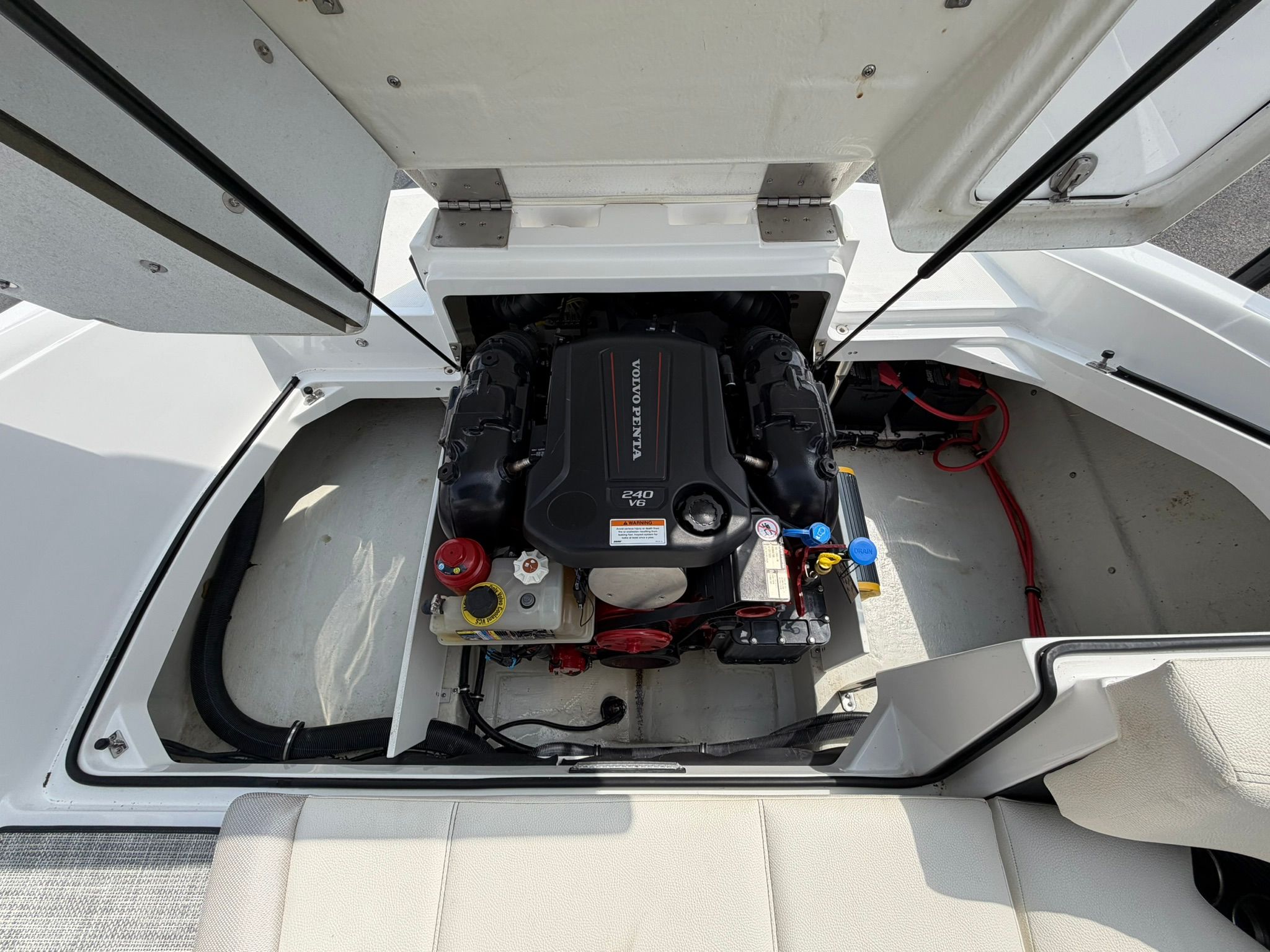 Powering the 2020 Cobalt CS22 is a robust single engine delivering an impressive 240 horsepower. This setup ensures smooth acceleration, responsive handling, and the kind of thrilling performance that makes every outing memorable. With only 72 engine hours, the engine is barely broken in, promising reliability and efficiency for many seasons to come. The CS22’s hull design is engineered for stability and agility, making it easy to navigate through choppy waters or cruise effortlessly across calm lakes. Whether you’re towing water toys, enjoying a leisurely ride, or seeking a bit of speed, this bowrider boat for sale delivers a dynamic and enjoyable boating experience.
