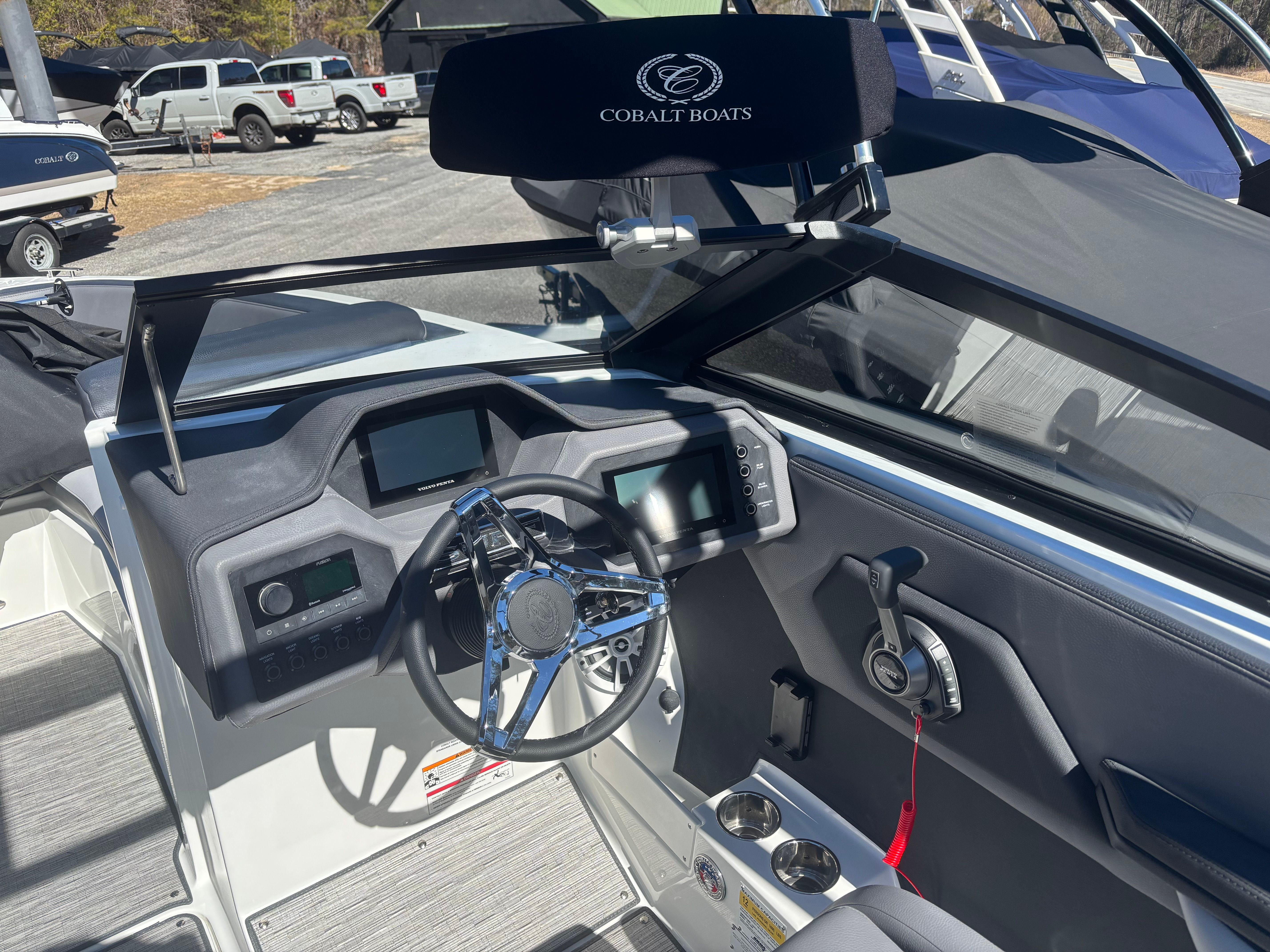 The 2025 Cobalt CS23 Surf is loaded with special features that enhance both its functionality and aesthetic appeal. The Surf Accent and Surf Hull Side provide a bold, modern look, while the Graphite Gray and FWD Rich Ebony finishes add a touch of sophistication. The AFT Facing Rumble Seat offers a unique seating arrangement, allowing passengers to relax and enjoy the view from the stern. The floor covering in Seagrass Silver Ash not only looks elegant but also provides comfort and durability underfoot.For added convenience, the boat comes equipped with four Fender Clips with Line, making docking and securing your vessel a breeze. The Manual Adjustable Seat ensures that both the captain and passengers can find their perfect position for comfort and visibility. The Glass Cockpit, featuring Dual Volvo 743 displays, offers intuitive control and real-time information, enhancing your confidence and enjoyment at the helm. The Standard Sound system delivers crisp, immersive audio, setting the perfect soundtrack for your adventures. Distinctive Cobalt Letters in Black Satin and a Mooring Cover with Arch complete the package, ensuring your boat looks great and stays protected when not in use.