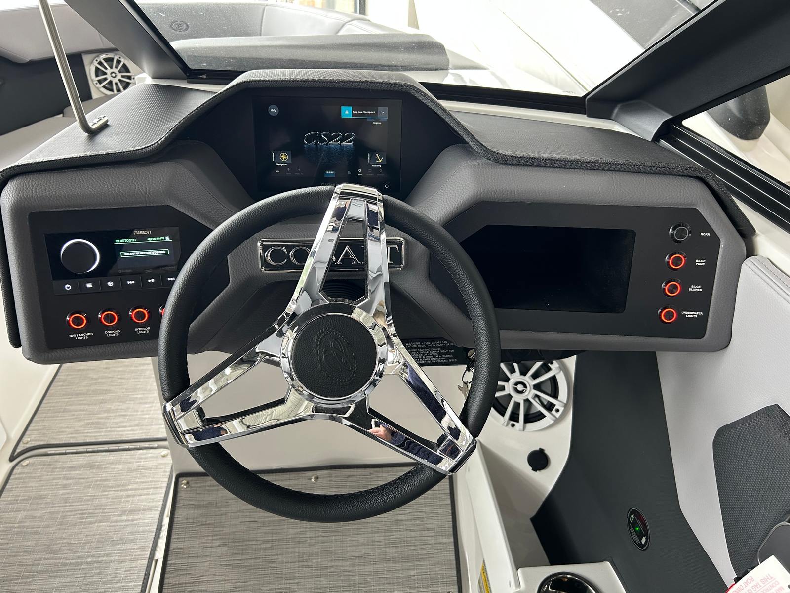 The 2026 Cobalt CS23 is loaded with features designed to elevate your time on the water. The aft-facing rumble seat offers a unique vantage point for relaxing or socializing, while the folding Zenith tower in white, paired with an ebony Bimini, provides both style and shade for sunny days. The interior is adorned with Silver Ash seagrass floor covering, creating a modern and inviting atmosphere that is both durable and easy to maintain.For those who appreciate smart technology, the CS23 comes equipped with a depth and water/air temperature gauge package, allowing you to monitor your environment with ease. Safety is also a top priority, as evidenced by the automatic fire extinguisher system. The manual adjustable seat ensures that every captain can find their perfect driving position, enhancing comfort during long days on the water. The standard sound system delivers crisp, clear audio, setting the perfect soundtrack for your adventures.