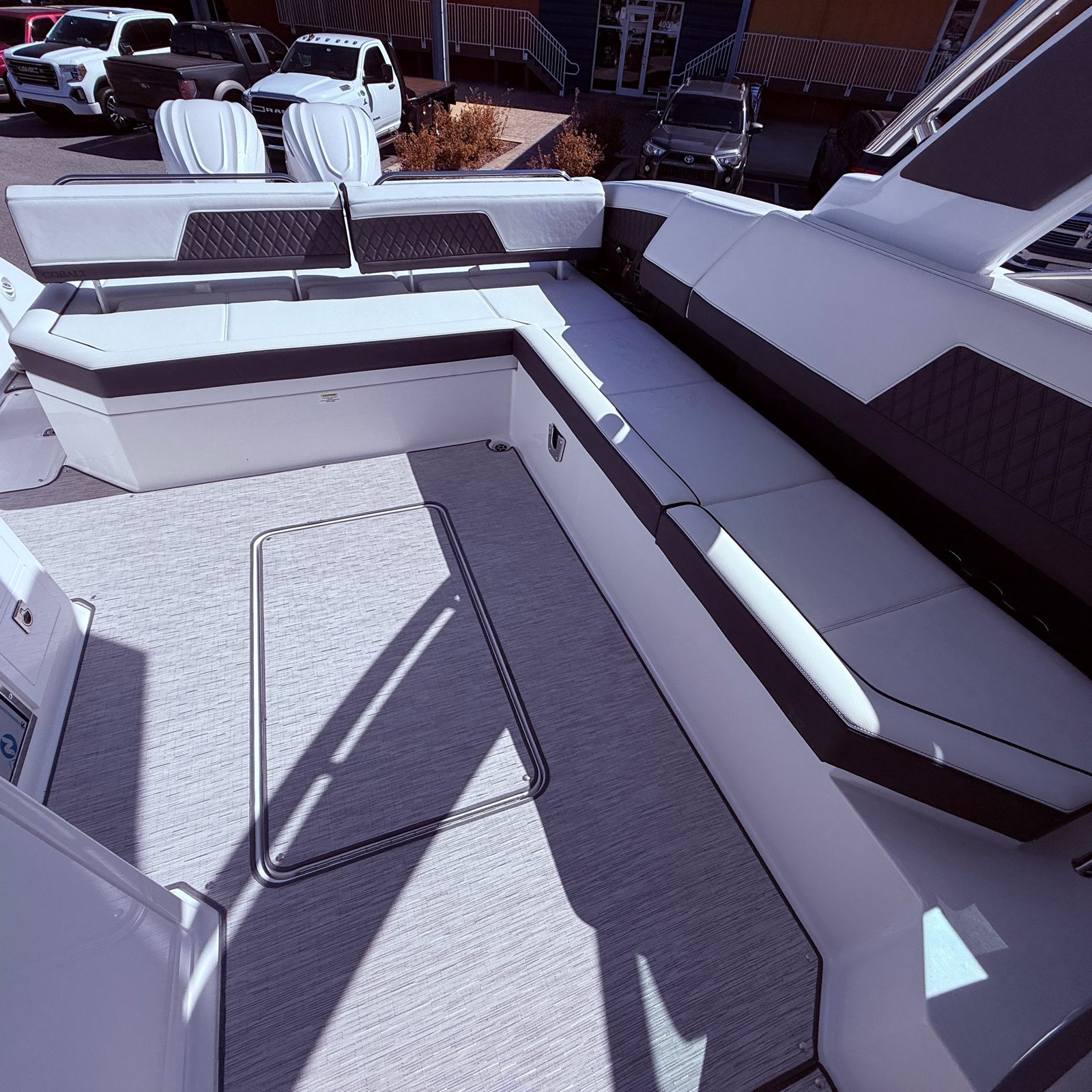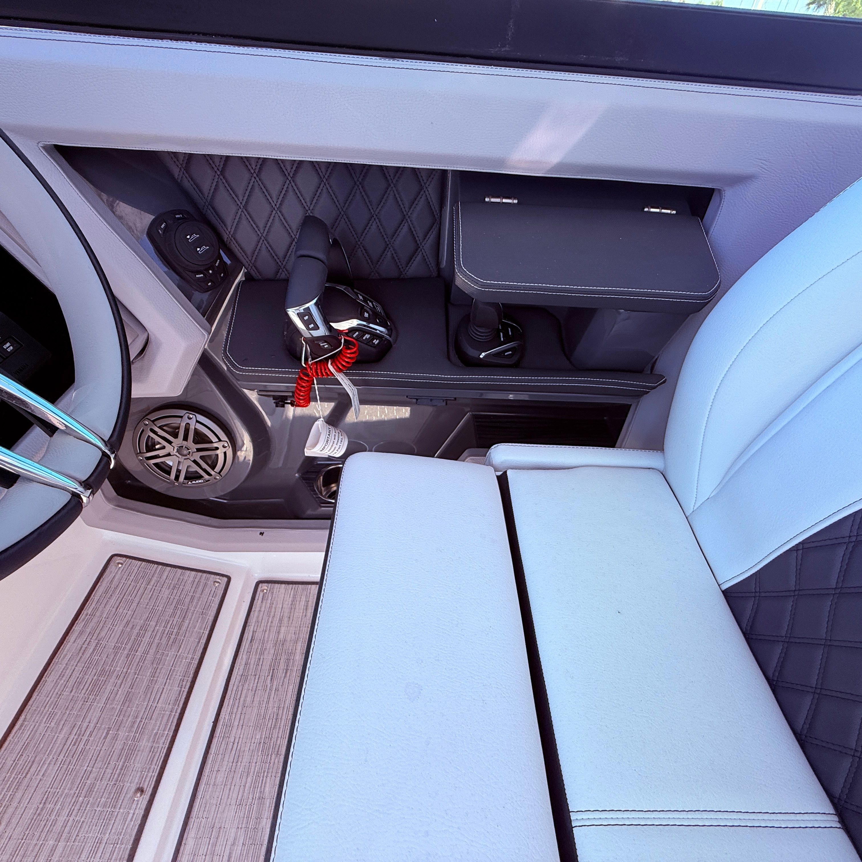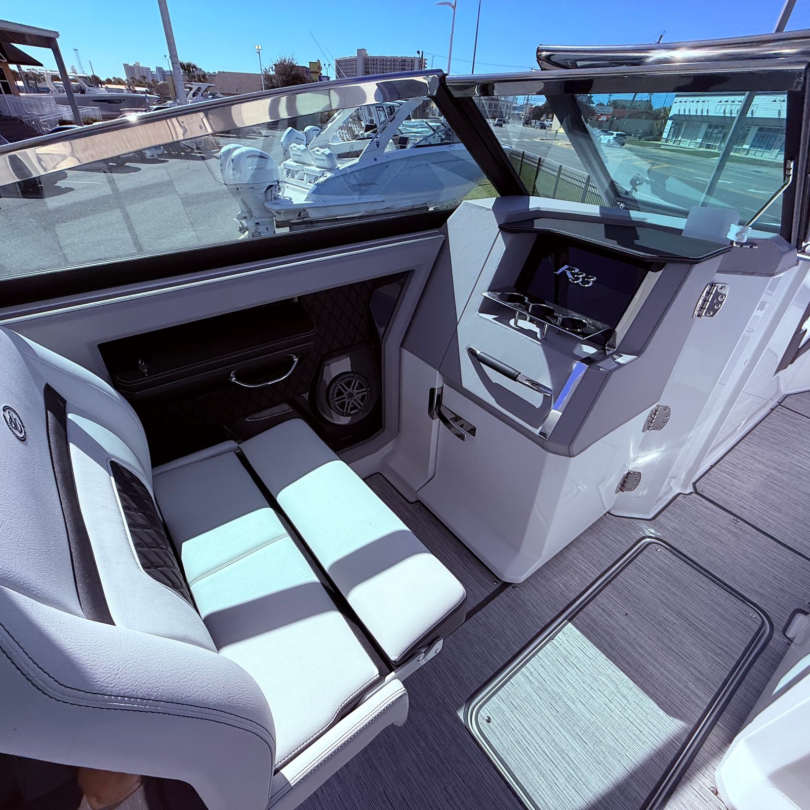 Beyond its stunning looks and impressive performance, the Cobalt R33 OB is engineered for practical, everyday enjoyment. The extended swim platform makes water access effortless, whether you are diving in for a swim or launching water toys. The electric adjustable seat ensures that every captain and passenger can find their ideal position, enhancing comfort on long journeys.Docking is simplified thanks to the responsive twin Yamaha engines, while the thoughtfully designed layout provides ample storage for gear, refreshments, and personal items. The hard top with aft shade sail not only adds to the boat’s visual appeal but also offers essential protection from the sun, making it easier to spend extended hours on the water without worry.