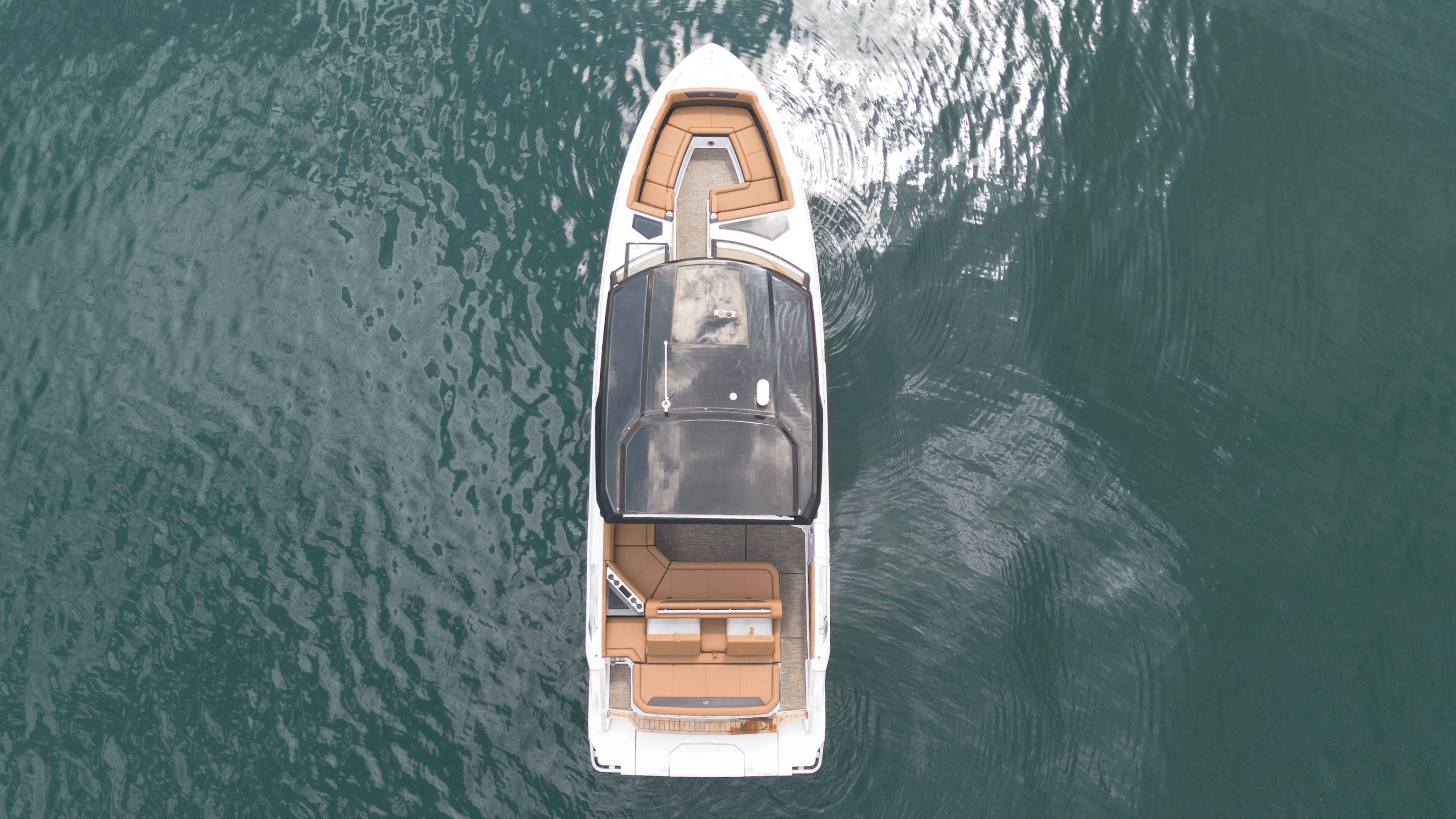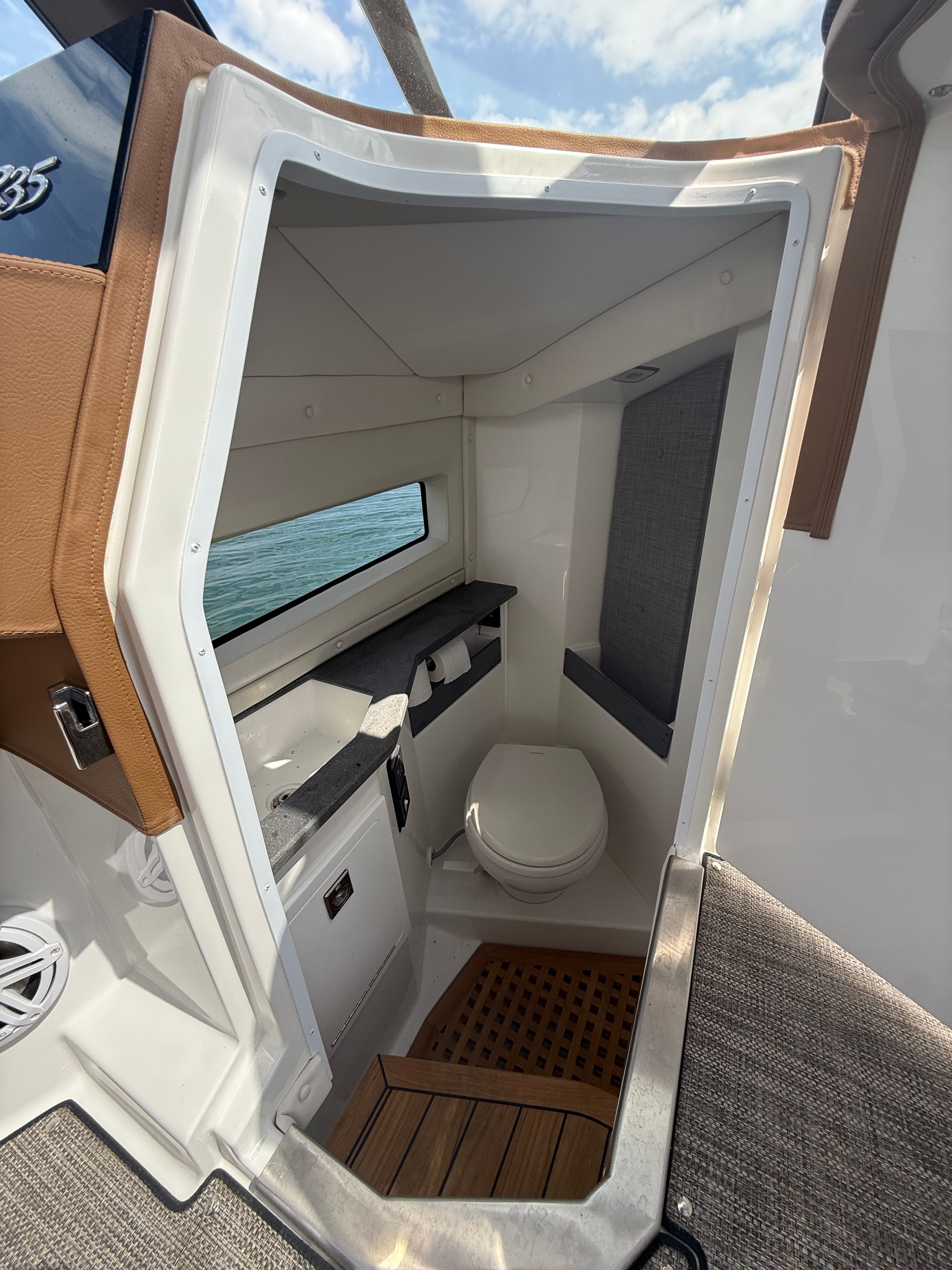 The layout is designed for versatility, with generous seating from bow to stern and plenty of room to move around without feeling crowded. The helm is clean and intuitive, while the cockpit and bow areas are set up for easy conversation, lounging, or dining. Storage is well thought out, keeping gear tucked away without sacrificing space.
