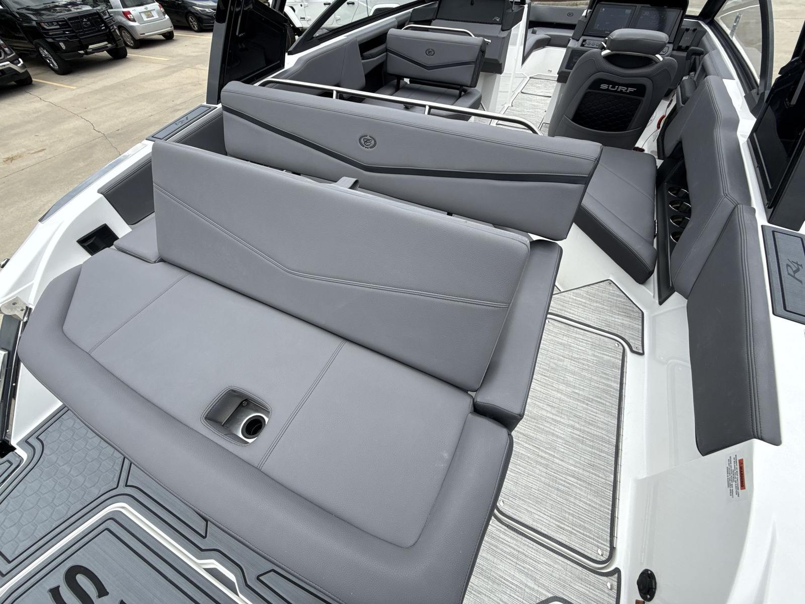 The Cobalt R4 Surf is designed with practicality in mind, making ownership a breeze. The efficient Volvo V8 engine delivers excellent fuel economy, reducing operating costs and extending your time on the water. The docking lights and fender clips simplify the process of mooring and securing your boat, while the battery maintainer/charger keeps your electrical systems in top condition.Ample storage throughout the boat ensures you have plenty of space for gear, supplies, and personal items, keeping the deck clutter-free and organized. The durable floor covering stands up to heavy use, making cleanup quick and easy after a day of fun. The intuitive glass cockpit and dual displays provide all the information you need at a glance, enhancing safety and convenience during every outing.