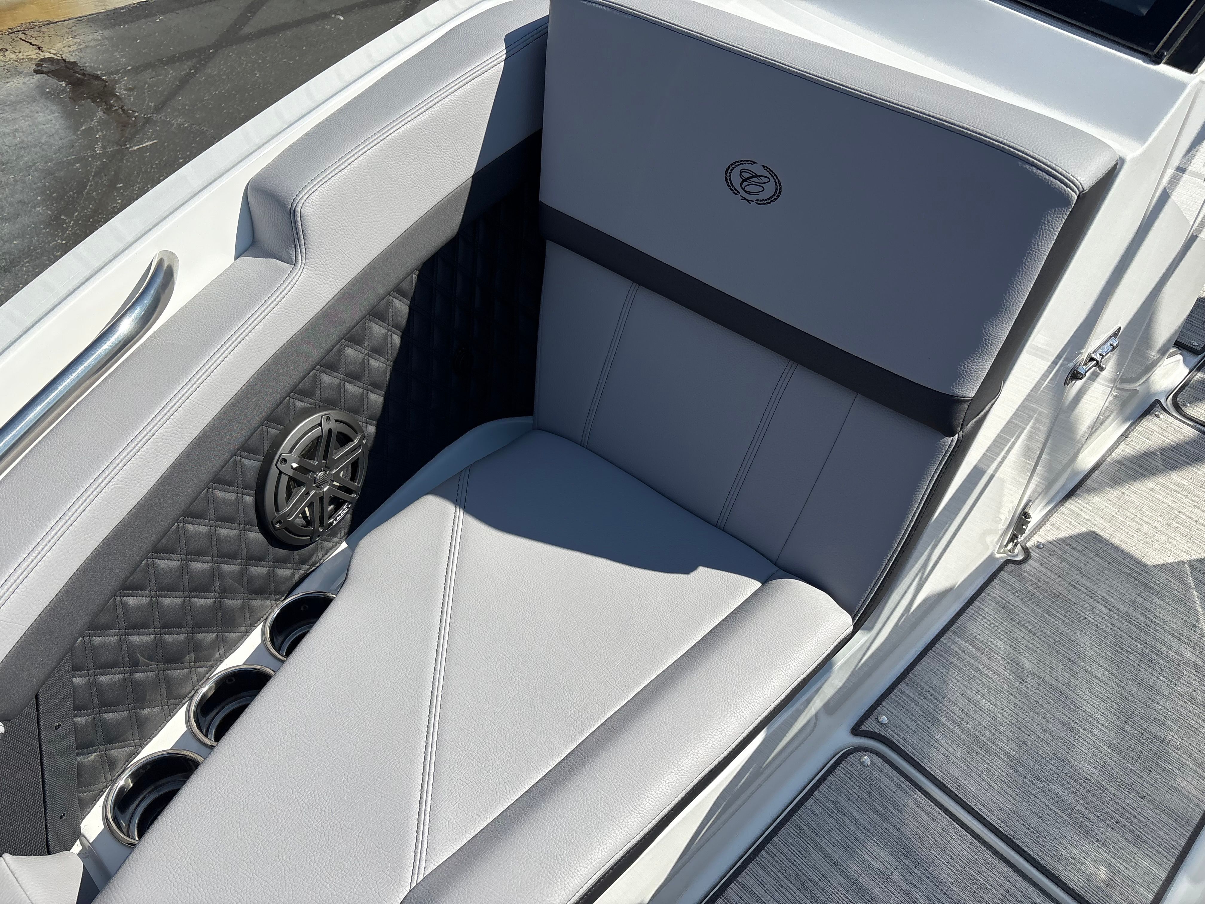 The Cobalt R4 is loaded with features that enhance both its functionality and its appeal. The Aft Facing Rumble Seat offers a unique and comfortable spot to relax and take in the scenery, while the Arch E2 Black Folding with Bimini in Ebony provides shade and style, making it easy to enjoy sunny days without worry. The boat’s Battery Maintainer/Charger ensures your power systems are always ready for action, while the Cobalt Letters in Black Satin add a touch of sophistication to the boat’s branding. Stainless Steel Docking Lights not only enhance the R4’s appearance but also provide practical illumination for evening arrivals and departures. Every detail, from the color accents to the premium materials, reflects Cobalt’s dedication to quality and innovation.
