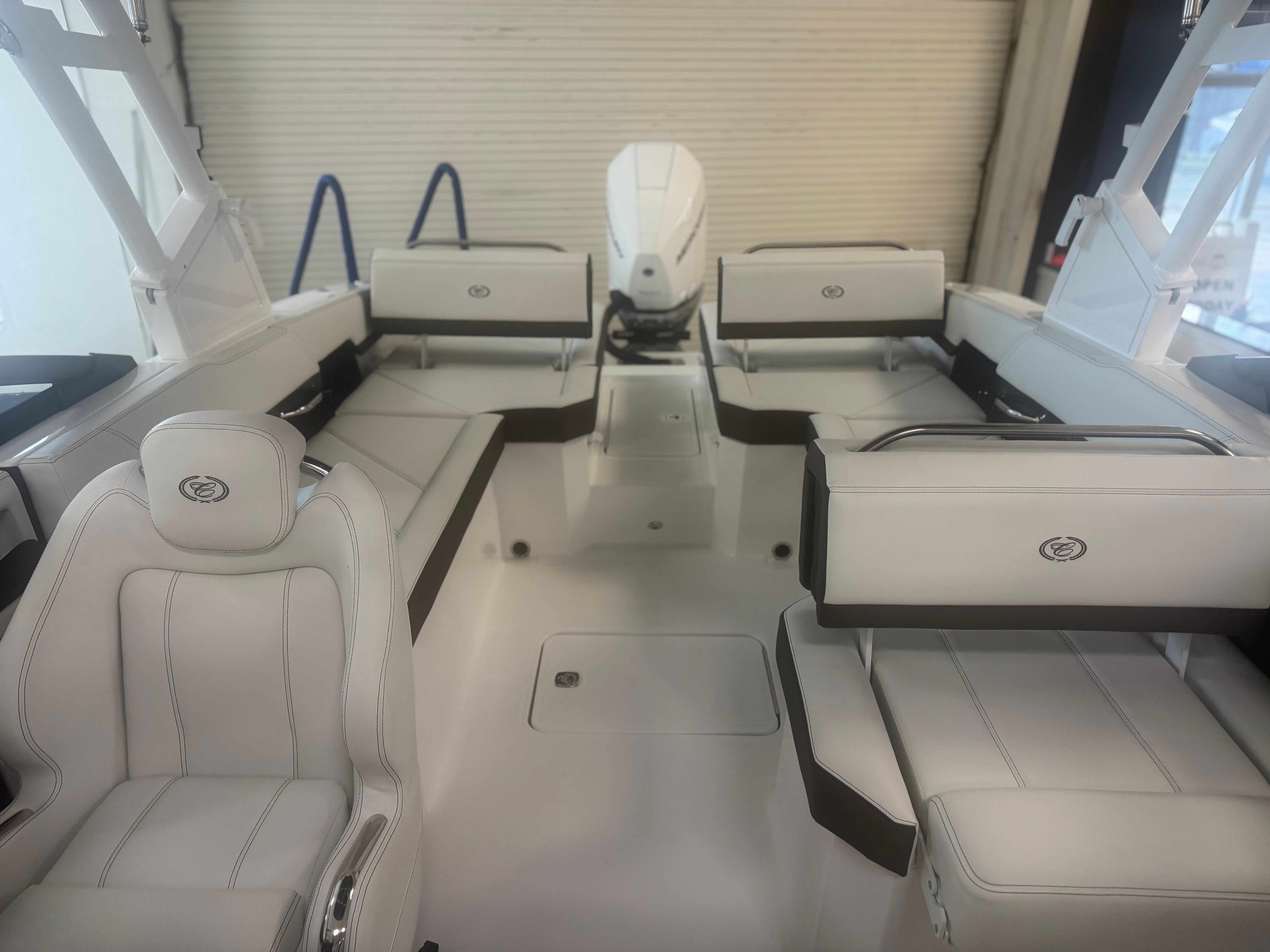 Powering the Cobalt R6 OB is a robust single engine delivering an impressive 300 horsepower. This Bowrider is engineered for exhilarating performance, offering smooth acceleration, responsive handling, and reliable power for all your aquatic adventures. The outboard configuration not only enhances maneuverability but also maximizes interior space, making it ideal for both spirited rides and leisurely cruises. Whether you’re towing water toys, exploring new waters, or simply enjoying the thrill of speed, the R6 OB’s engine ensures a dynamic and enjoyable boating experience.