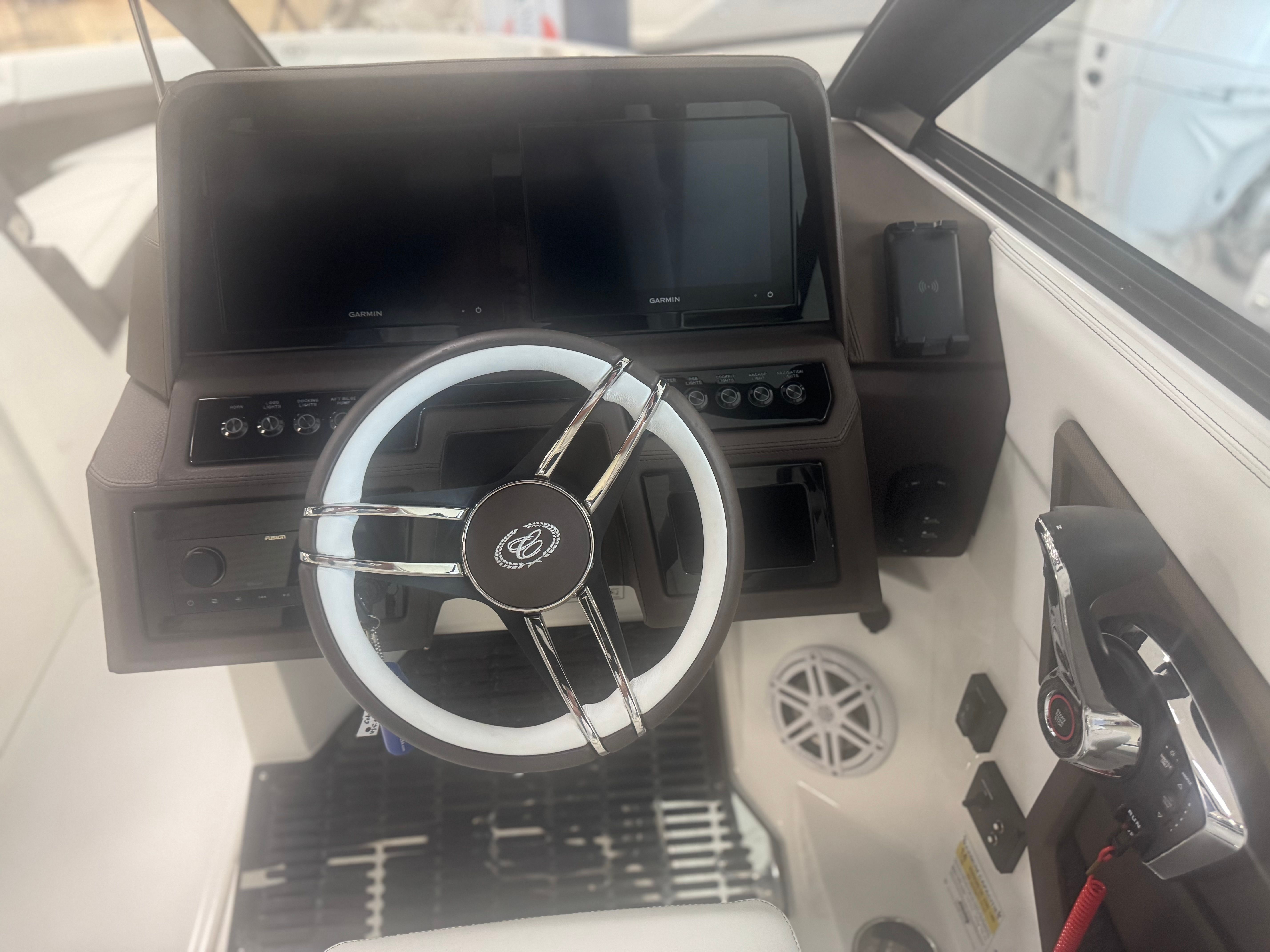 Step aboard the Cobalt R6 OB and discover a host of premium features designed to elevate your time on the water. The Battery Maintainer/Charger keeps your boat ready for action, while the Boarding Ladder, Port, ensures easy access for swimmers and guests. Protect your investment and maintain a pristine look with the Bow Tonneau Cover and Cockpit Tonneau Cover, both in elegant Ebony. Entertain in style with the Dinette Table featuring a Teak Accent, perfect for sharing meals or drinks with friends and family.The Cockpit Reception area is thoughtfully designed for comfort and socializing, while the Docking Lights in Stainless Steel provide enhanced visibility and safety during evening outings. The Electric Arch, E2, White (Folding) with Bimini offers shade and convenience, allowing you to adapt to changing weather conditions with ease. Navigate with confidence using the Glass Cockpit equipped with Dual Garmin 8610 displays, ensuring you have all the information you need at your fingertips. Enjoy the convenience of a Head with Electric Porcelain Toilet, adding a touch of luxury and practicality to your boating experience.