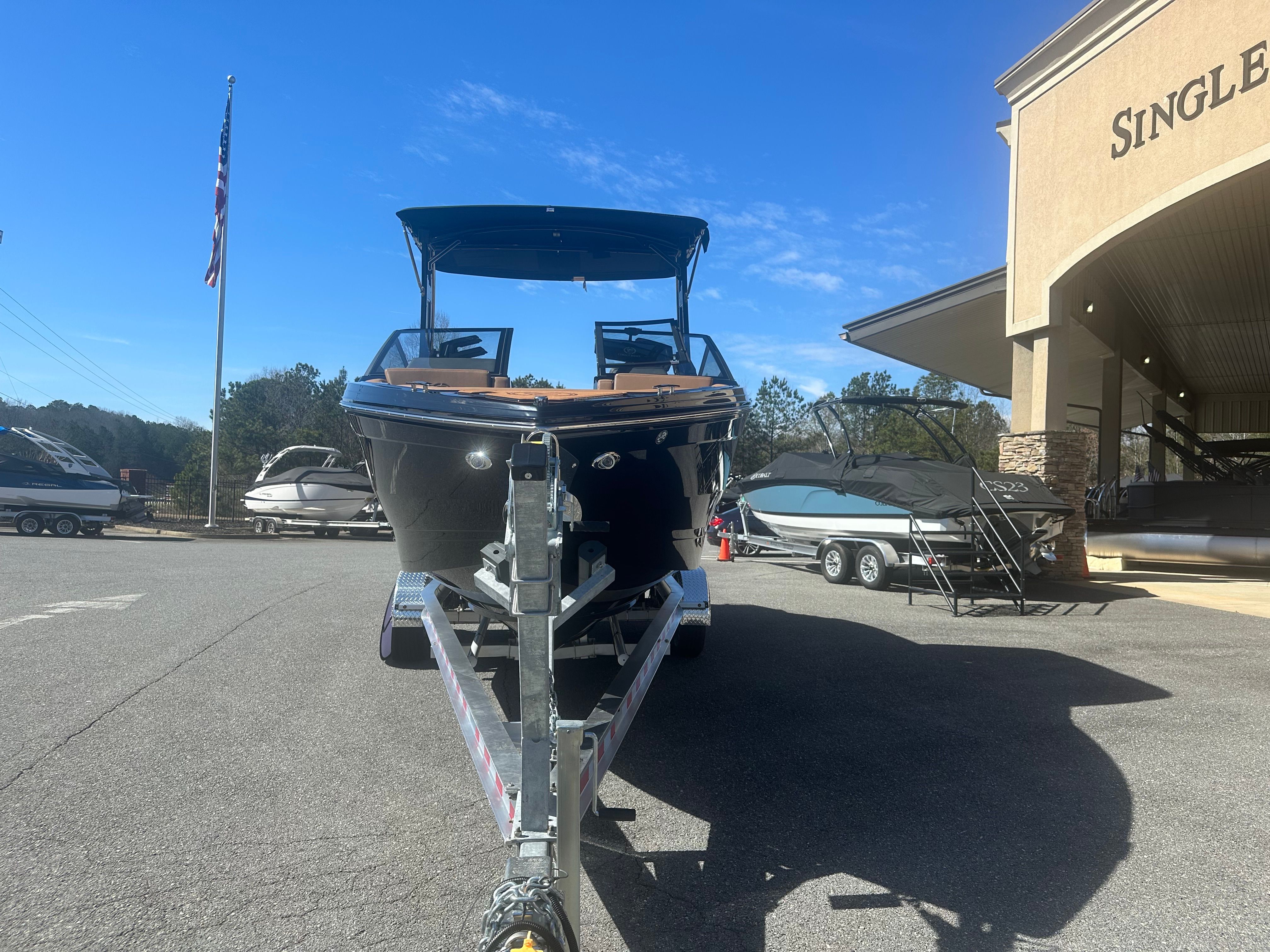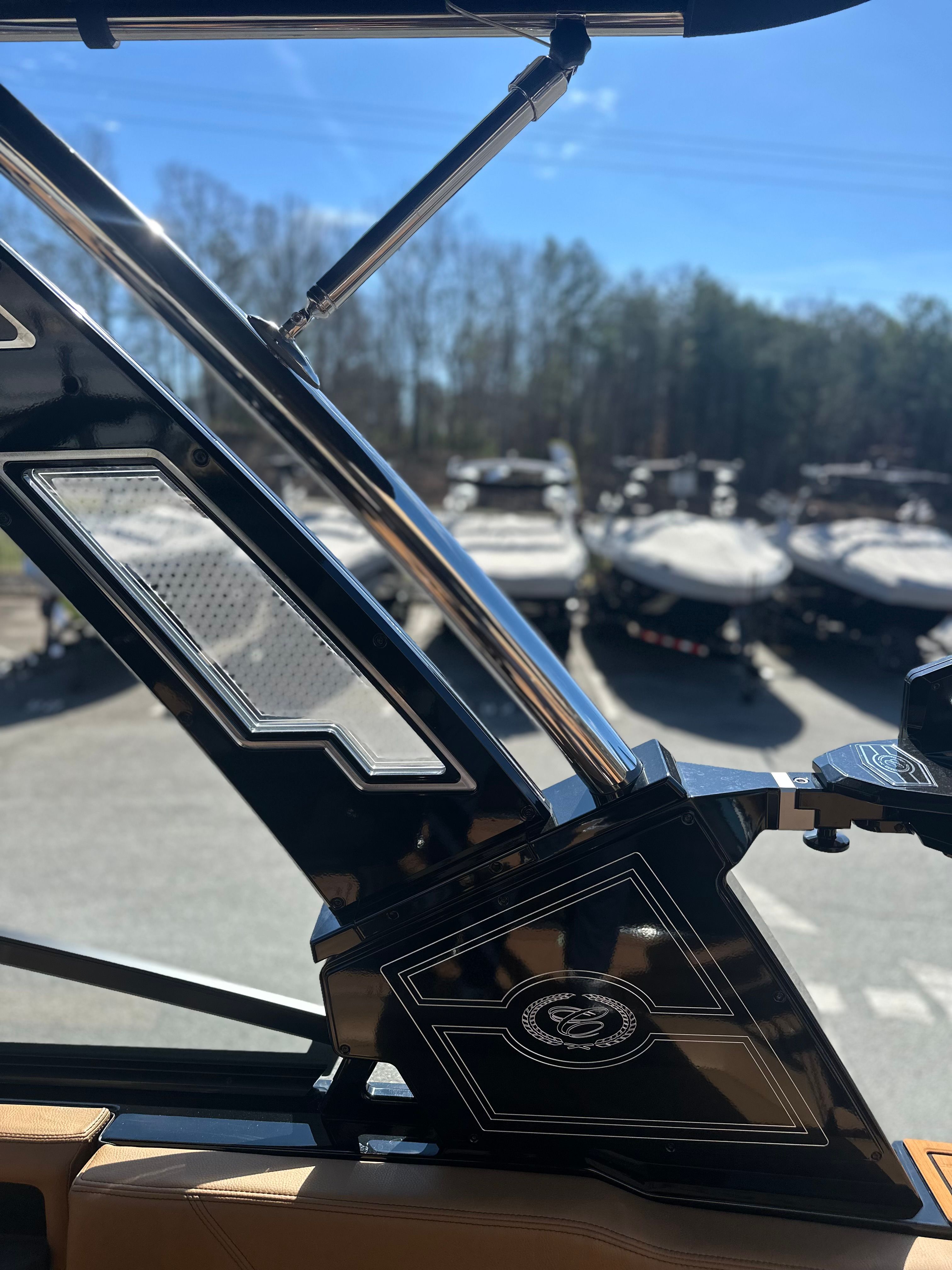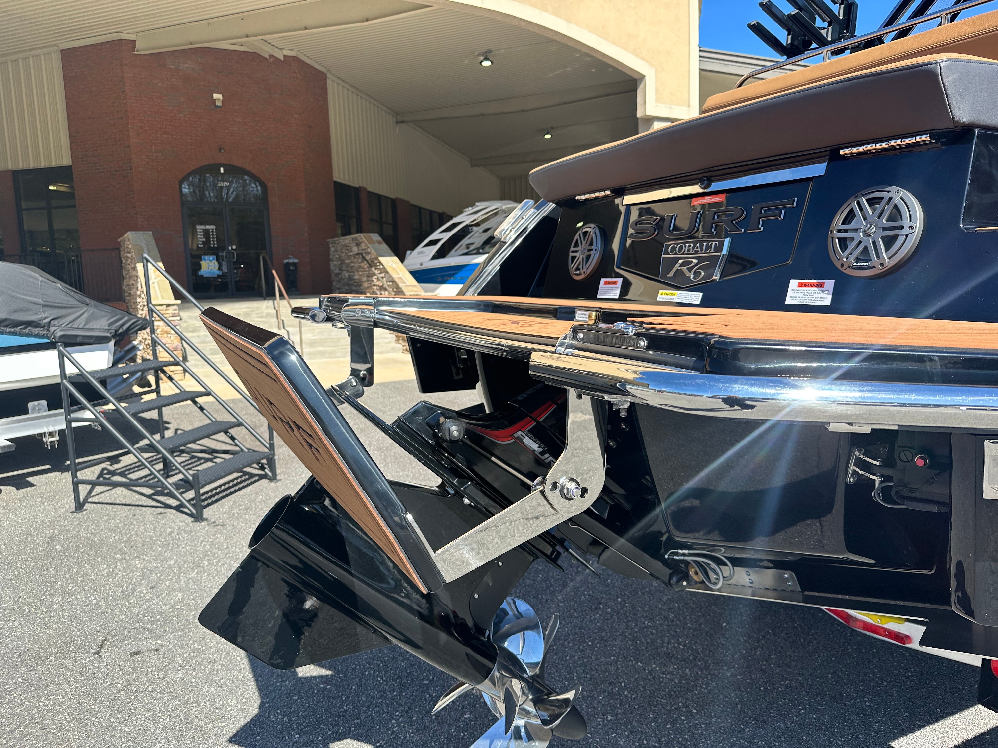 The 2026 Cobalt R6 Surf is packed with premium features that elevate your boating experience. The interior showcases a sophisticated blend of Caramel, Carbon, and Ebony, creating a warm and inviting atmosphere. The Cobalt Letters in Black Satin add a touch of elegance, while the full colored deck in Rich Ebony ensures a striking presence on the water.For added convenience and safety, the R6 Surf includes a rear facing camera, making docking and maneuvering easier than ever. The stainless steel docking lights provide enhanced visibility during evening outings, and the battery maintainer/charger (110V) keeps your boat ready for adventure at all times.The electric arch, Prisma - Black (folding) with Ebony Bimini, offers both style and functionality, allowing you to adjust your shade and enjoy the sun or shelter as you please. The flagpole with flag adds a classic touch, perfect for showcasing your pride on the water.Technology enthusiasts will appreciate the glass cockpit, featuring dual Garmin 8610 displays for seamless navigation and control. These advanced systems put all the information you need at your fingertips, ensuring a safe and enjoyable journey every time.