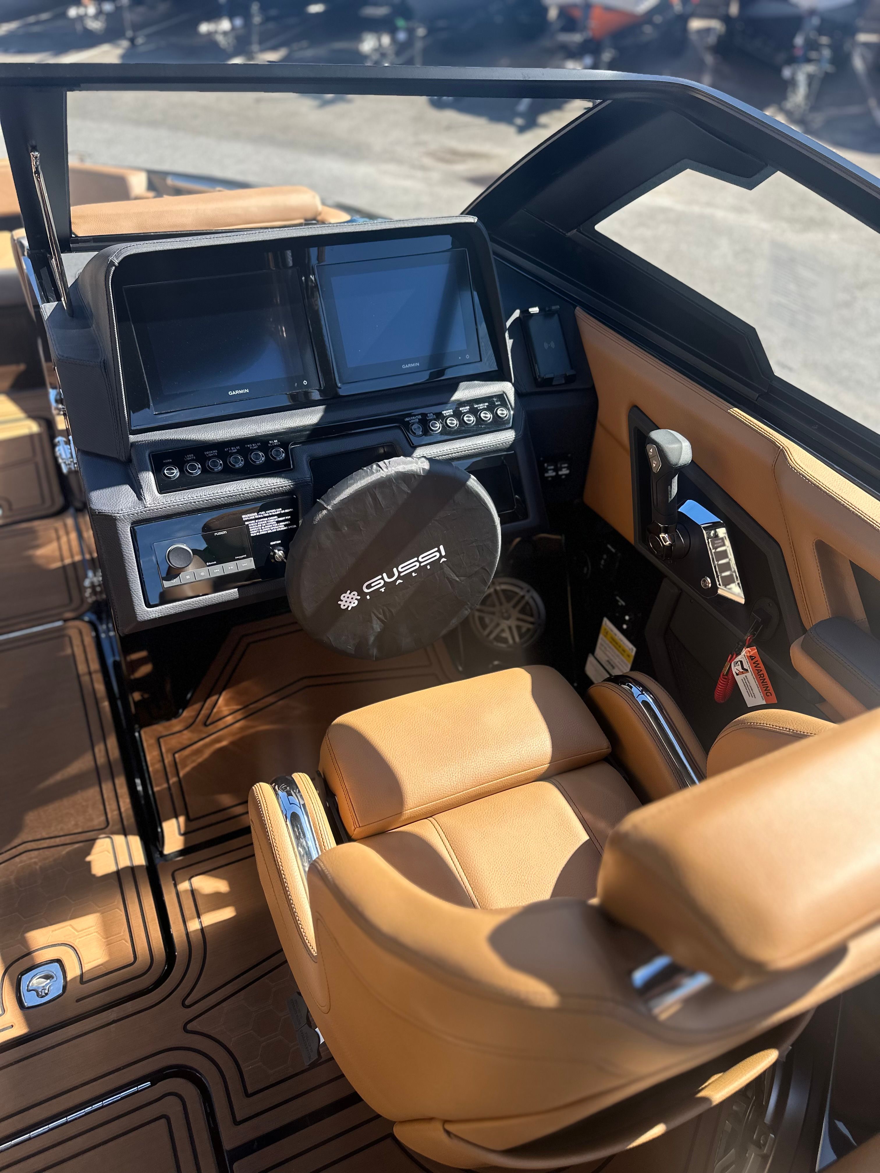 Practicality meets luxury in the Cobalt R6 Surf. The rear facing camera simplifies docking and tight maneuvers, making it easy for boaters of all experience levels to handle the vessel with confidence. The battery maintainer/charger ensures your boat is always ready to go, minimizing downtime and maximizing your time on the water.The folding electric arch and Ebony Bimini provide flexible shade options, while the stainless steel docking lights enhance safety during low-light conditions. The dual Garmin 8610 displays offer intuitive navigation and system monitoring, giving you peace of mind wherever your adventures take you.Storage is thoughtfully integrated throughout the boat, allowing you to stow gear, snacks, and personal items securely. The ergonomic layout makes it easy to access everything you need, so you can focus on enjoying your time on the water.