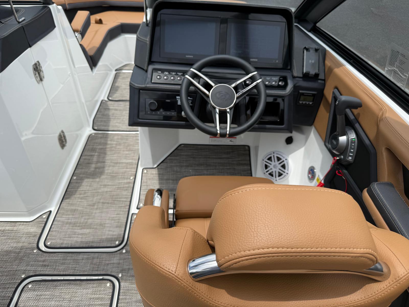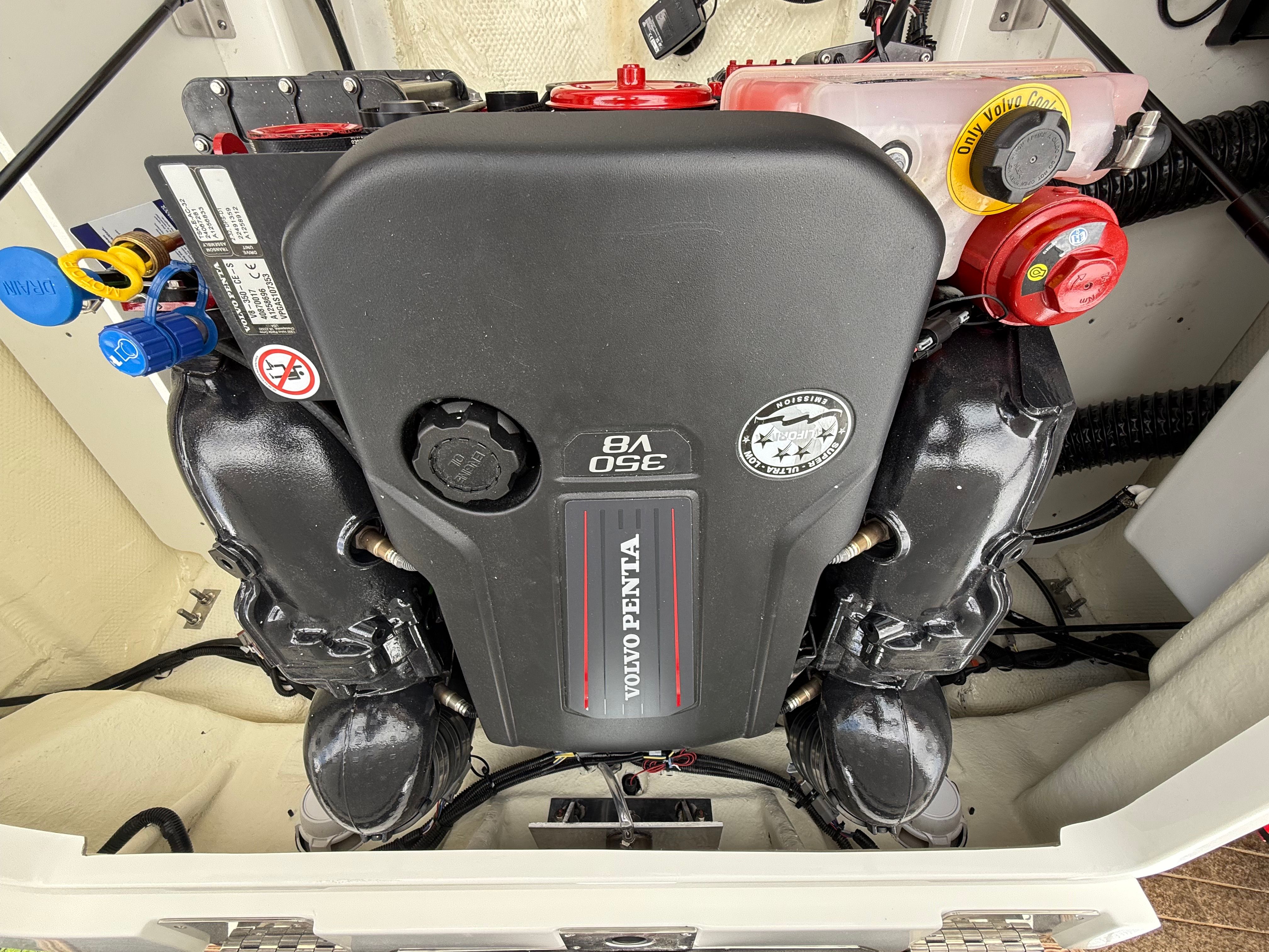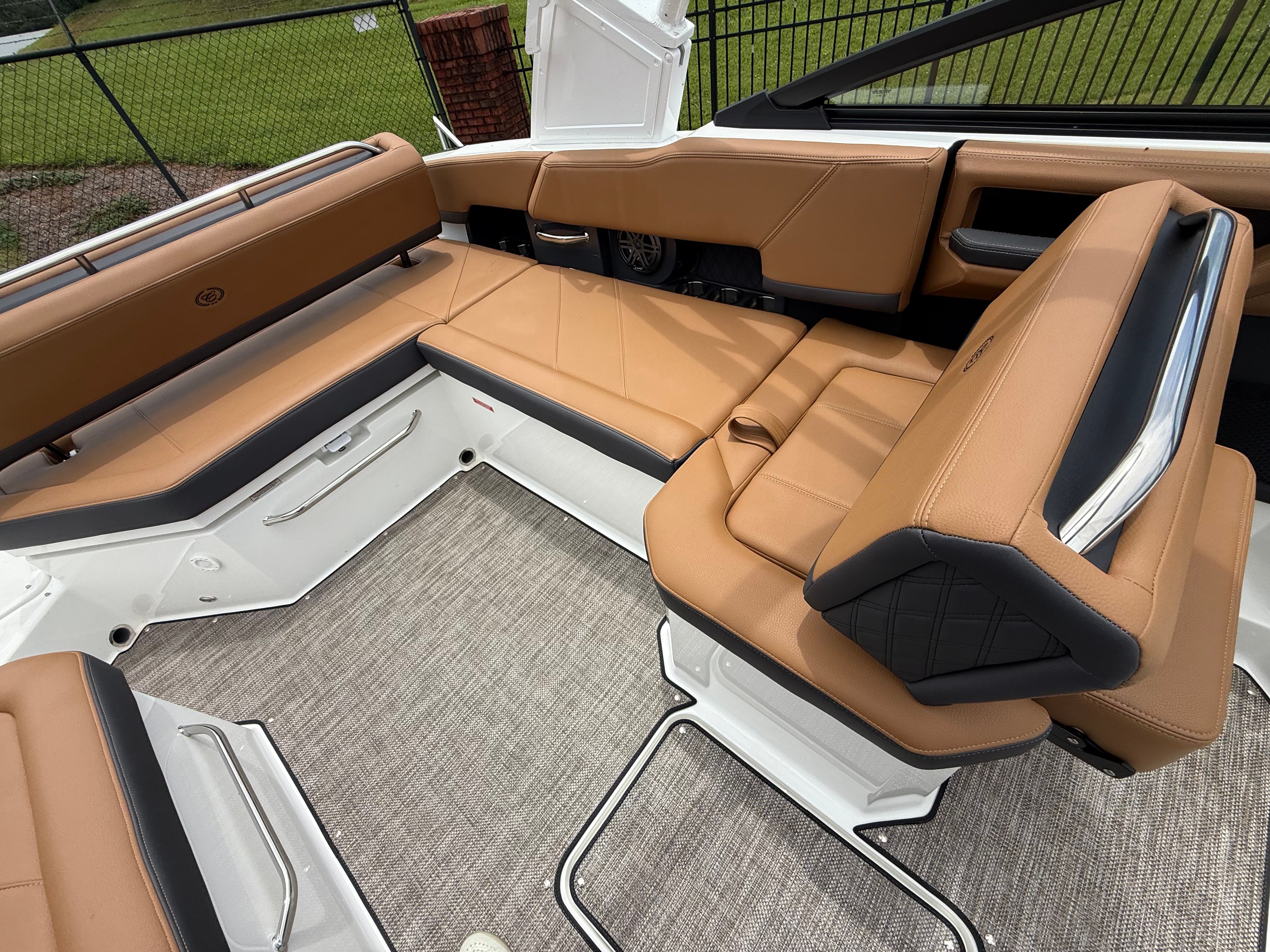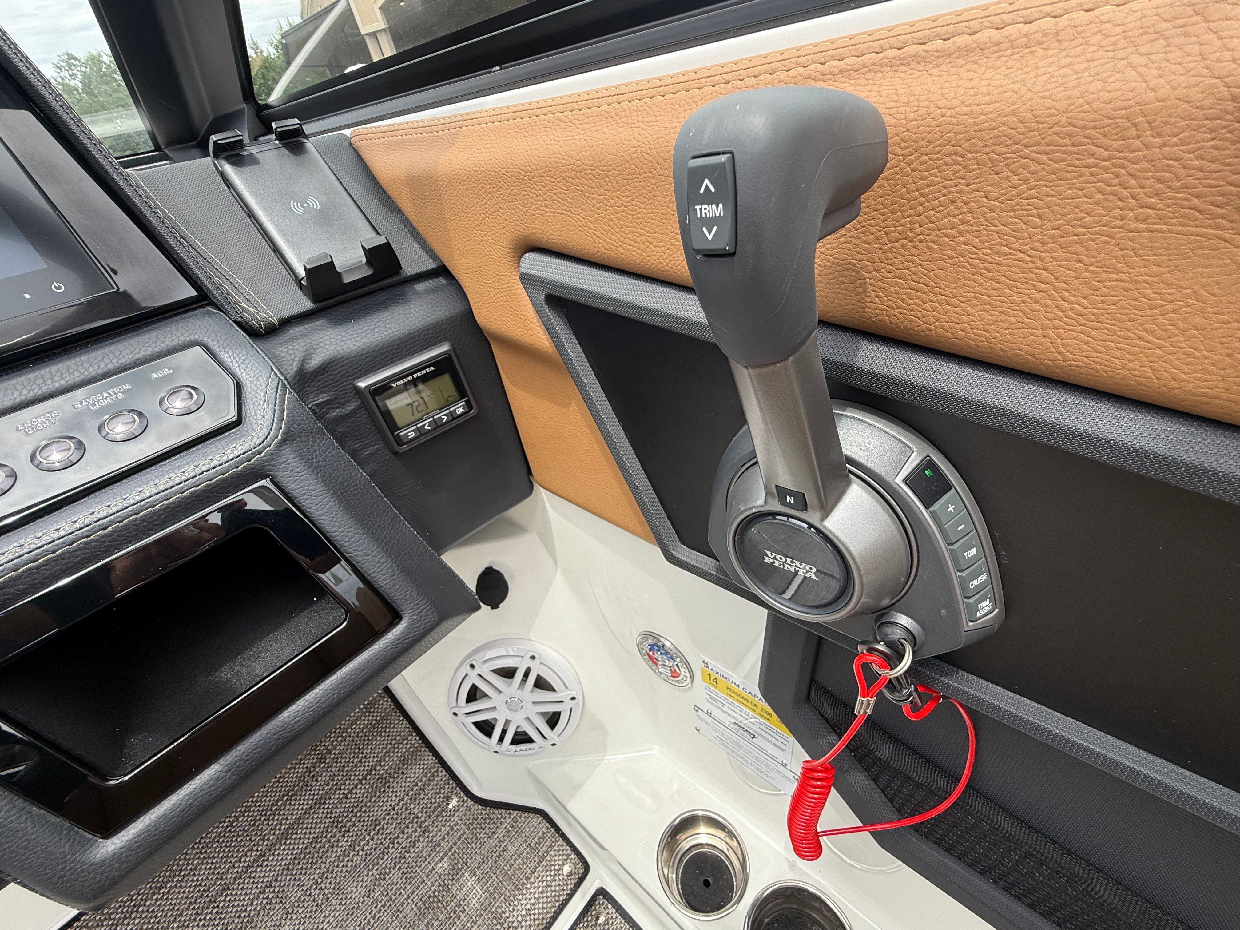 Step aboard the Cobalt R6 and discover a world of premium features designed to enhance your boating experience. The mooring cover protects your investment from the elements, while the folding arch adds both style and functionality, making it easy to navigate under bridges or store the boat in tight spaces. The swim platform with flip-down step provides effortless access to the water, perfect for swimming, diving, or simply relaxing at anchor.Inside, the R6 boasts a luxurious Caramel and Carbon interior, complemented by a black leather and stainless steel steering wheel for a touch of elegance. LED interior accent lighting in red, green, and blue creates a vibrant atmosphere for evening cruises, while the premium sound system with transom speakers and remote ensures your favorite music is always within reach. The battery maintainer/charger and battery switch with ACR-dual offer peace of mind, keeping your electrical systems running smoothly throughout your adventures.