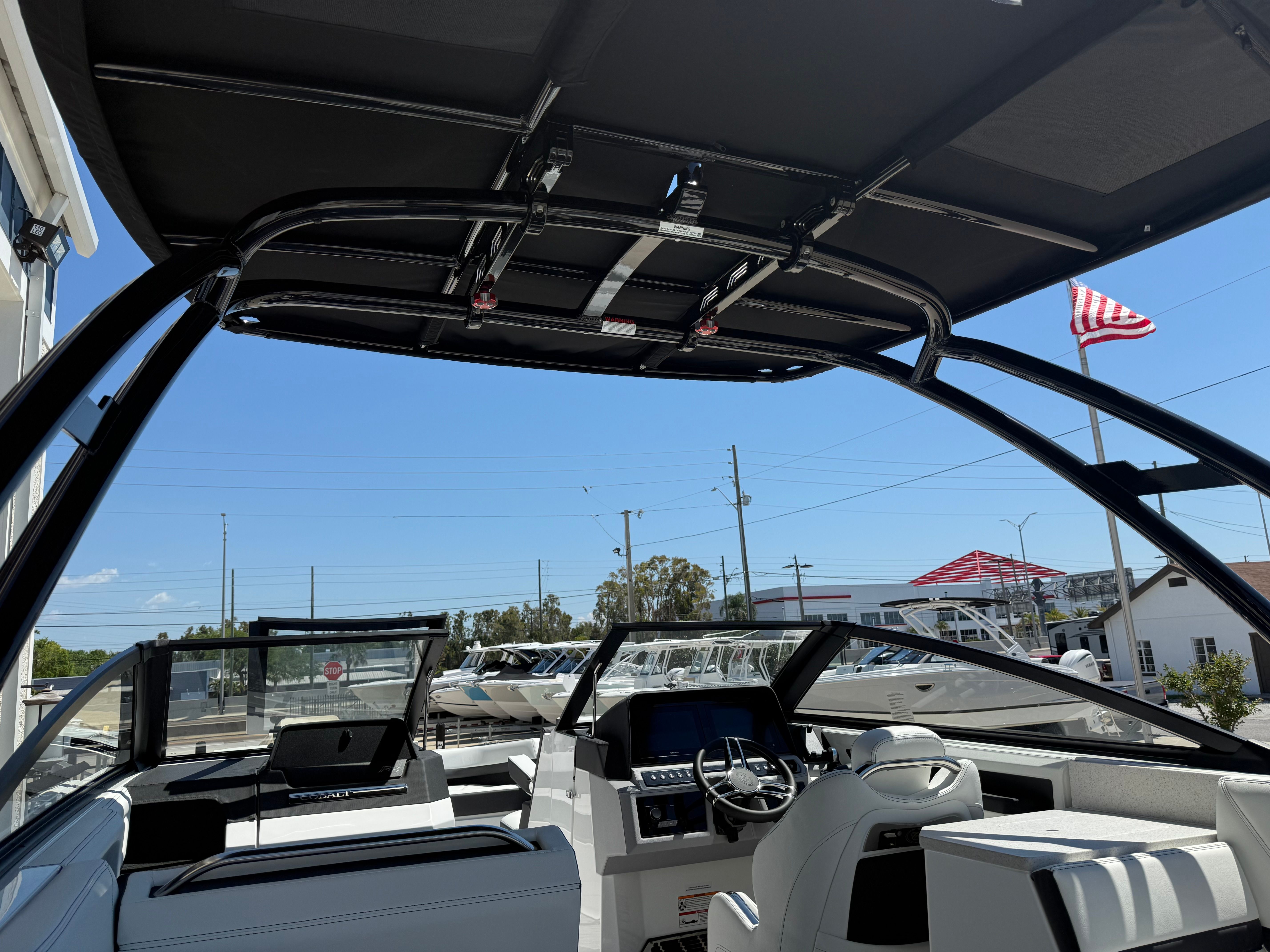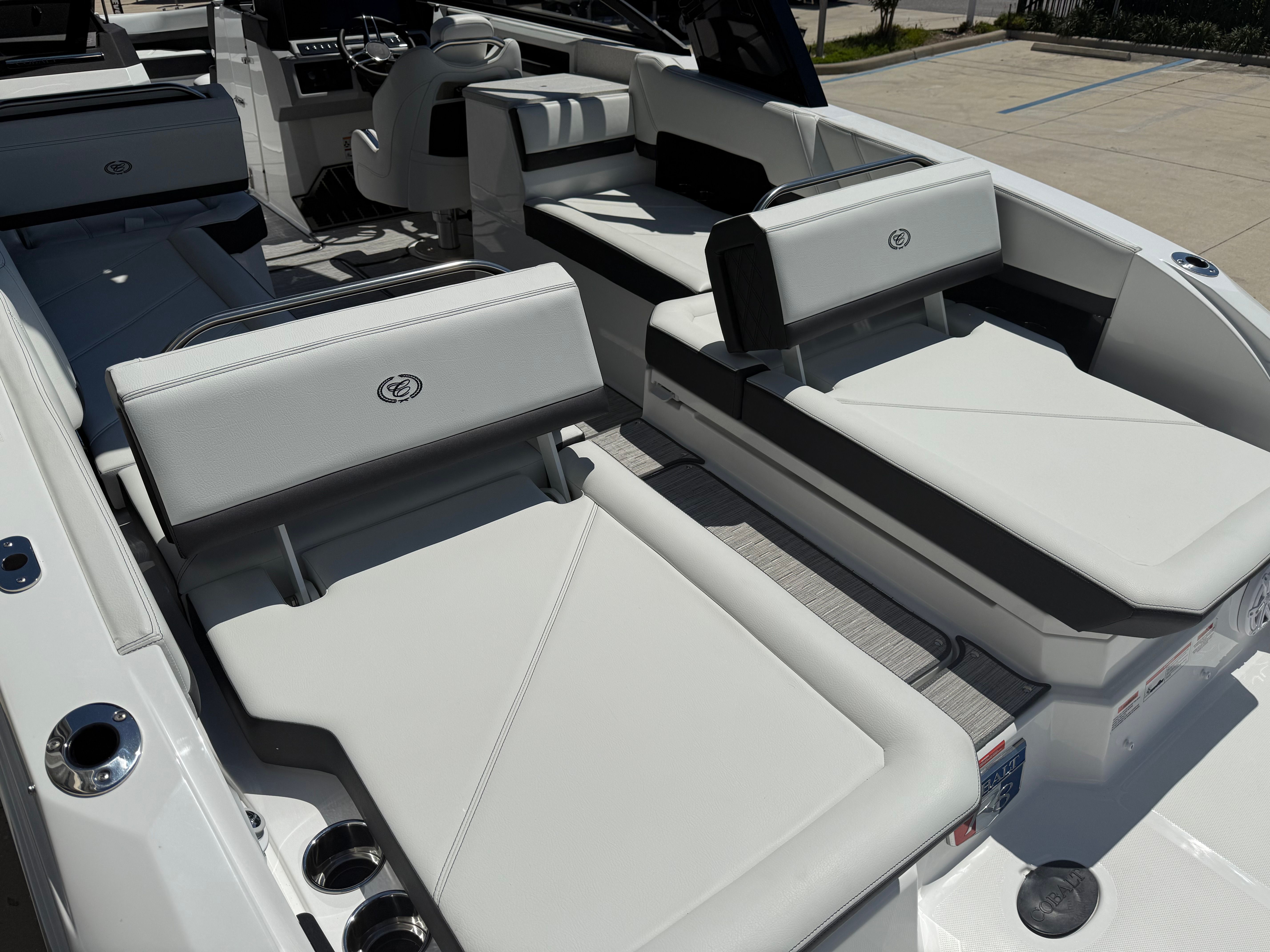 Owning the Cobalt R8 OB Bowrider opens up a world of fun and relaxation. The spacious layout is perfect for hosting gatherings, enjoying sun-soaked afternoons, or embarking on spontaneous adventures. The comfortable seating and thoughtful amenities make every outing enjoyable, whether you’re cruising with family, entertaining friends, or simply unwinding in your favorite cove. The combination of luxury finishes and practical features ensures that every moment on board is both comfortable and memorable.The twin Yamaha engines offer not only impressive speed but also smooth, quiet operation, allowing you to enjoy the serenity of the water without distraction. The rotating shade arch provides customizable protection from the sun, so you can stay cool and comfortable throughout the day. With easy access via the boarding ladder and convenient shower facilities, swimming and water sports become effortless and enjoyable for everyone on board.