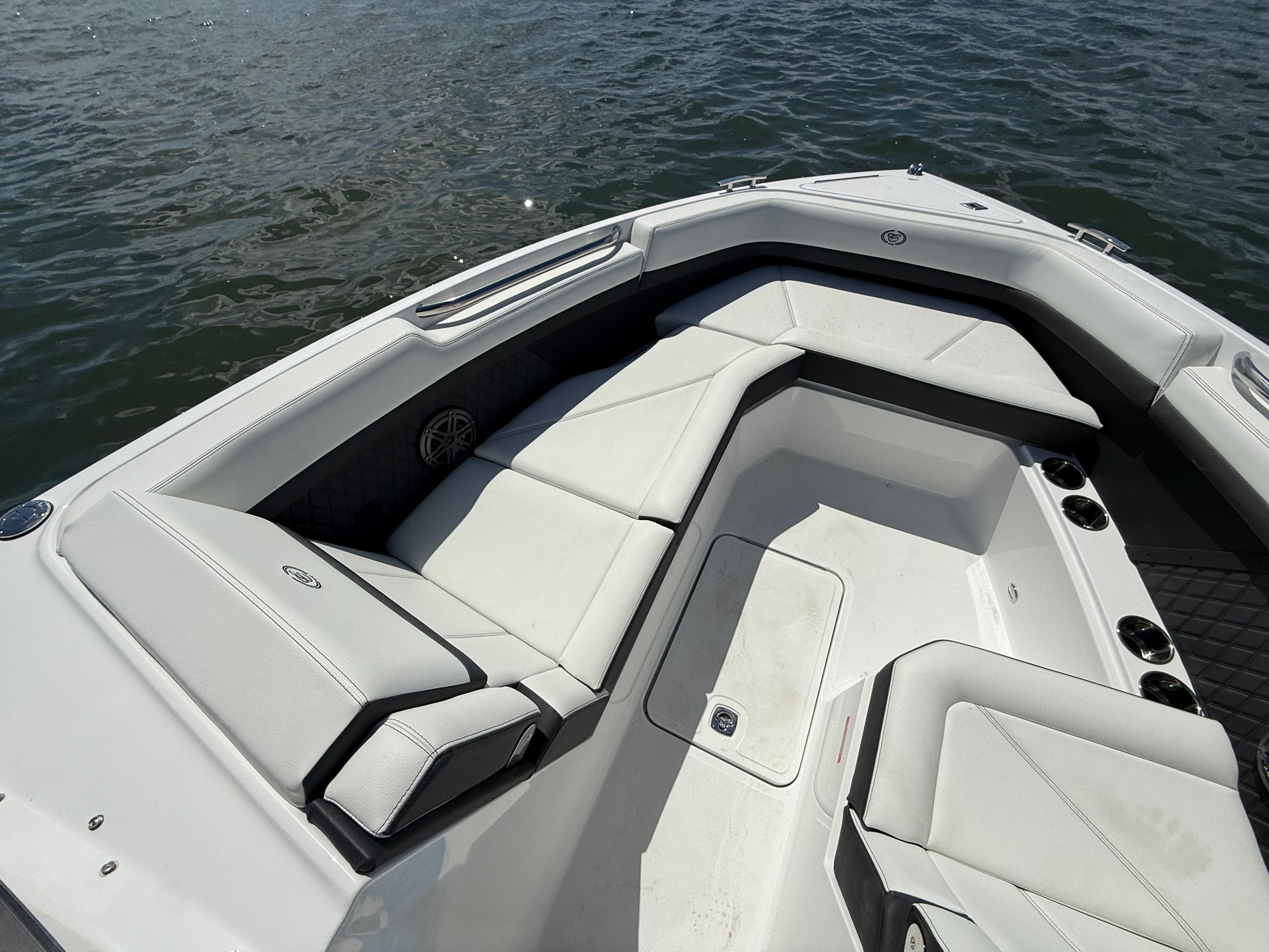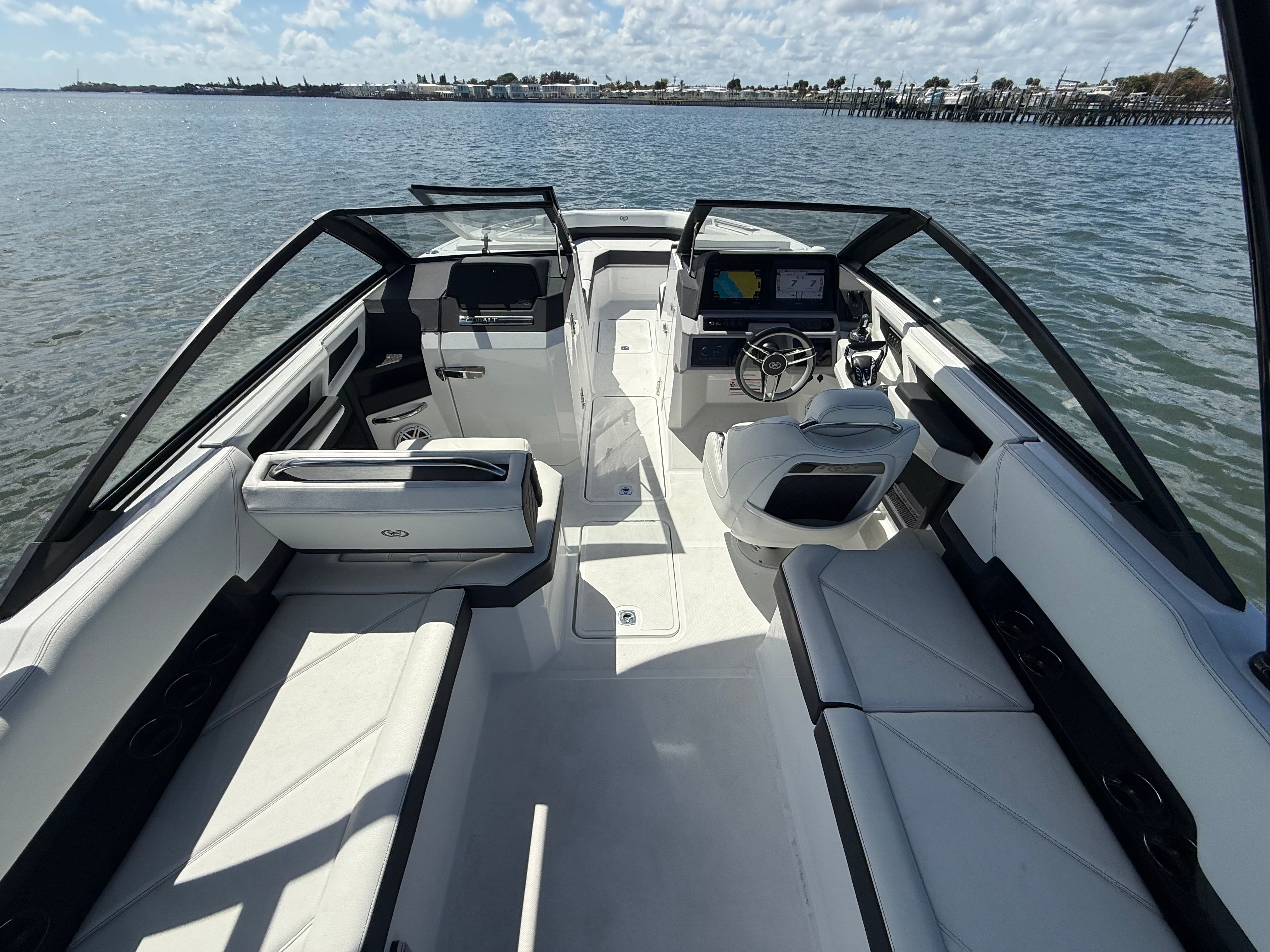 Practicality meets luxury in the Cobalt R8 OB. The ample storage options allow you to bring along everything you need for a day on the water, from water toys to picnic supplies. The ease of docking, thanks to the responsive twin engines and stainless steel docking lights, means you can confidently navigate marinas and tight spaces. The battery charger and engine flush system simplify maintenance, so you can spend more time enjoying your boat and less time worrying about upkeep.The board ladder makes swimming and water sports more accessible, while the protective covers keep your boat looking pristine year after year. Every feature is designed with your convenience in mind, making ownership of the R8 OB as enjoyable as the adventures you’ll have on it.
