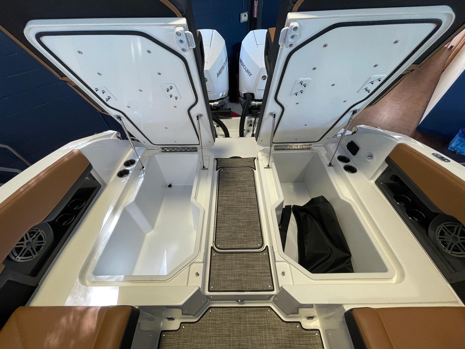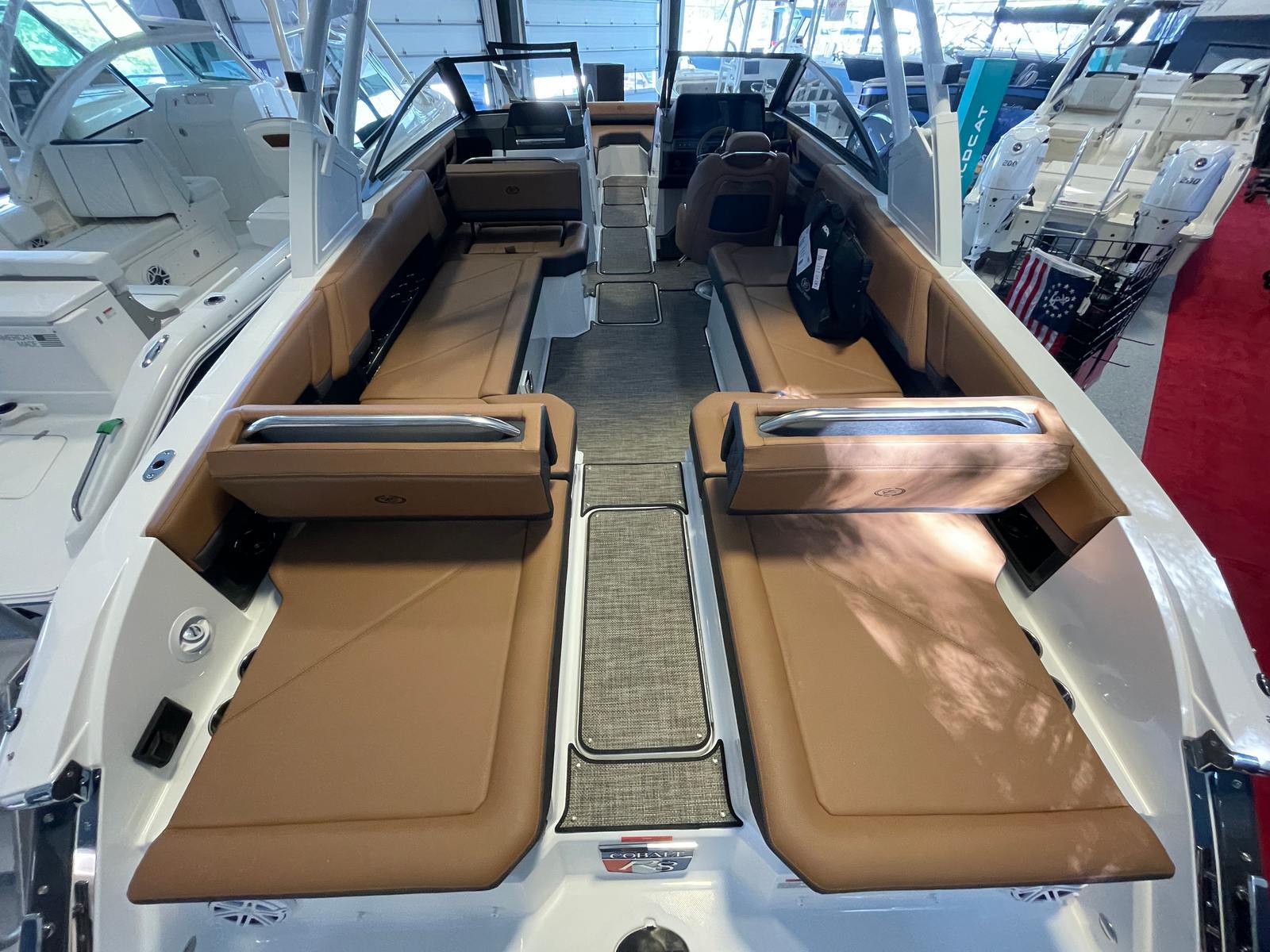 The Cobalt R8 OB is as practical as it is stylish. The intuitive joystick control system makes docking and maneuvering effortless, even for less experienced boaters. The spacious layout offers plenty of room for storage, ensuring you can bring along all the gear and supplies you need for a day on the water. The durable tonneau covers protect your investment from the elements, while the high-quality materials throughout the boat are designed for easy cleaning and maintenance. Fuel efficiency is enhanced by the advanced Mercury Verado engines, allowing you to spend more time enjoying the water and less time at the pump.