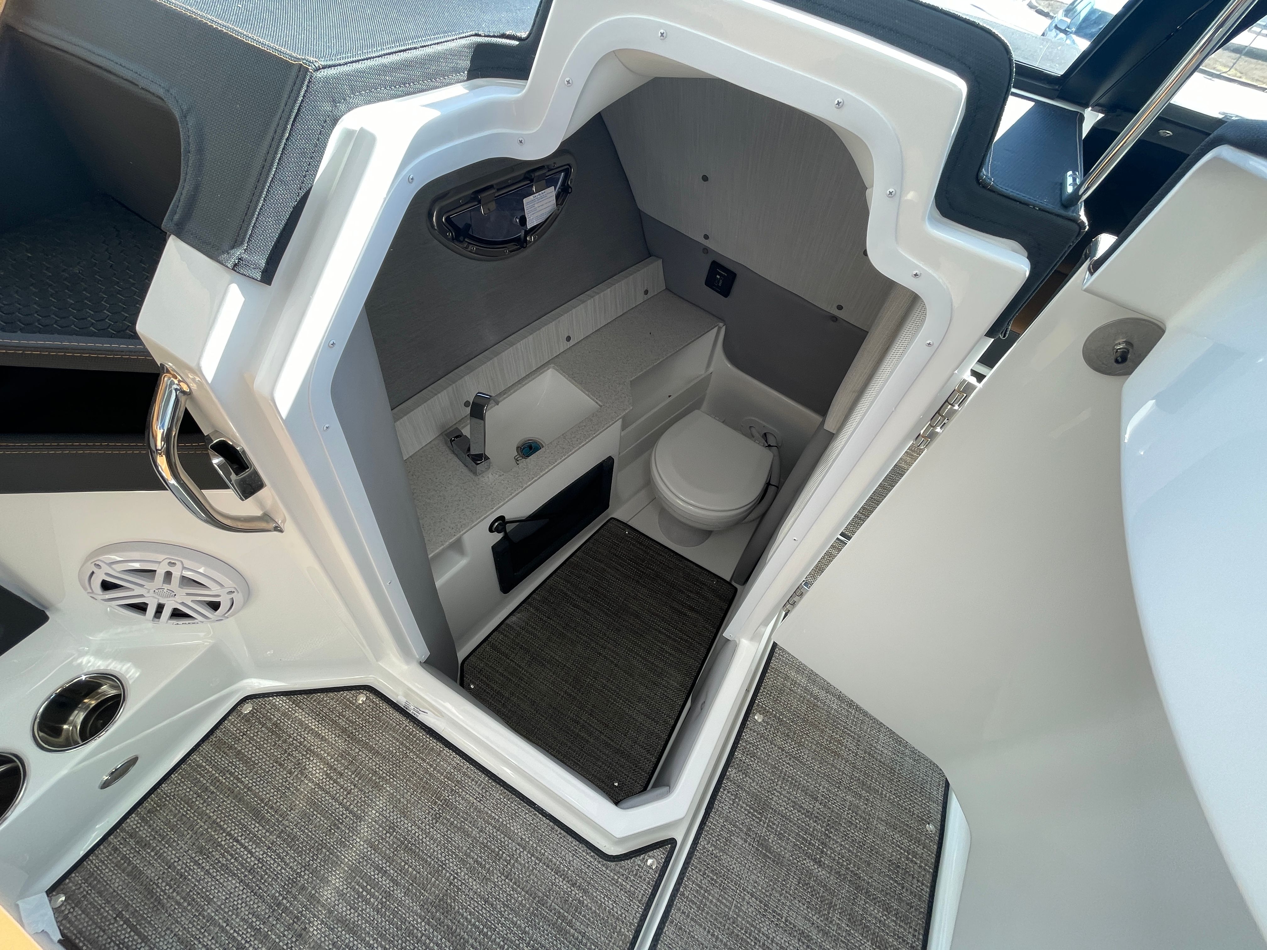 This Cobalt R8 OB is loaded with premium features designed to enhance your time on the water. The Mercury Twin 250 Verado engines provide robust and efficient power, while the White ELEC joystick system ensures intuitive control and stress-free docking. The hull’s Graphite Gray sides and Rich Ebony boot stripe create a striking visual appeal, complemented by the White hull bottom and platform. Inside, the Caramel Carbon interior offers plush seating and a refined atmosphere, perfect for relaxing or socializing. The Ebony sport canvas adds both style and protection, while the Caramel/Carbon cockpit interior ensures comfort throughout the boat. For added convenience and protection, both a bow tonneau cover and a cockpit tonneau cover are included, keeping your boat looking pristine and ready for your next adventure.
