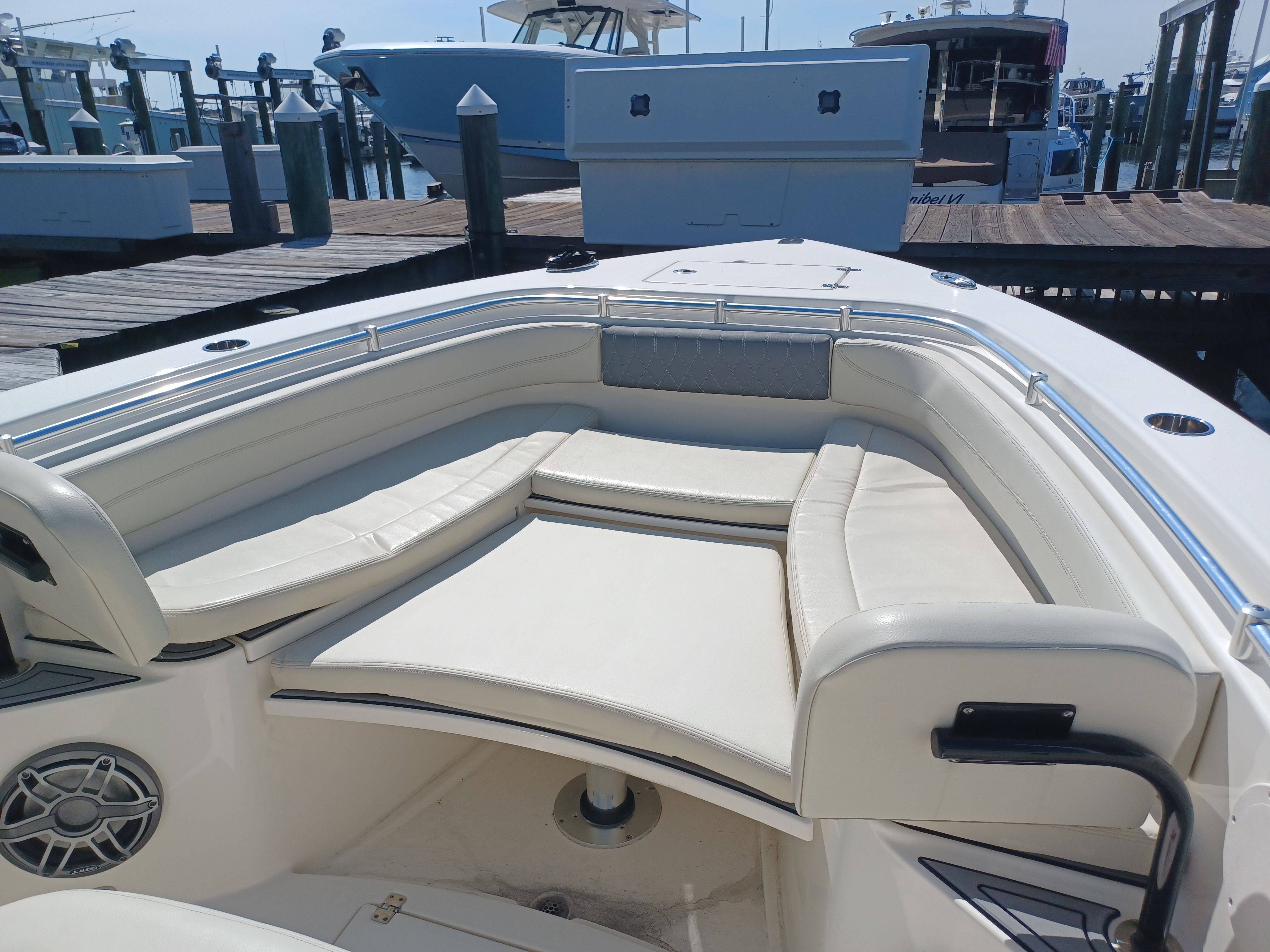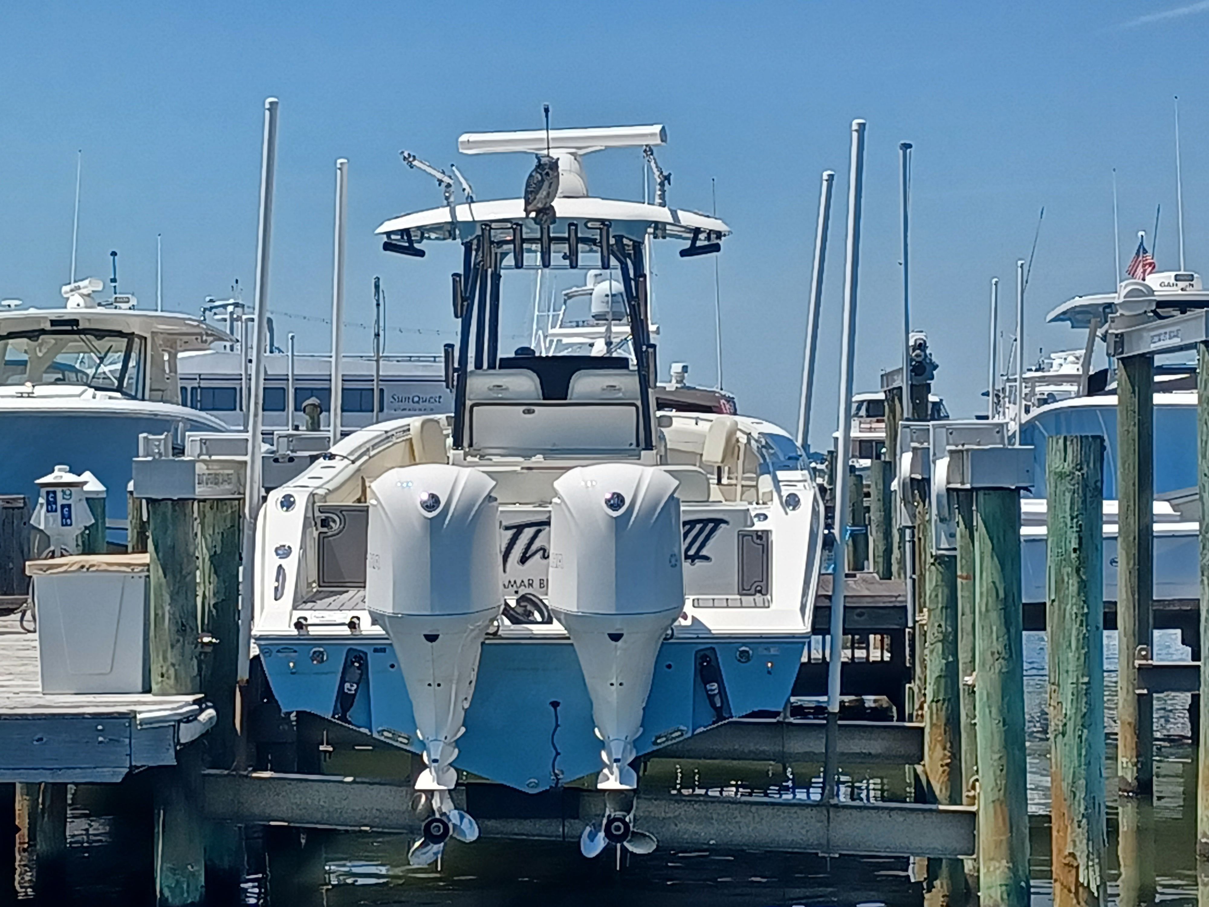 - Twin Yamaha 300hp outboard engines with 259 hours, hydraulic steering and joystick control.