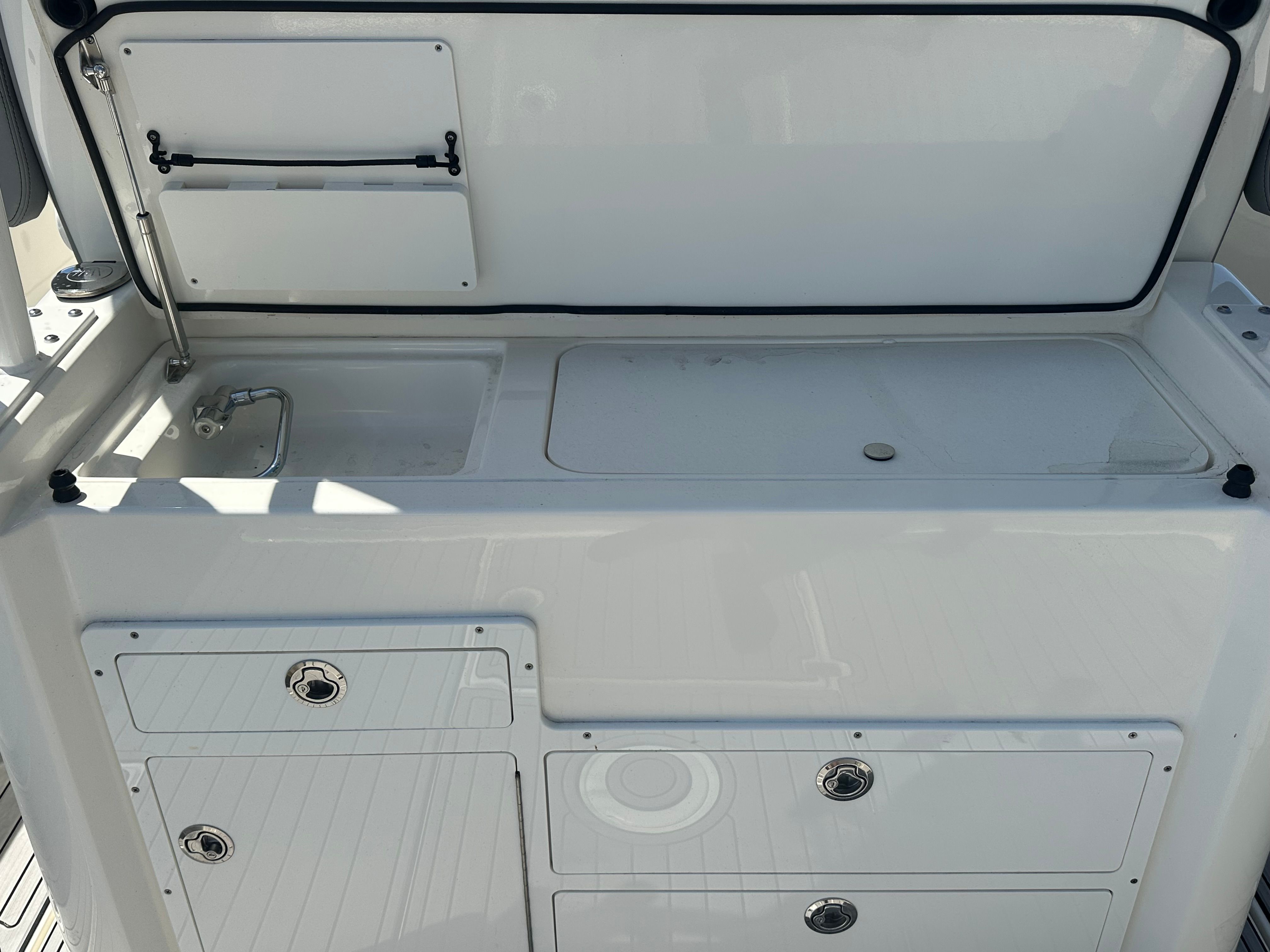 Practicality is at the heart of the Cobia 350 CC’s design. The boat’s generous storage options make it easy to stow away everything you need for a day on the water, from fishing gear to picnic supplies. The center console layout not only maximizes usable space but also makes docking and maneuvering a breeze, even in tight marinas or crowded docks.Fuel efficiency is another key advantage of this model, thanks to its advanced engineering and triple-engine configuration. You’ll spend less time worrying about refueling and more time enjoying your favorite activities on the water. The durable construction and low engine hours mean that maintenance is straightforward, allowing you to focus on making memories rather than dealing with unexpected repairs.