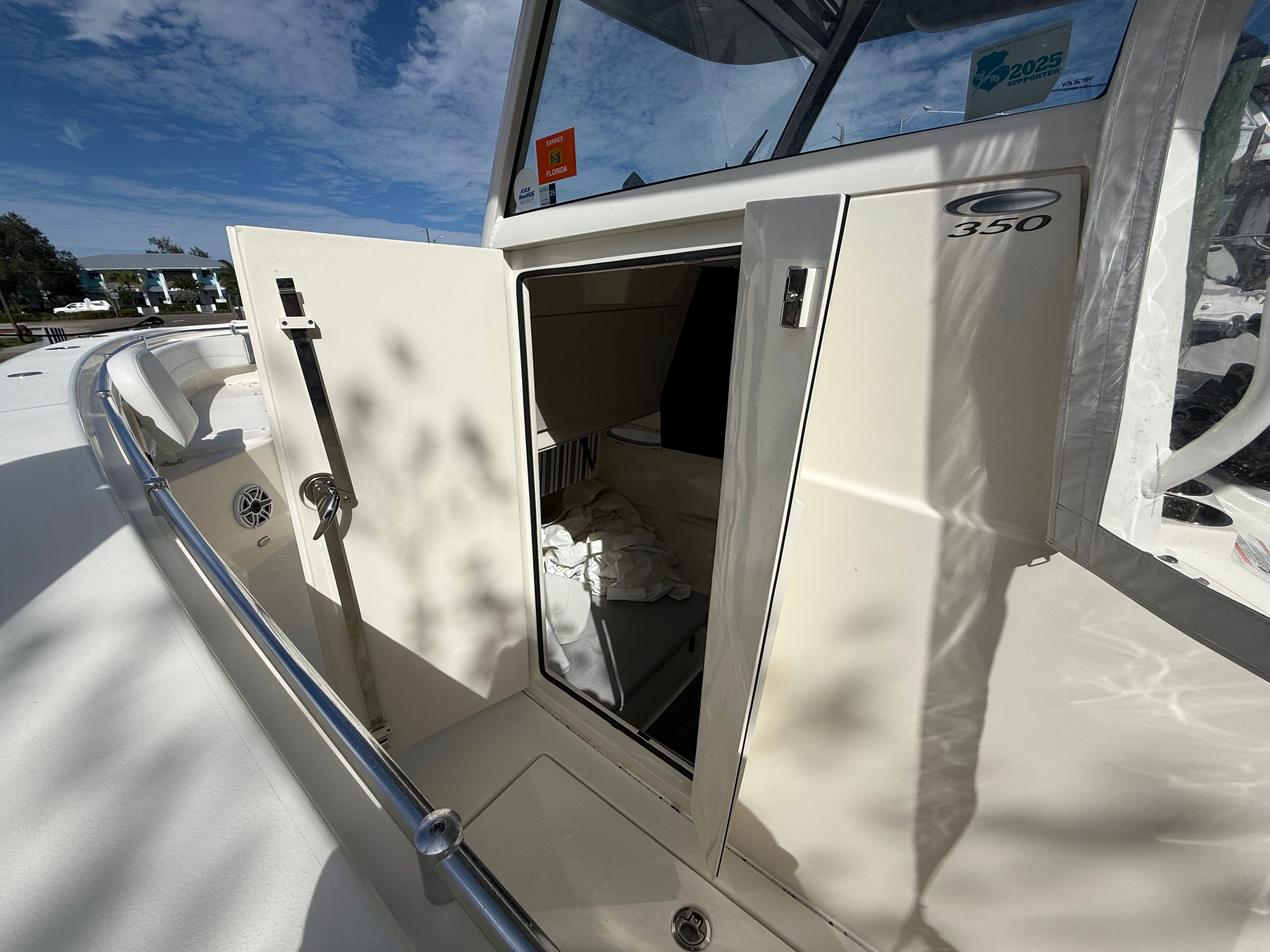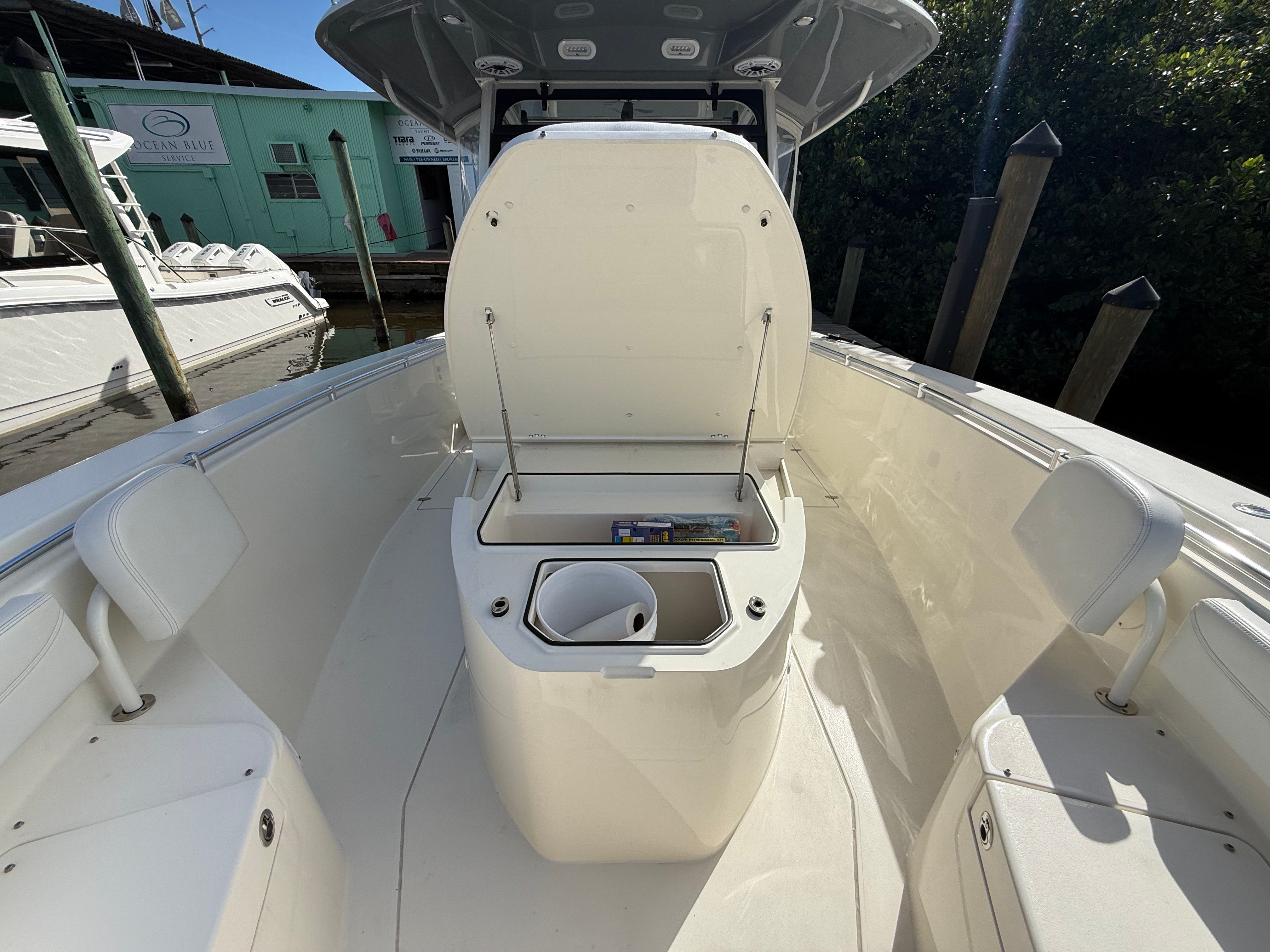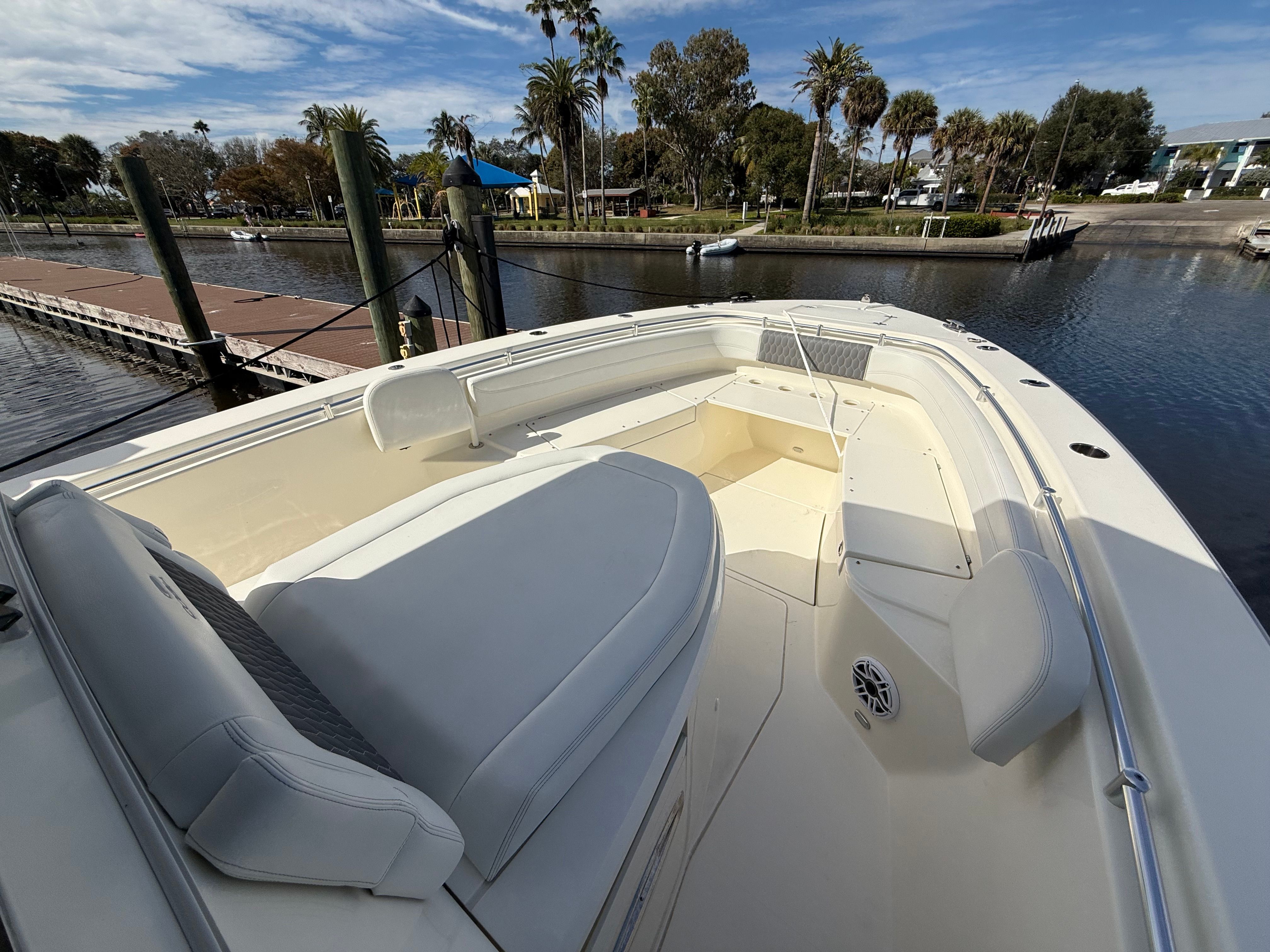 The Cobia 350 CC is packed with features that cater to both serious anglers and those seeking leisurely days on the water. Its expansive Center Console layout offers ample space for movement, making it easy to navigate the deck whether you are casting lines or entertaining guests. The ergonomic helm station is designed for maximum visibility and control, allowing you to operate the boat with confidence and ease. The thoughtful arrangement of seating and storage ensures that everyone on board has a comfortable place to relax, while gear and equipment are kept organized and accessible.This Cobia boat for sale is engineered with high-quality materials and attention to detail, ensuring durability and longevity. The spacious deck provides plenty of room for fishing, sunbathing, or socializing, while the Center Console design offers protection from the elements and convenient access to all areas of the boat. Every aspect of the Cobia 350 CC is crafted to enhance your experience on the water, from the intuitive controls to the stylish finishes.