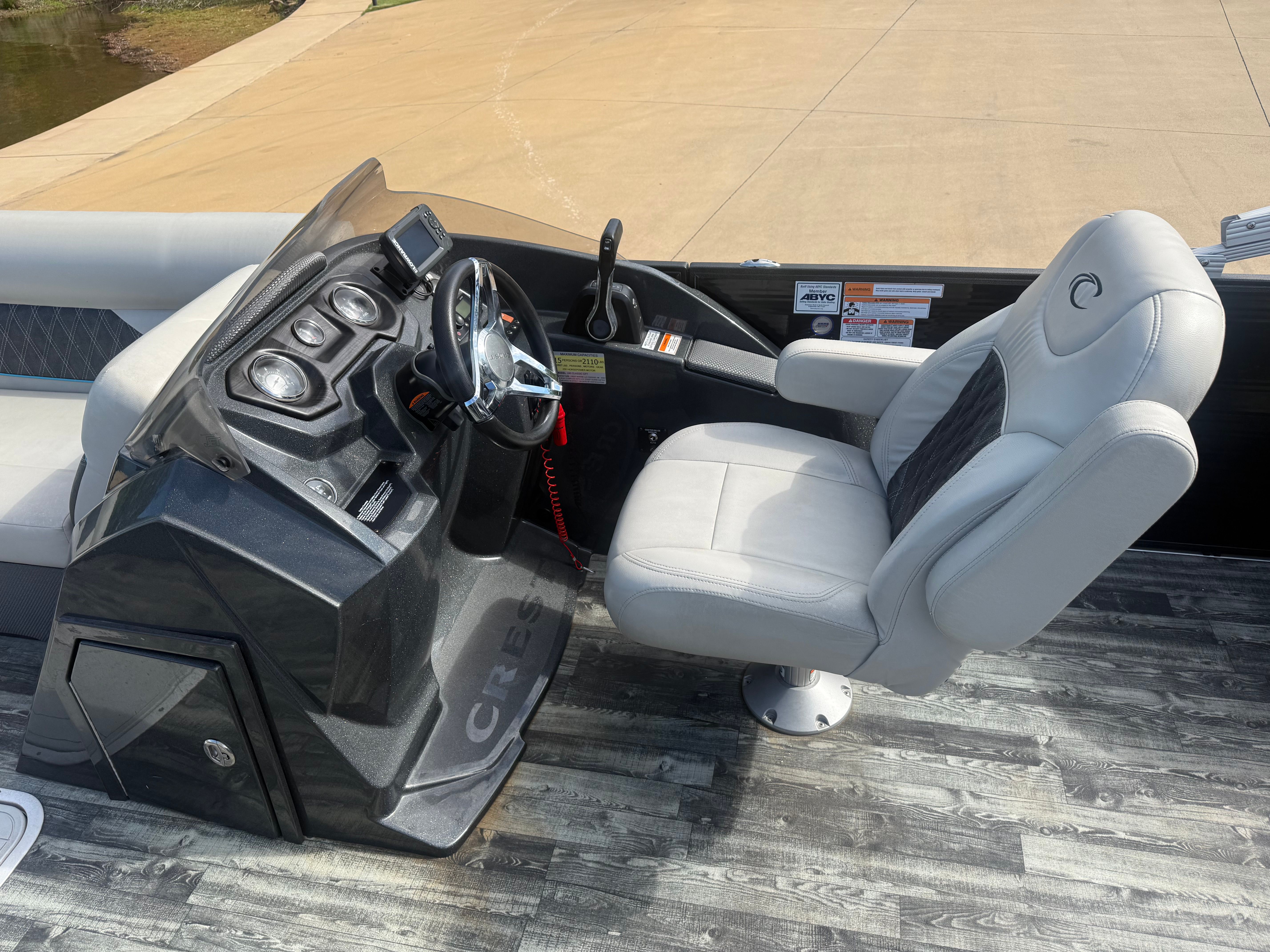 Owning the Crest Classic DLX 240 means unlocking a world of fun and relaxation. Pontoon boats are renowned for their stability and comfort, making them ideal for leisurely cruises, social gatherings, and family outings. The Classic DLX 240’s spacious deck and comfortable seating create the perfect environment for making memories with loved ones. Whether you’re enjoying a sunset cruise, hosting a picnic on the water, or simply lounging in the sun, this Crest boat for sale delivers an unparalleled experience.The 175-horsepower engine provides the versatility to enjoy a variety of activities, from gentle cruising to more adventurous pursuits like tubing or wakeboarding. The pontoon’s smooth handling and reliable performance ensure that every outing is enjoyable and stress-free. With its combination of power and comfort, the Classic DLX 240 is designed to maximize your time on the water.