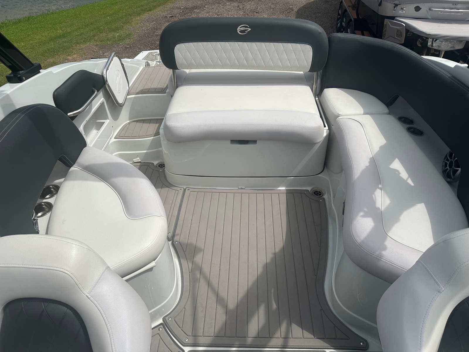 Under the hood, the Crownline E255 Surf is powered by a single robust engine boasting 350 horsepower. With only 164 engine hours, this used Bowrider is in excellent condition and ready for many more adventures. The powerful engine ensures quick acceleration, smooth cruising, and plenty of torque for towing water toys or wake surfers. The E255 Surf’s hull design is optimized for stability and agility, making it easy to handle in a variety of water conditions. Whether you’re carving through waves or gliding across calm lakes, this boat offers a responsive and exhilarating ride.