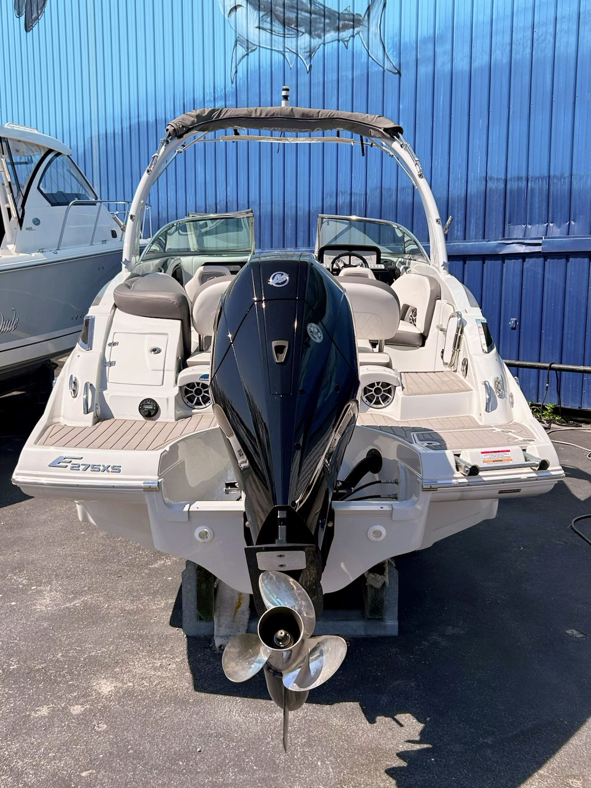 One of the standout features of the E275 XS is its ability to blend sporty styling with a roomy, comfortable layout. The wraparound bow seating creates a welcoming lounge area, while the cockpit and helm are arranged for both driver confidence and passenger comfort. The wide beam and open deck design make this a boat that feels larger than its size and offers excellent flow from bow to stern.